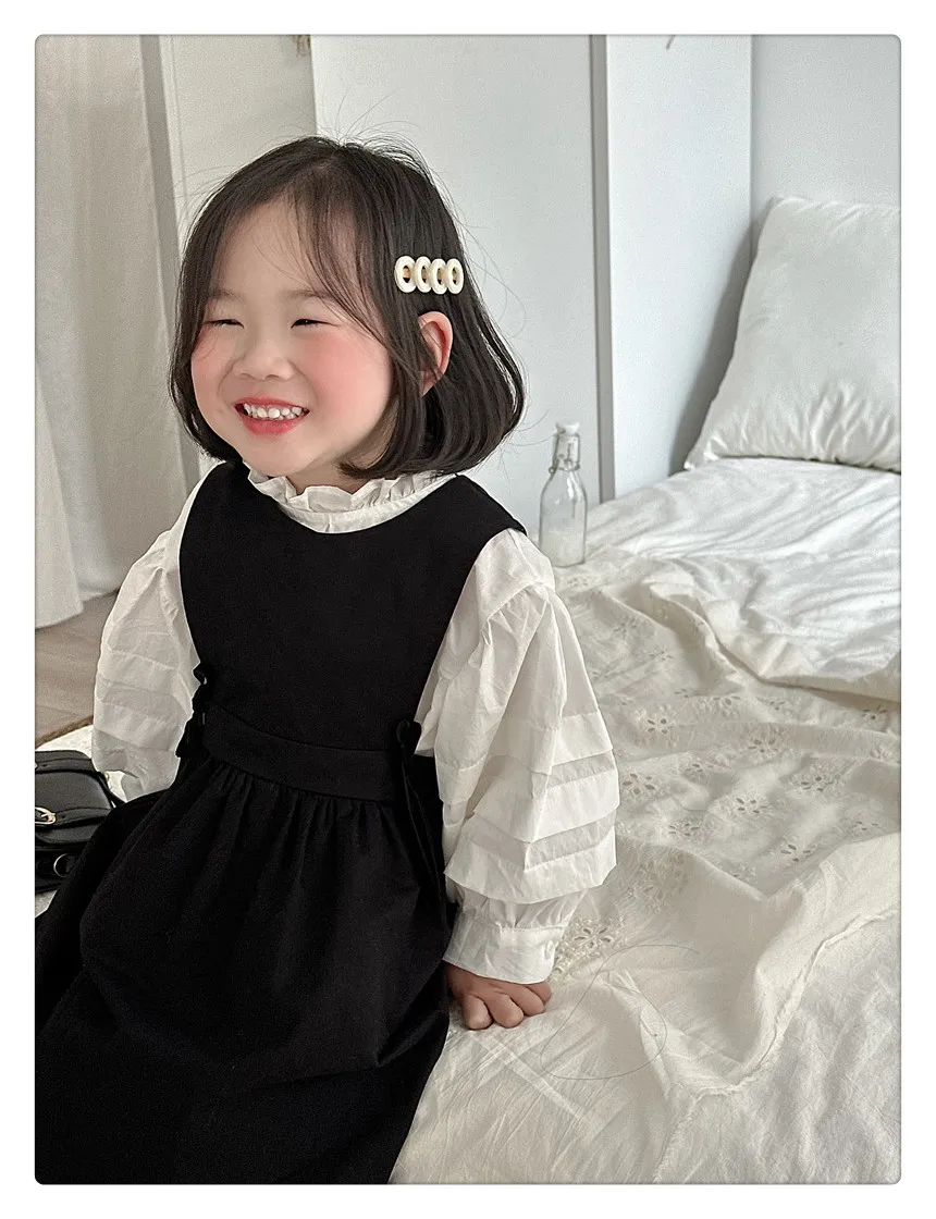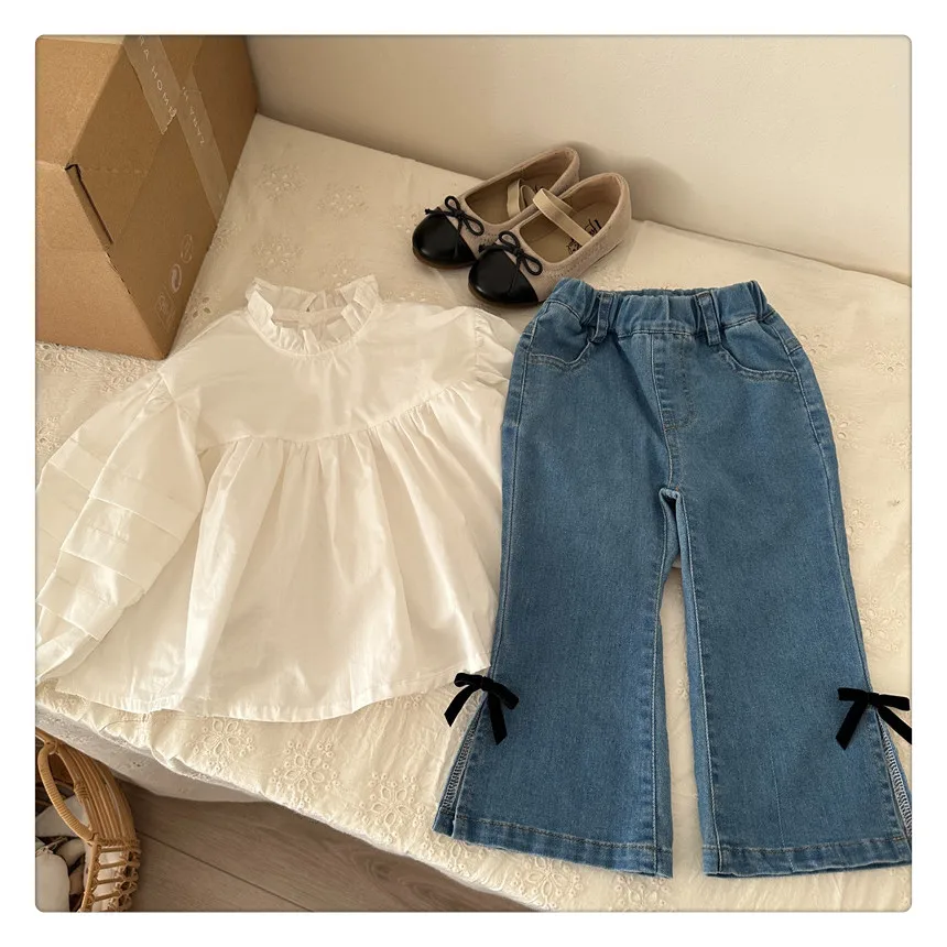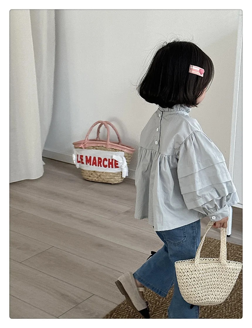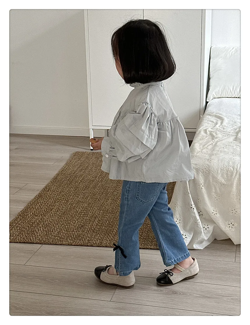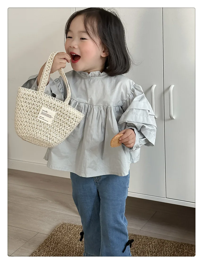 #kids fashion #long sleeve blouse #ruffled stand collar #stylish kids clothes #white #light blue