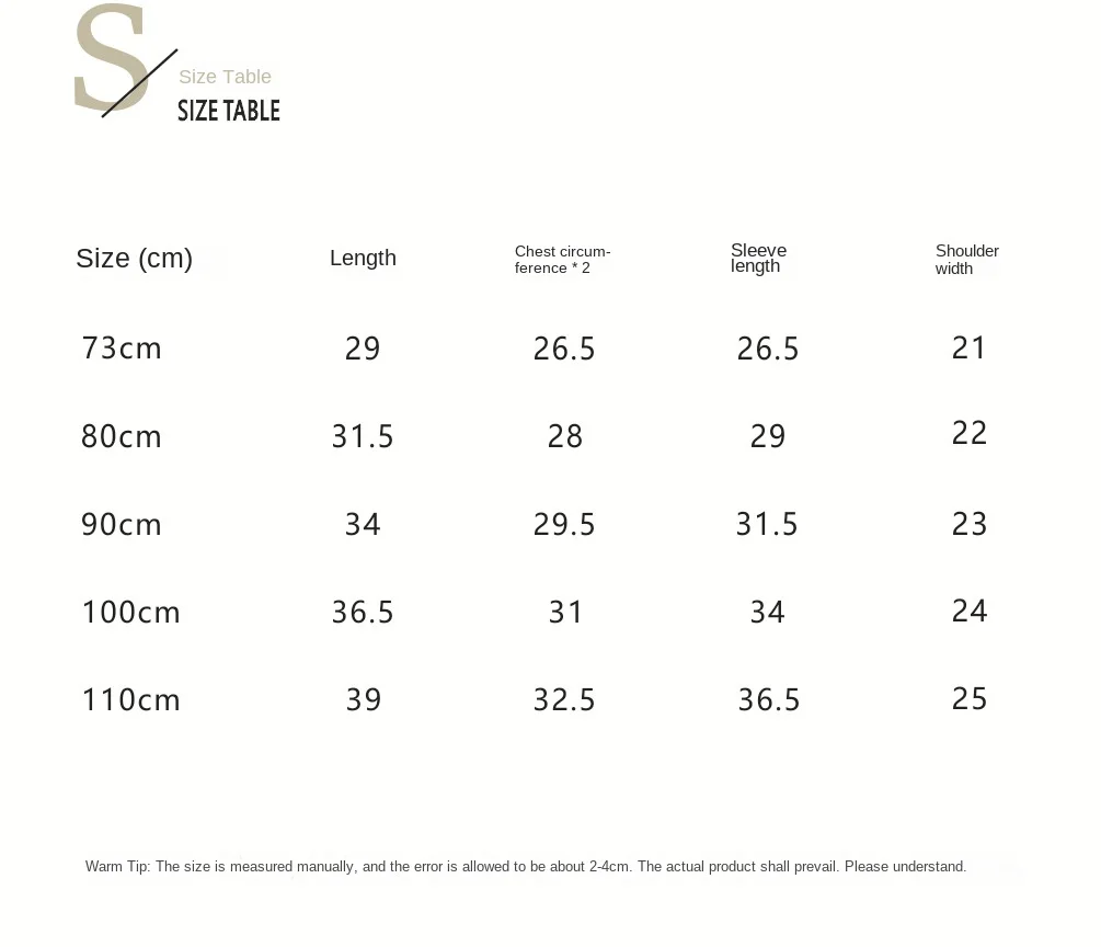 Please note that even for the same product, there may be a difference of approximately ±4cm depending on the material.