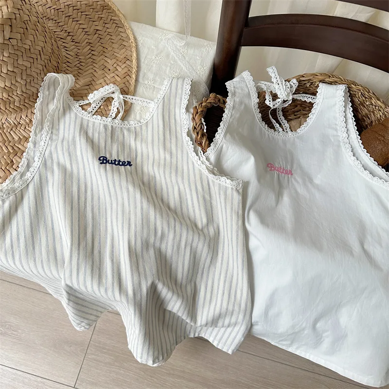 #Summer kids fashion #Lace dress #Sleeveless #Overdress #Striped dress #Children's clothes