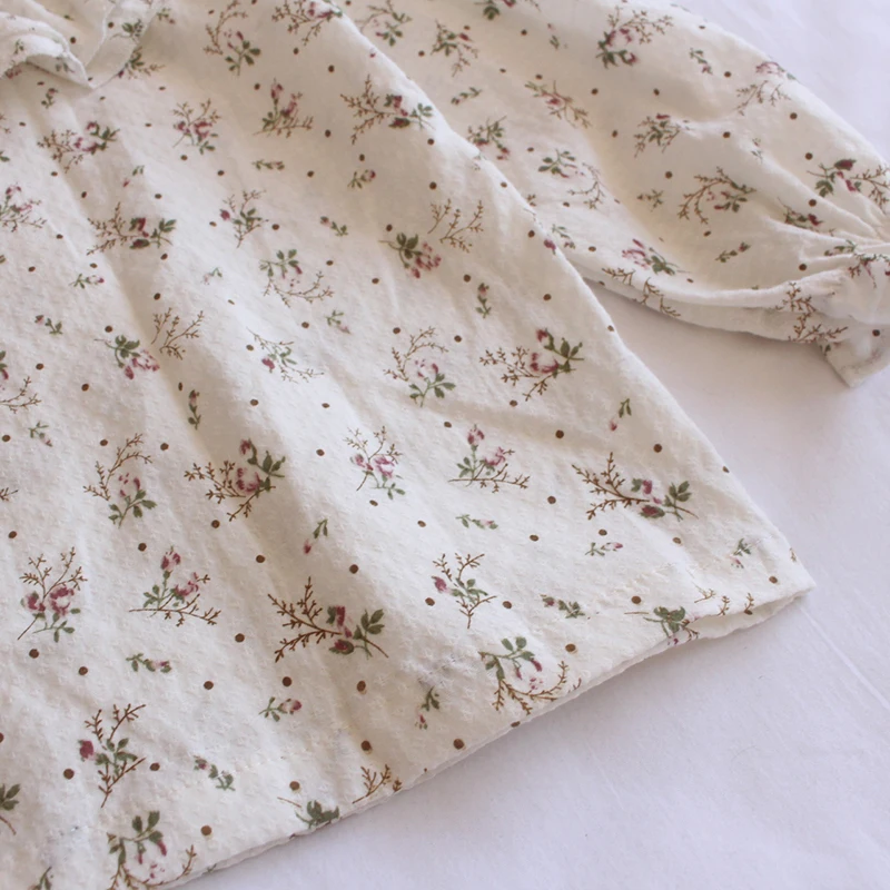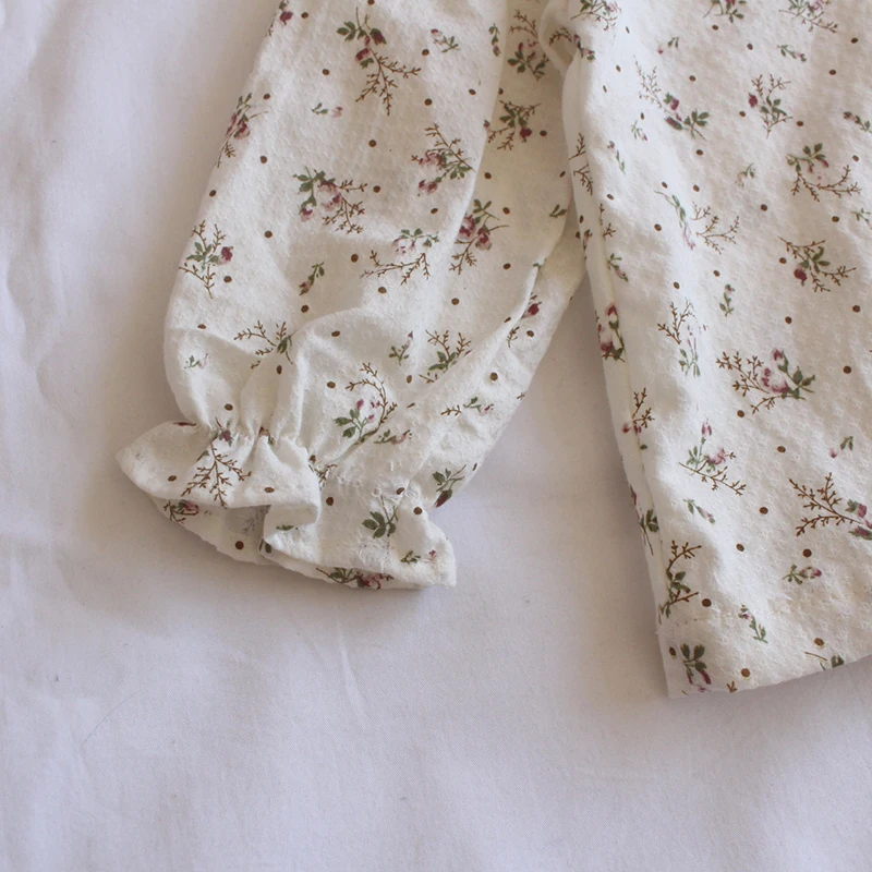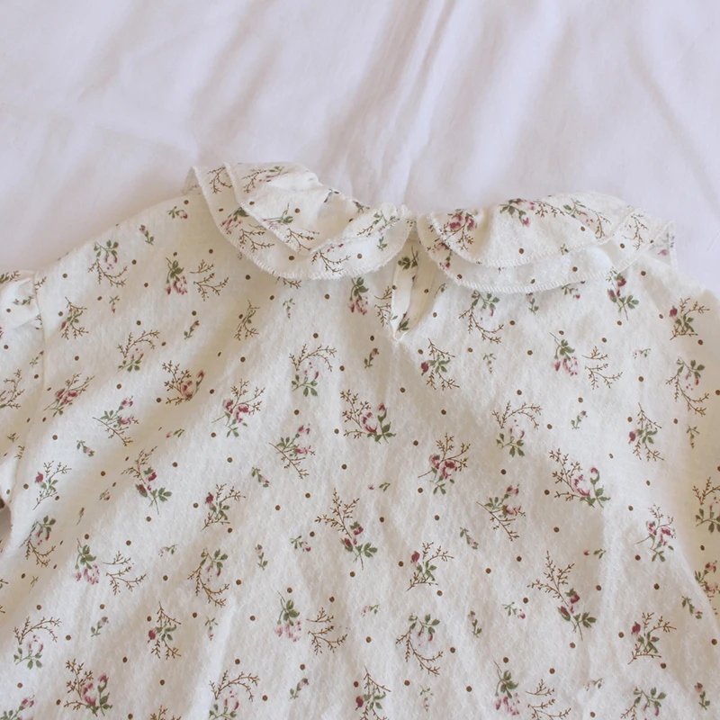 Kids Tops Long Sleeve Blouse Flower Small Floral Print Double Ruffle Collar