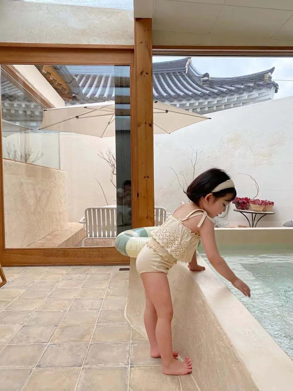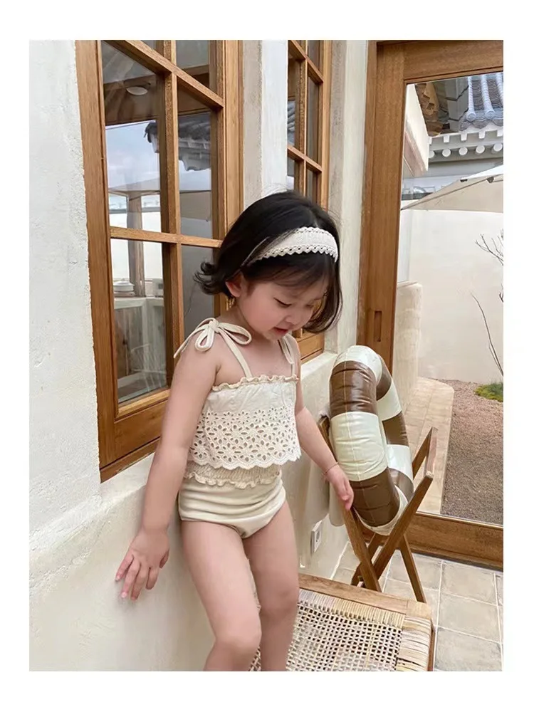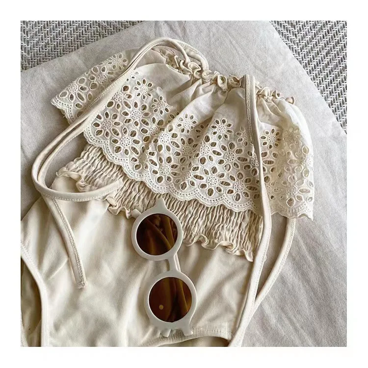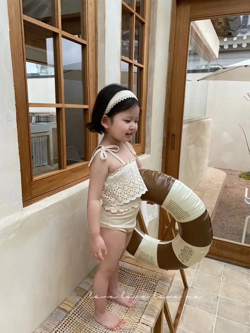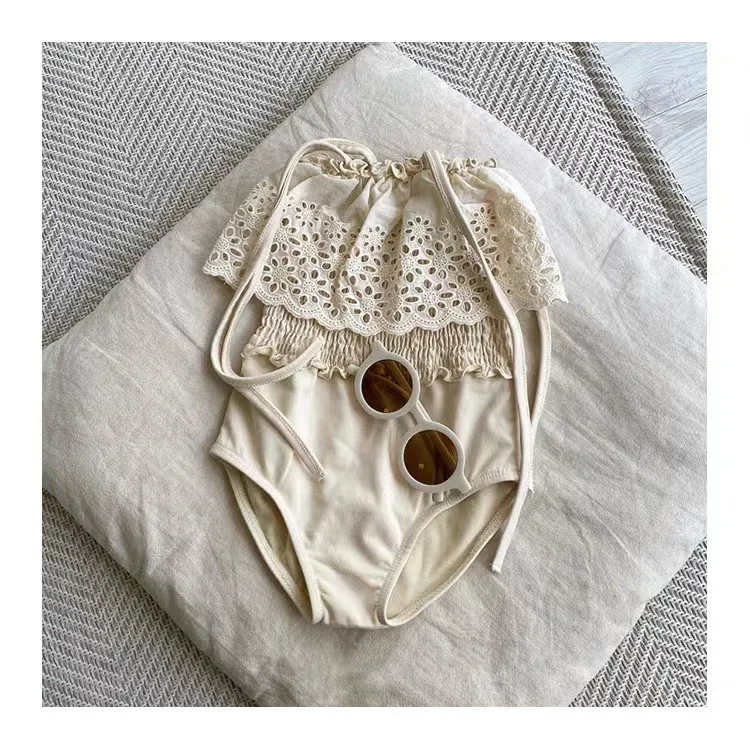Kids Swimwear One Piece Lace Ruffle Shirring Swimwear [mh0000808]