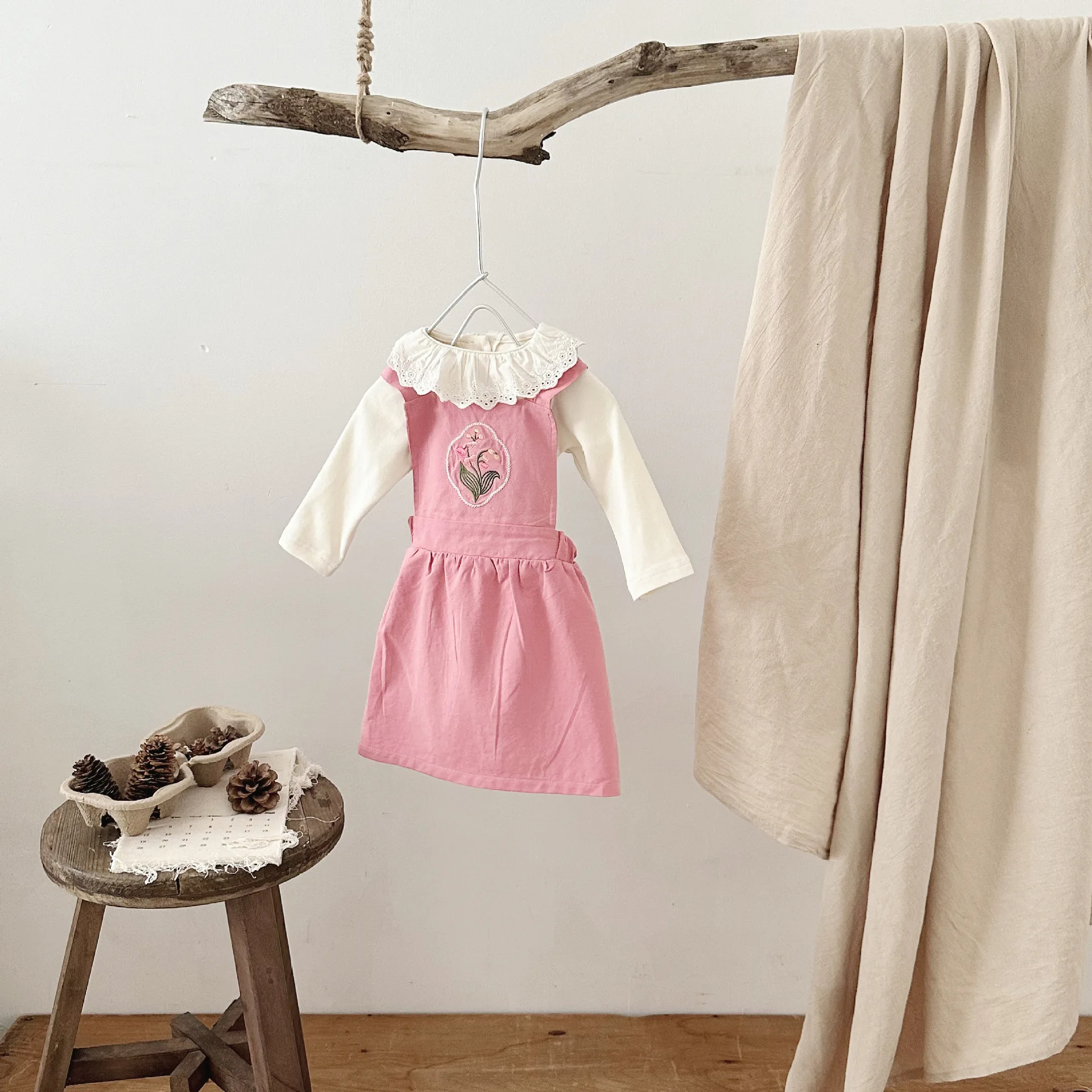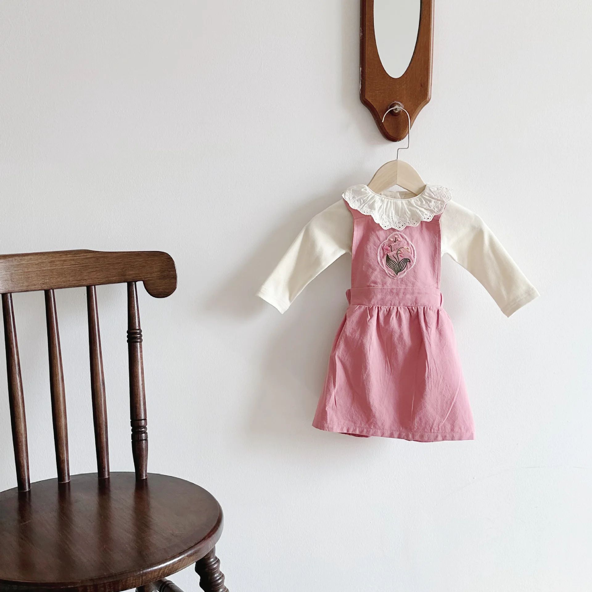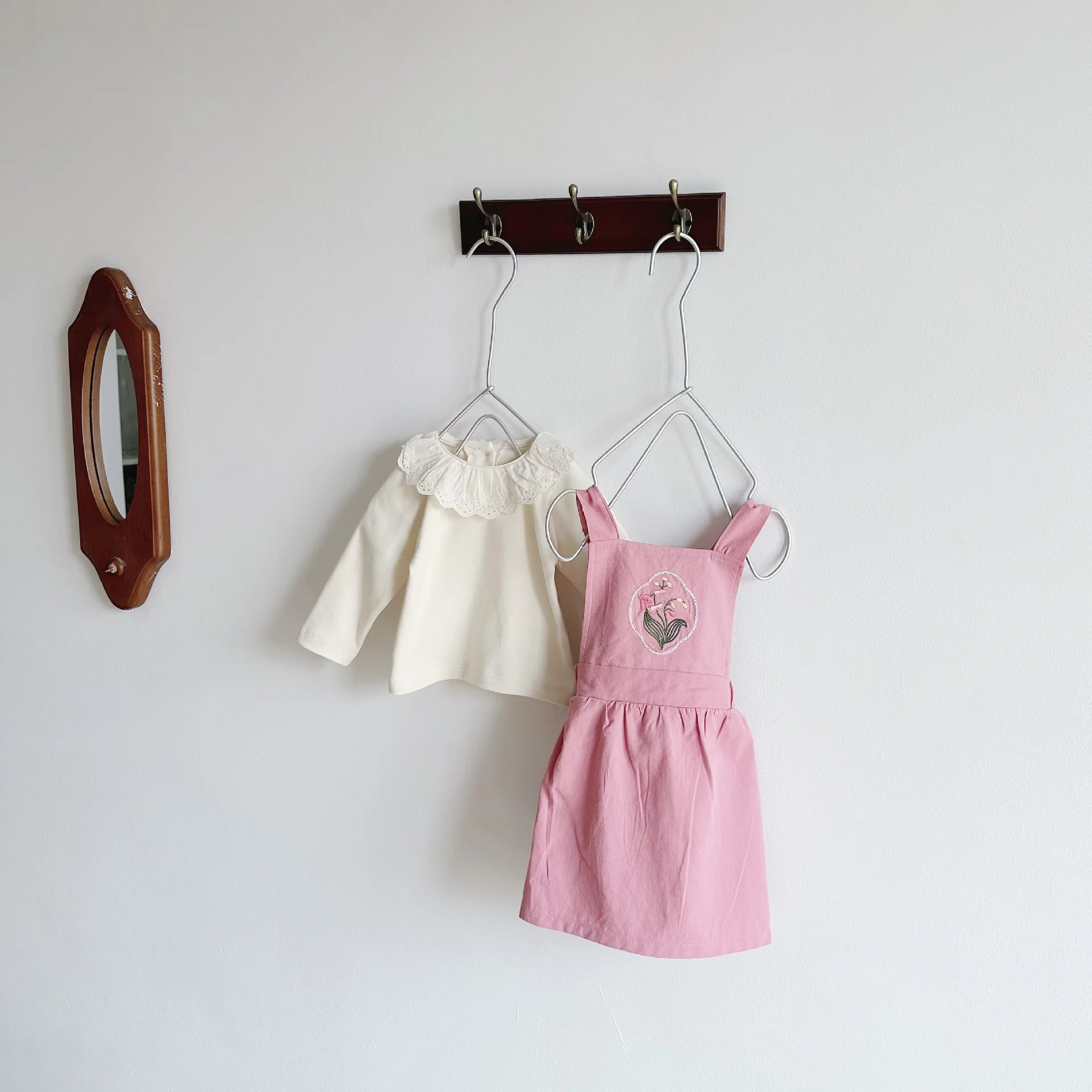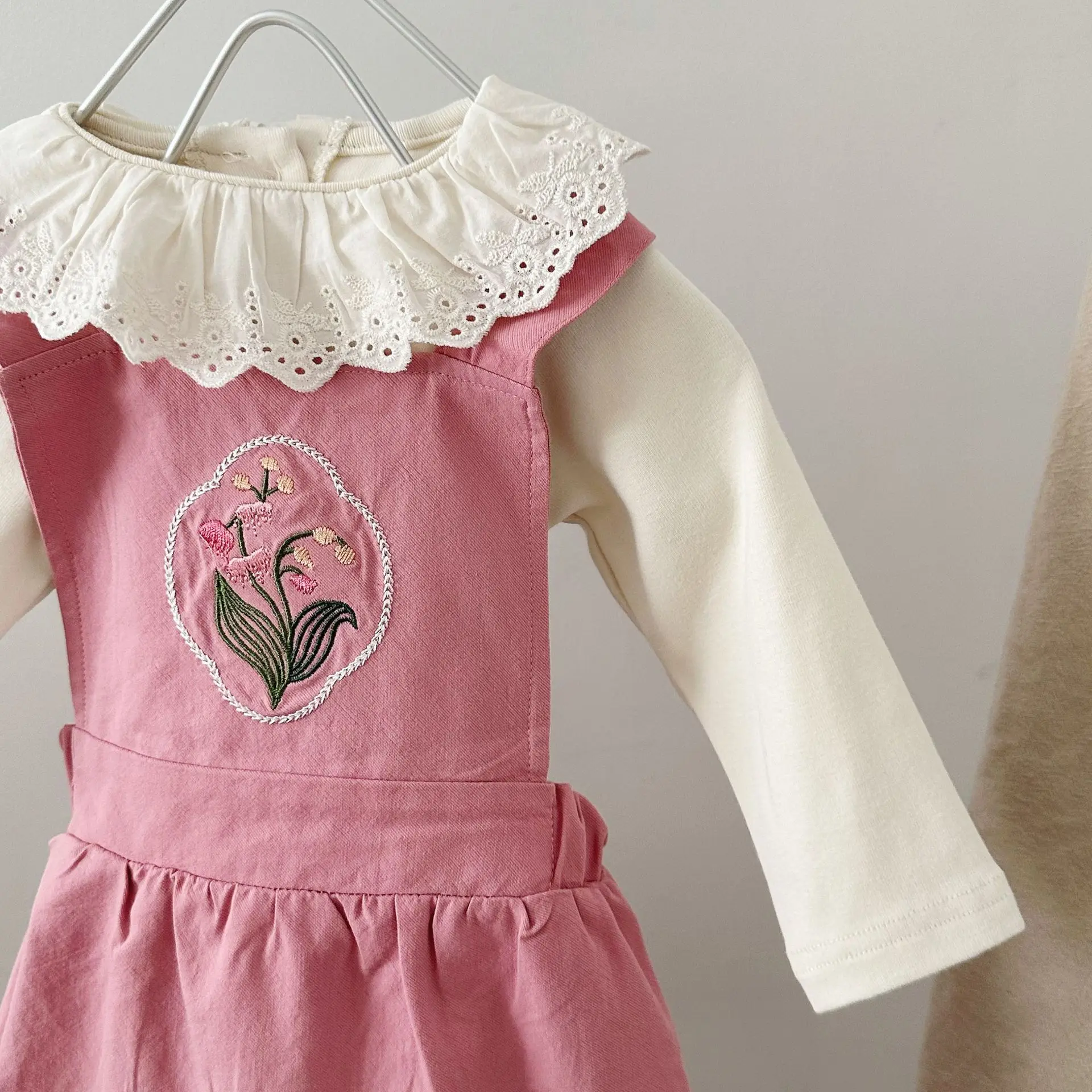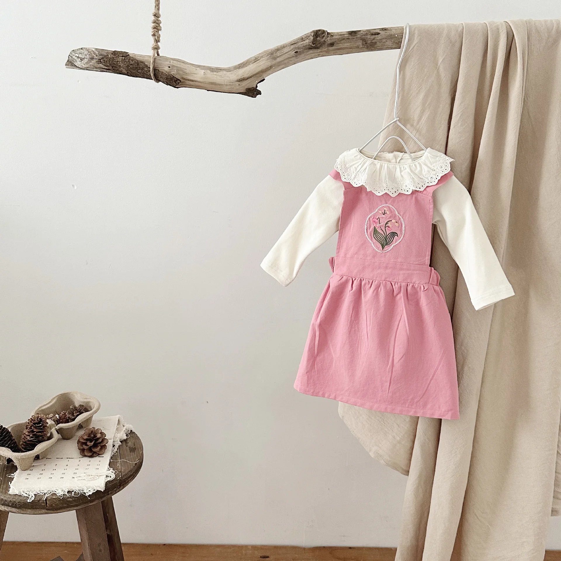 Baby Dress/Tops: Long-Sleeved Lace Collar T-Shirt and Sleeveless Embroidered Jumper Skirt [mh0004631]