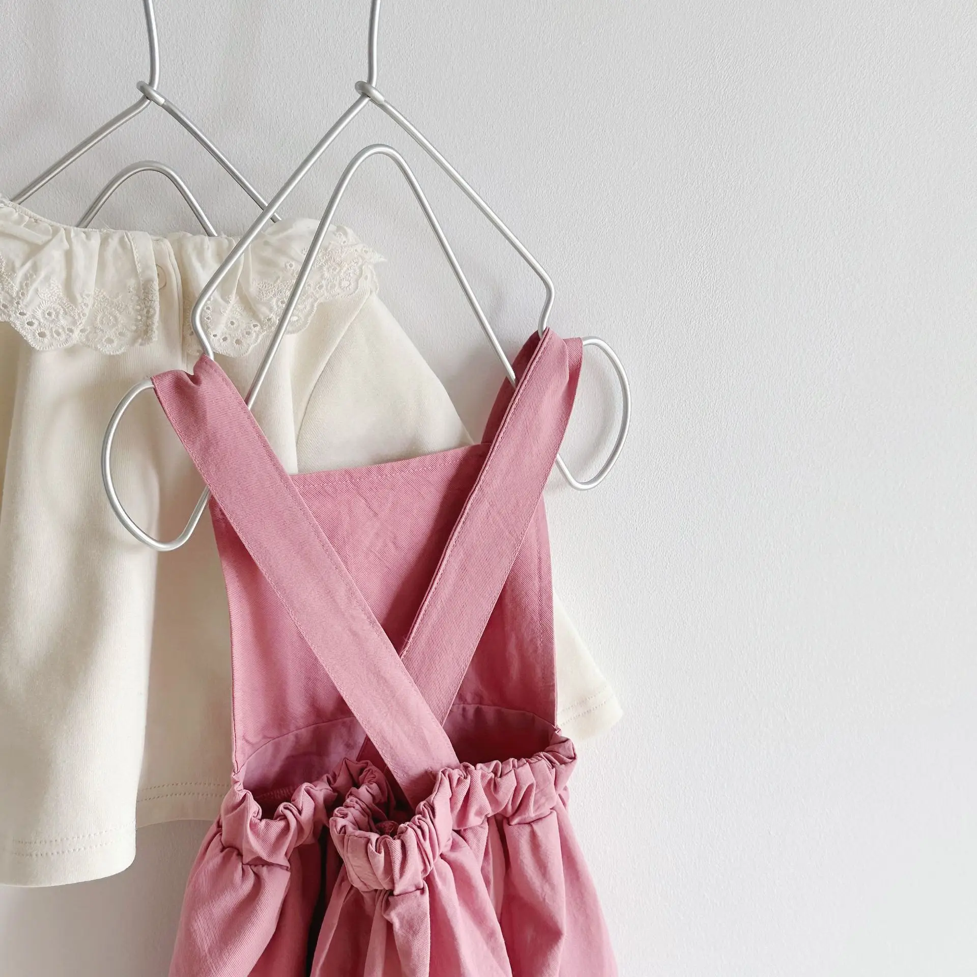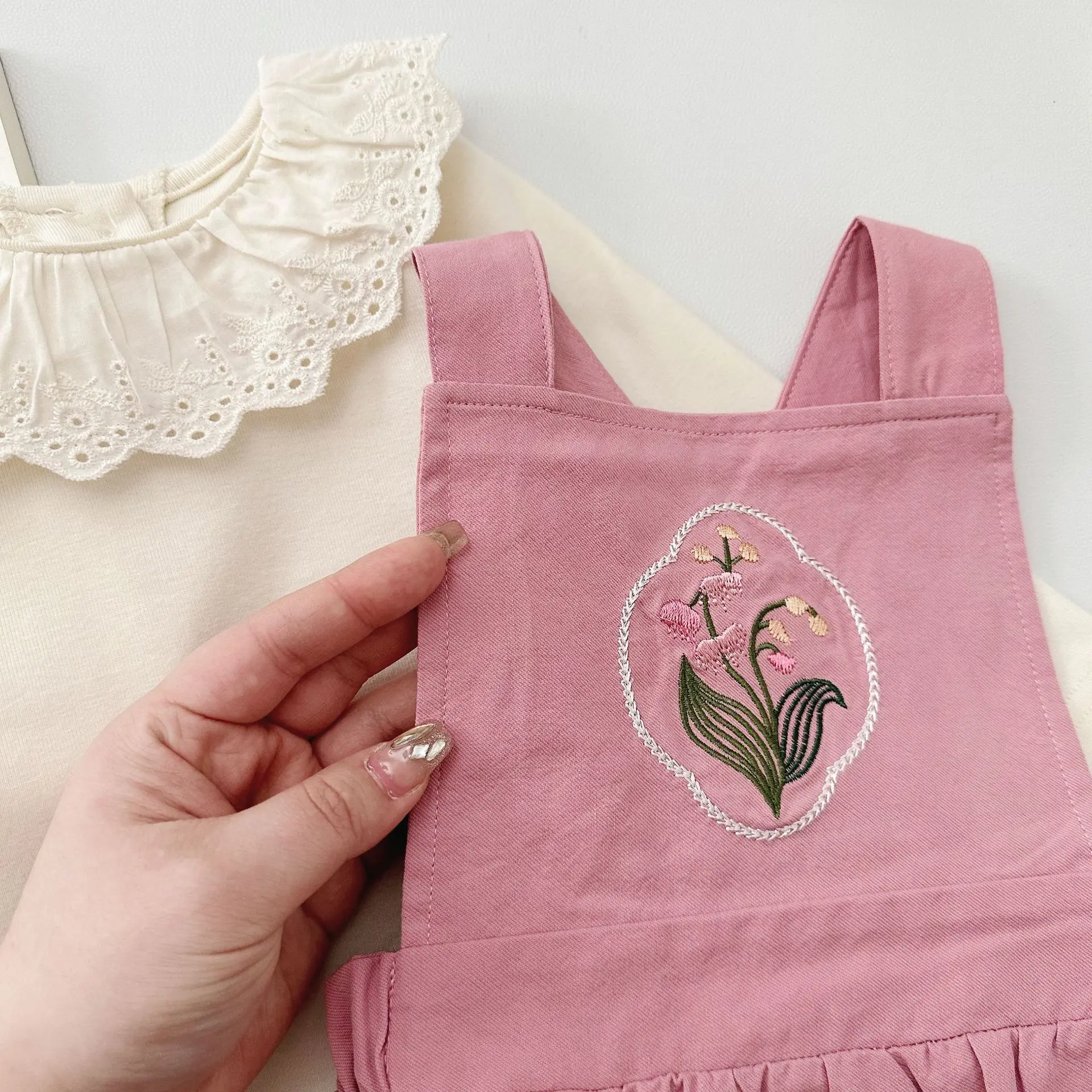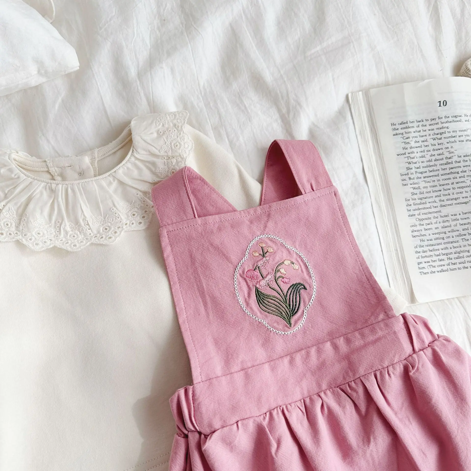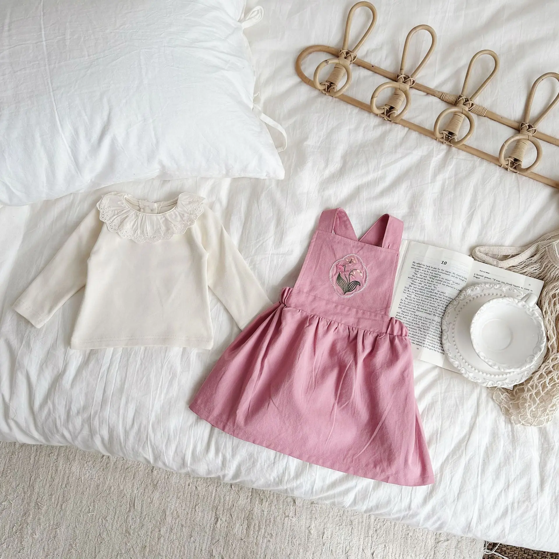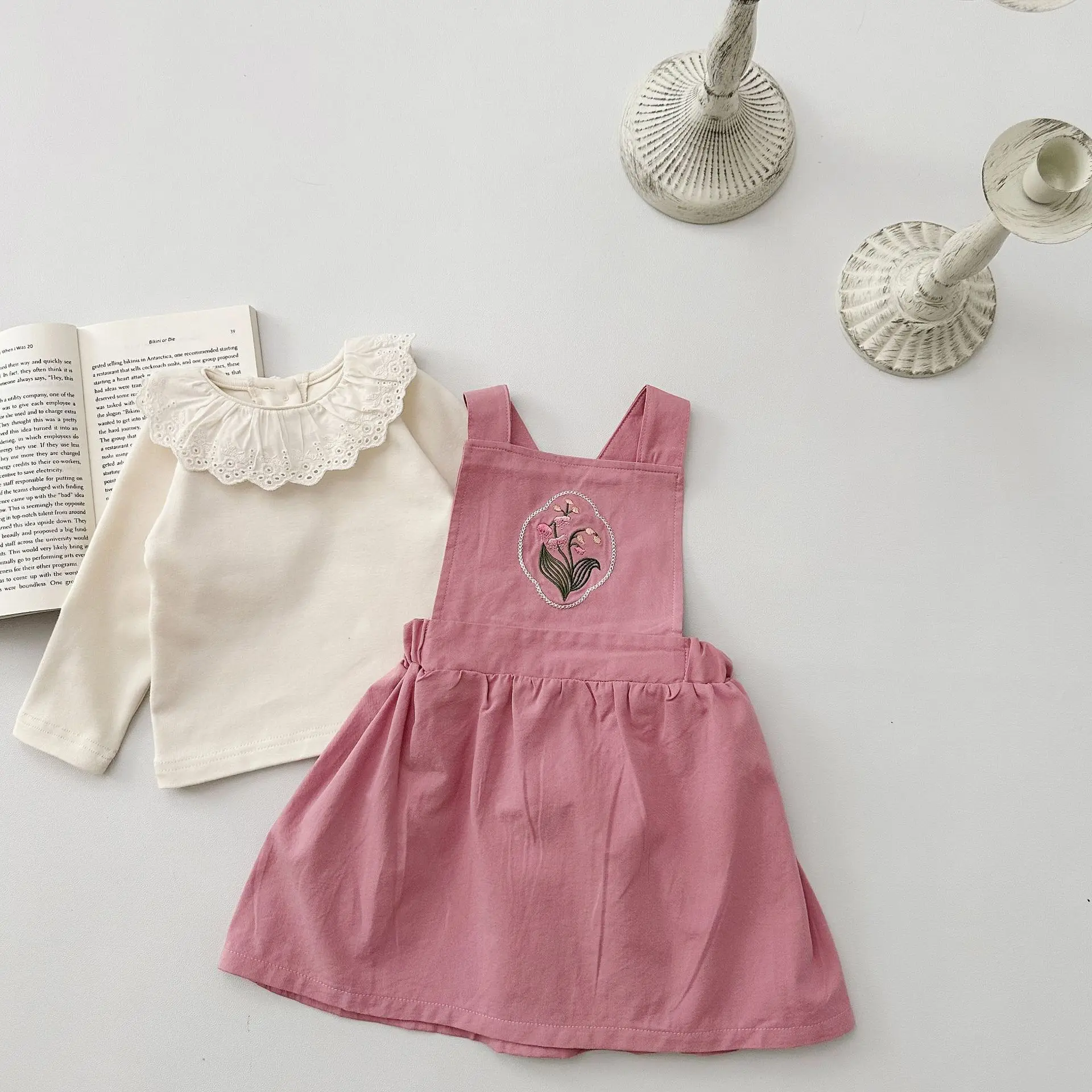 Baby Dress/Tops: Long-Sleeved Lace Collar T-Shirt and Sleeveless Embroidered Jumper Skirt [mh0004631]