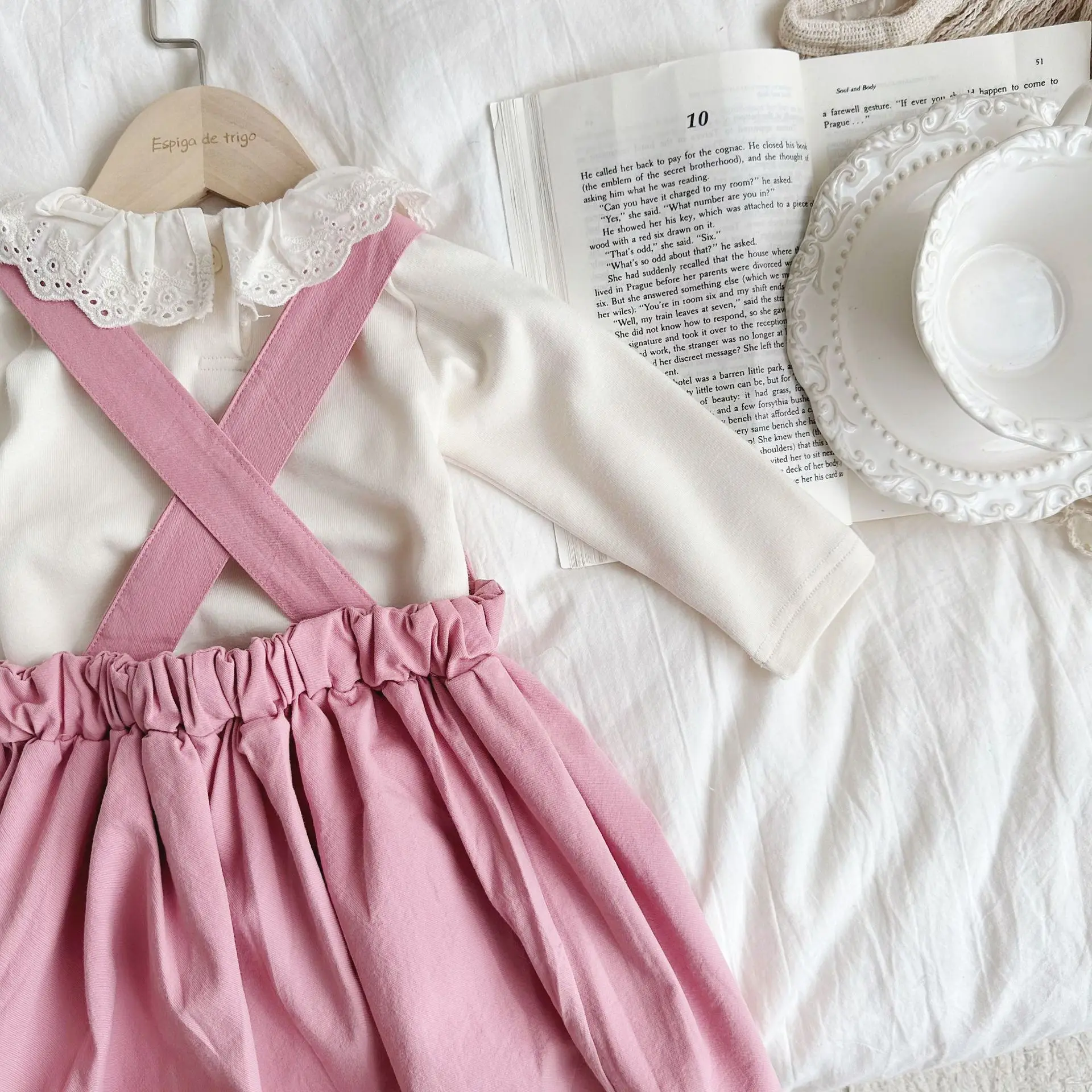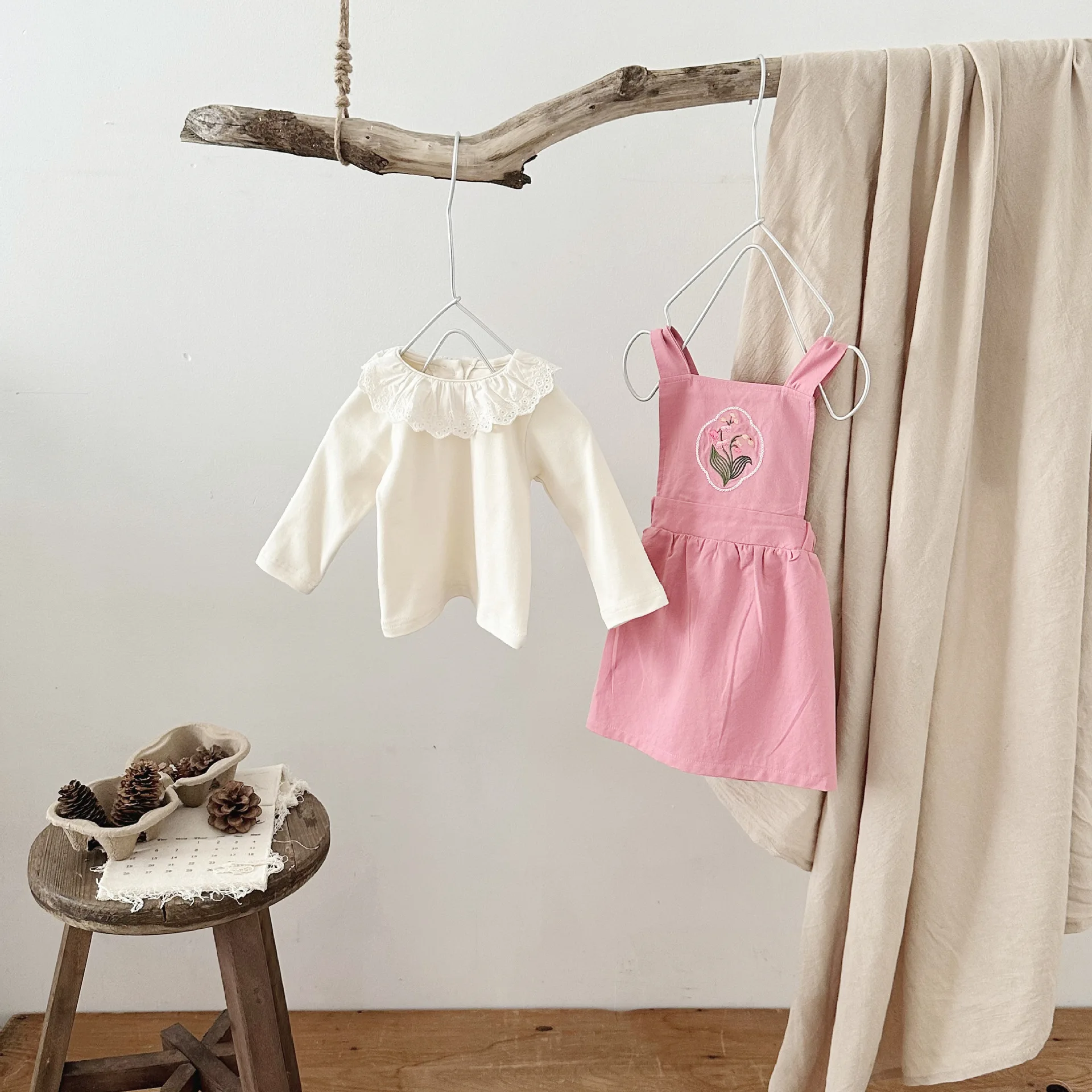 #Baby girl fashion #Lace collar T-shirt #Embroidered jumper skirt #Spring/Autumn outfit #Girls fashion #Baby dress