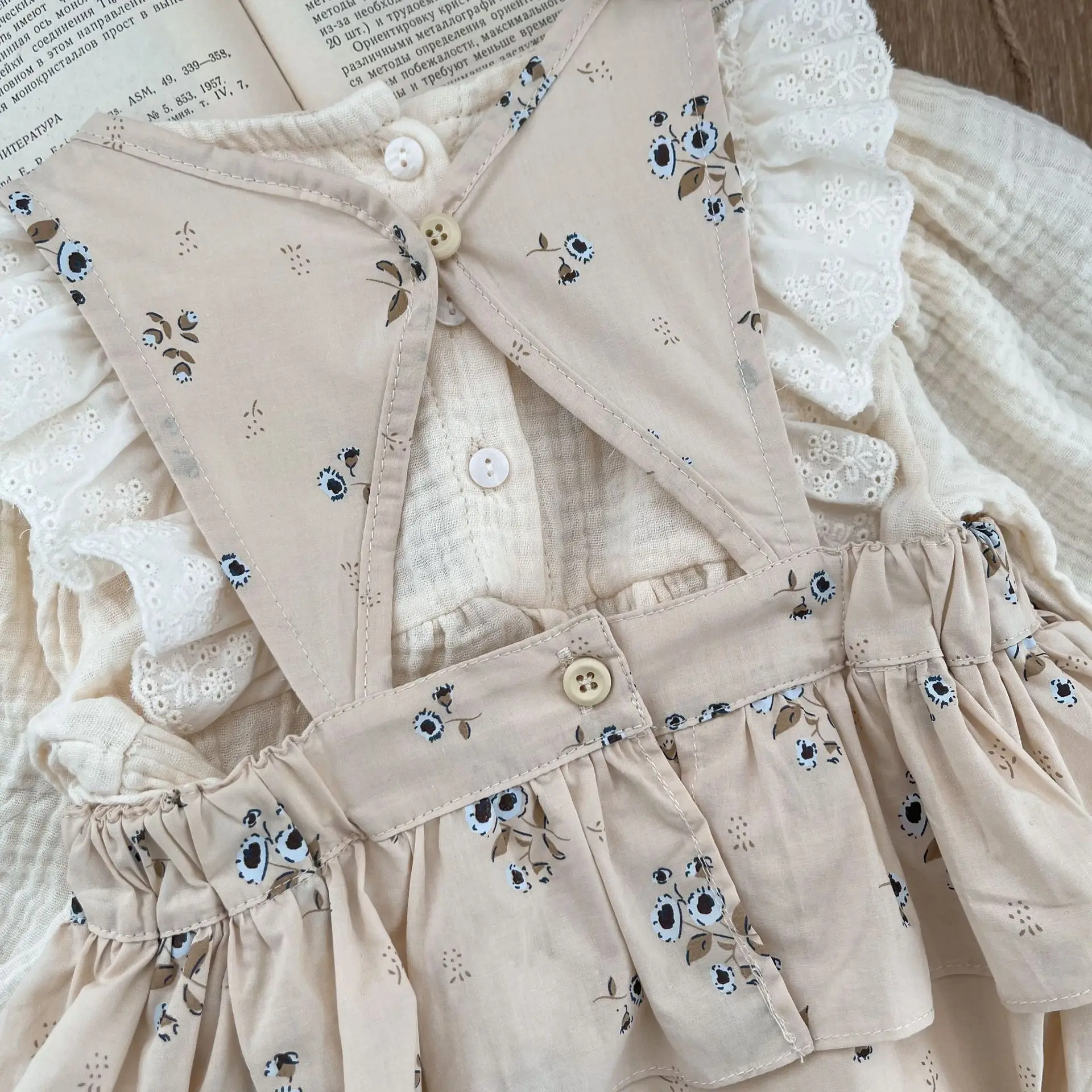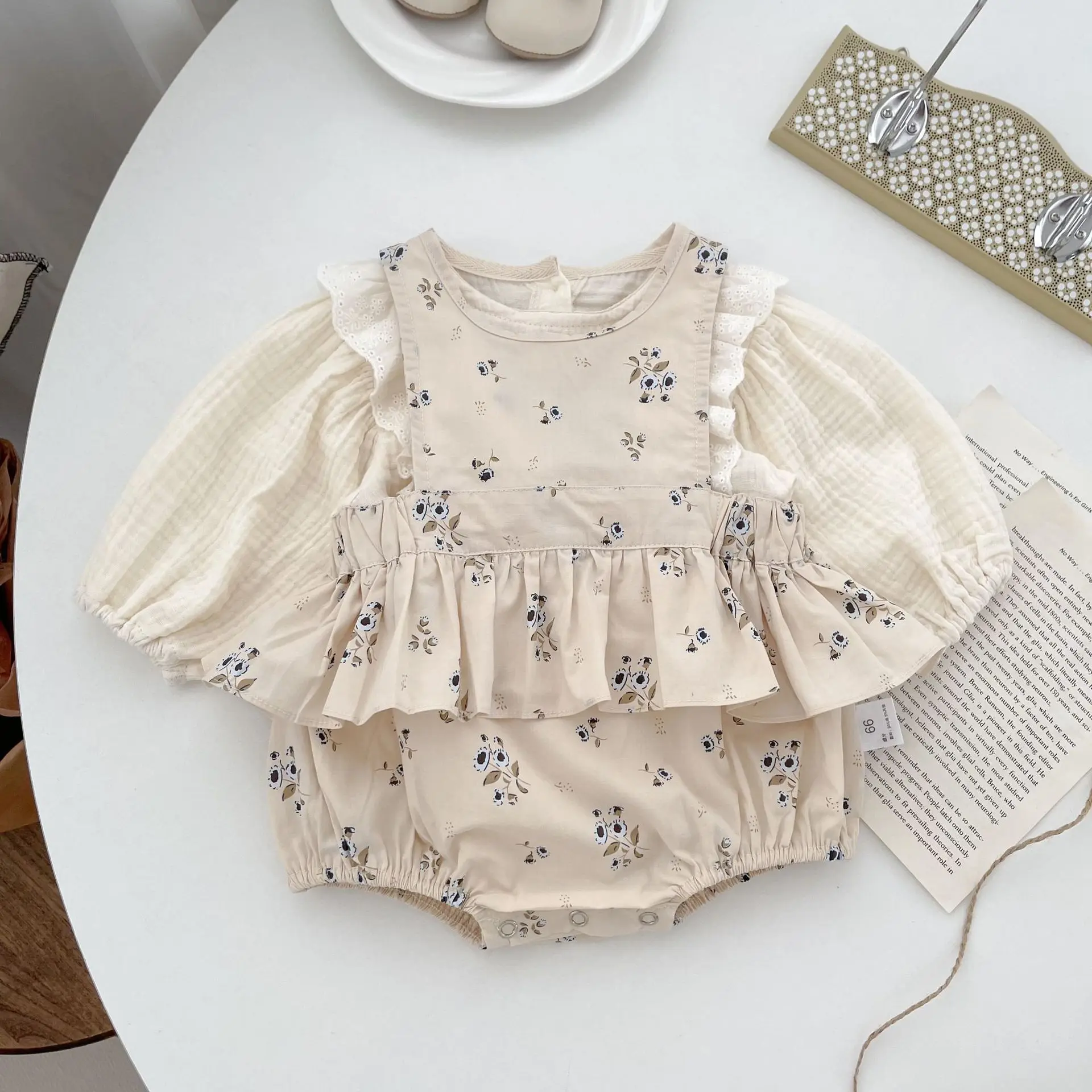 A new baby romper for adorable girls has arrived in time for the summer sun. This sleeveless bodysuit features a gorgeous floral print and elegant ruffles, making it a cool and girly outfit. The soft material feels good against the skin and is gentle on your baby's delicate skin. The refreshing design is perfect for the hot season and supports your baby's active movements. A perfect outfit for a fashionable baby girl.