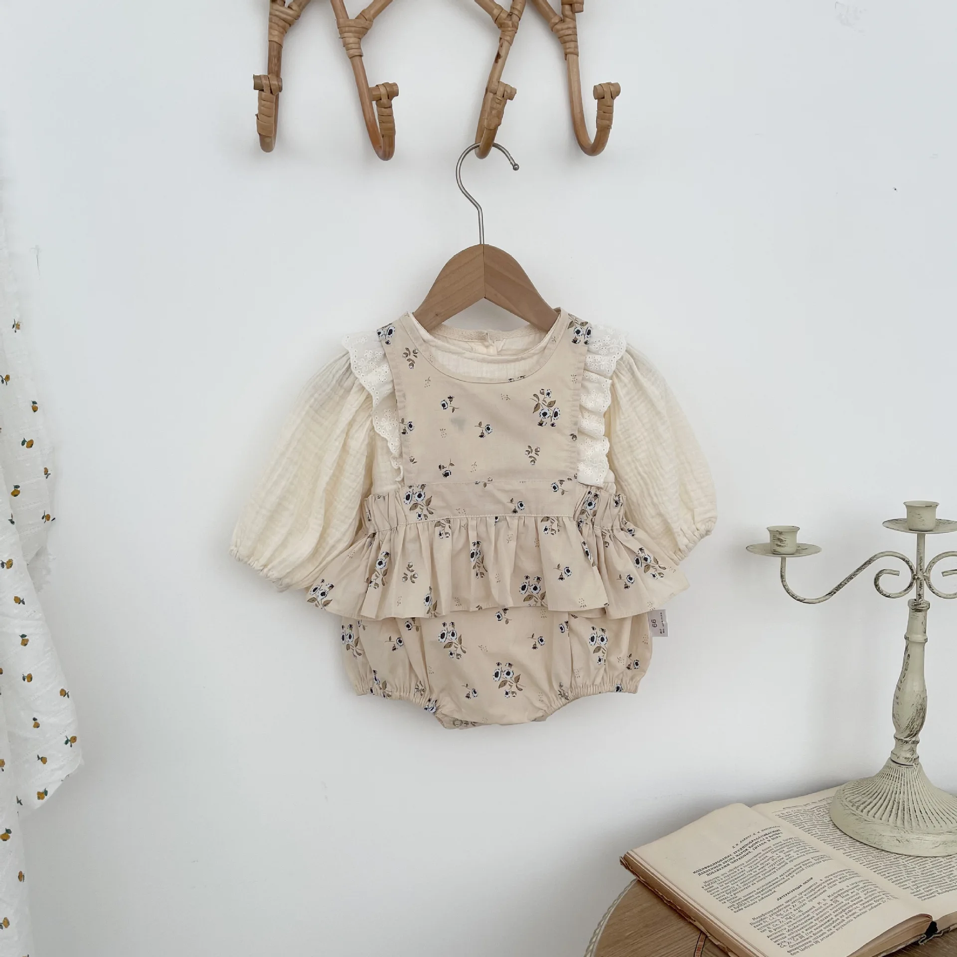 Baby romper sleeveless bodysuit with ruffles and floral print [mh0004649]