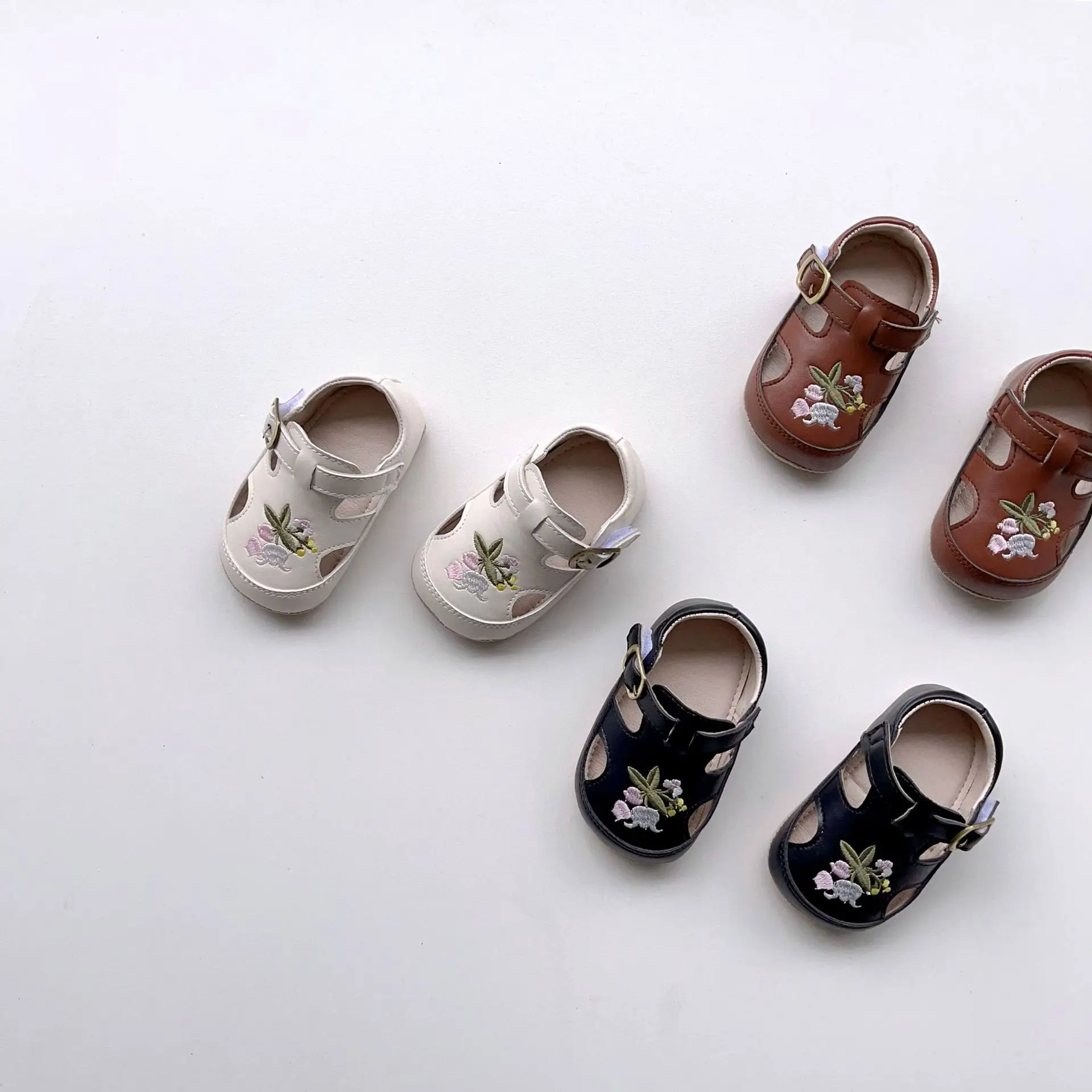 Baby shoes, strap shoes, flat shoes, first shoes, flower embroidery, indoor shoes [mh0005362]