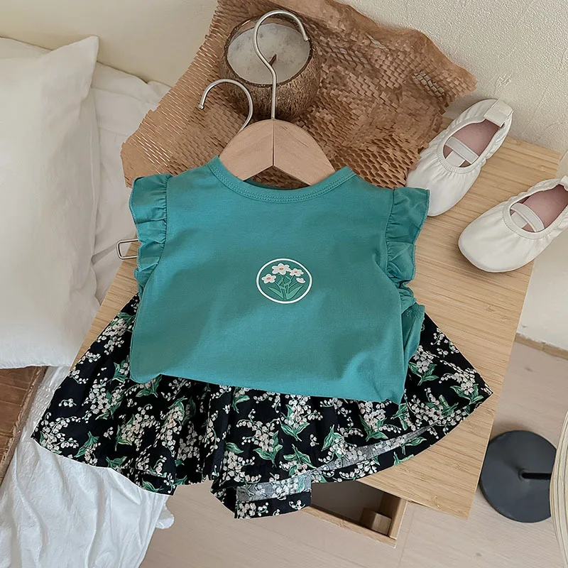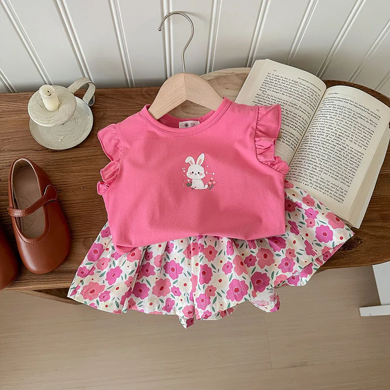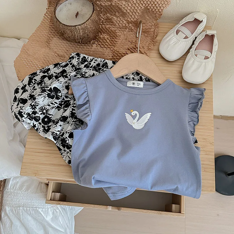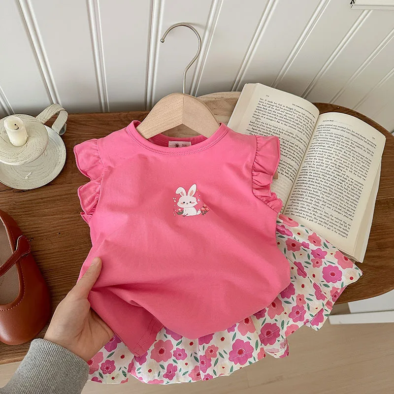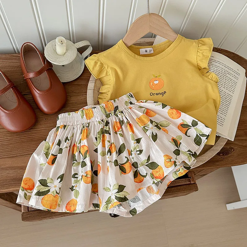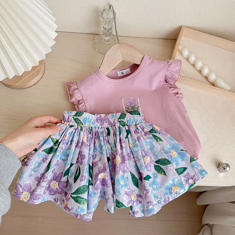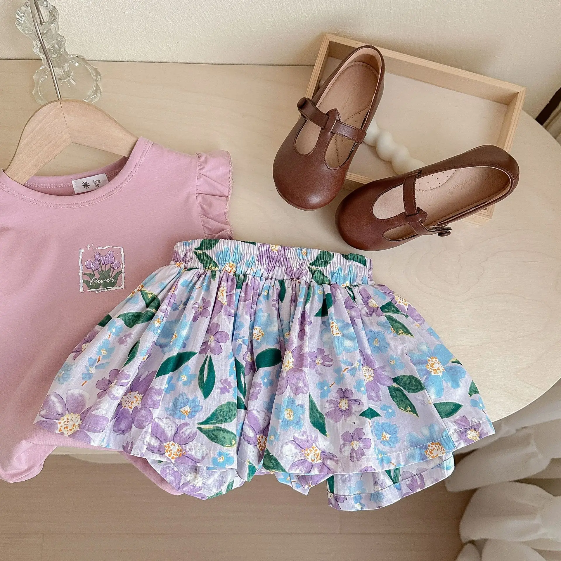 Kids' 2-Piece Set: Ruffle Sleeve T-Shirt and Flared Shorts, Print Pattern [mh0005484]