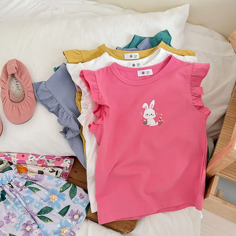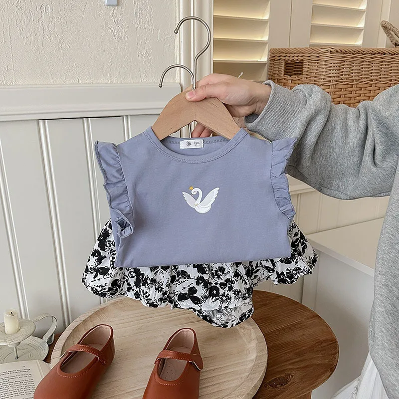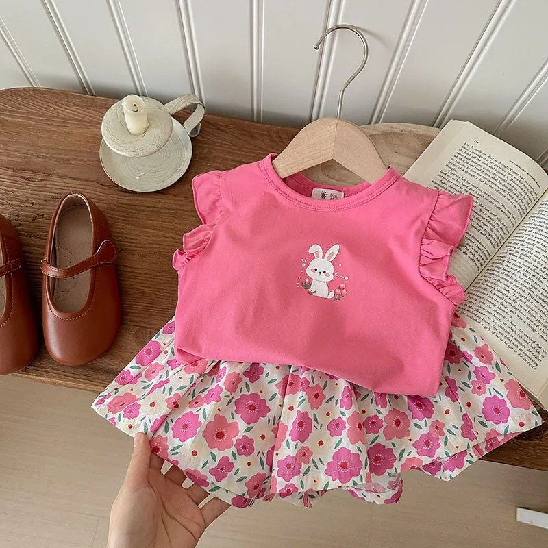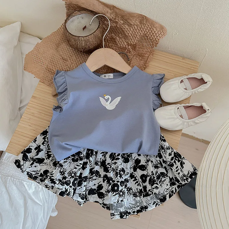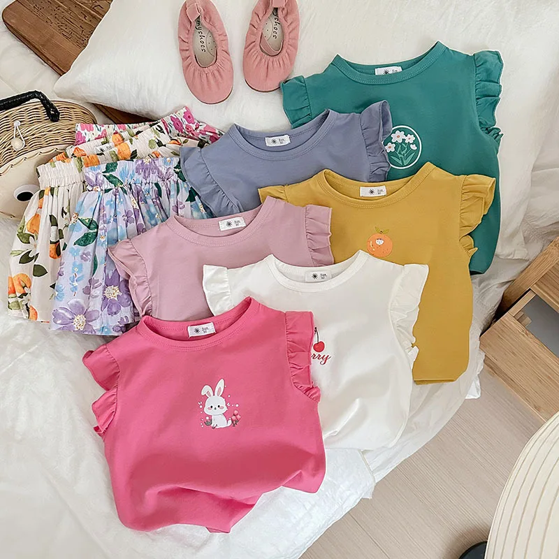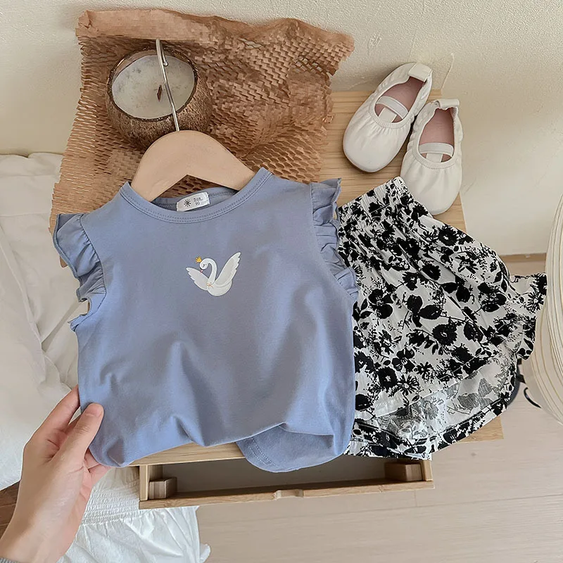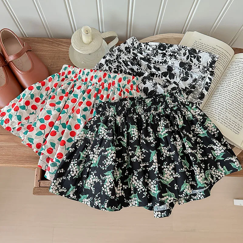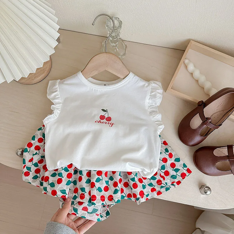 Kids' 2-Piece Set: Ruffle Sleeve T-Shirt and Flared Shorts, Print Pattern [mh0005484]