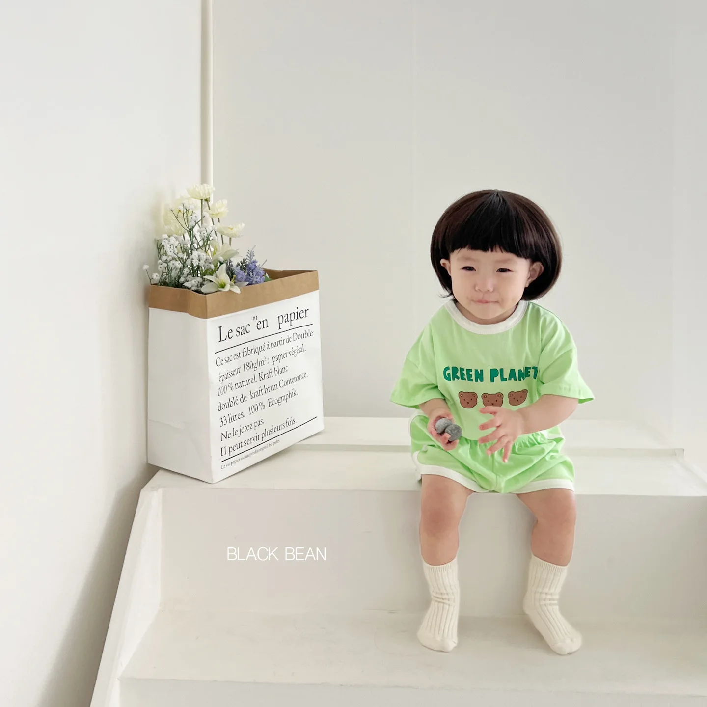This baby set is the perfect style for the hot summer. The soft cotton material gently wraps your baby's skin. It is a set of a cute short-sleeved T-shirt with a bear print and cool shorts. The design is suitable for both boys and girls. It is an item that combines comfort and cuteness for your child.