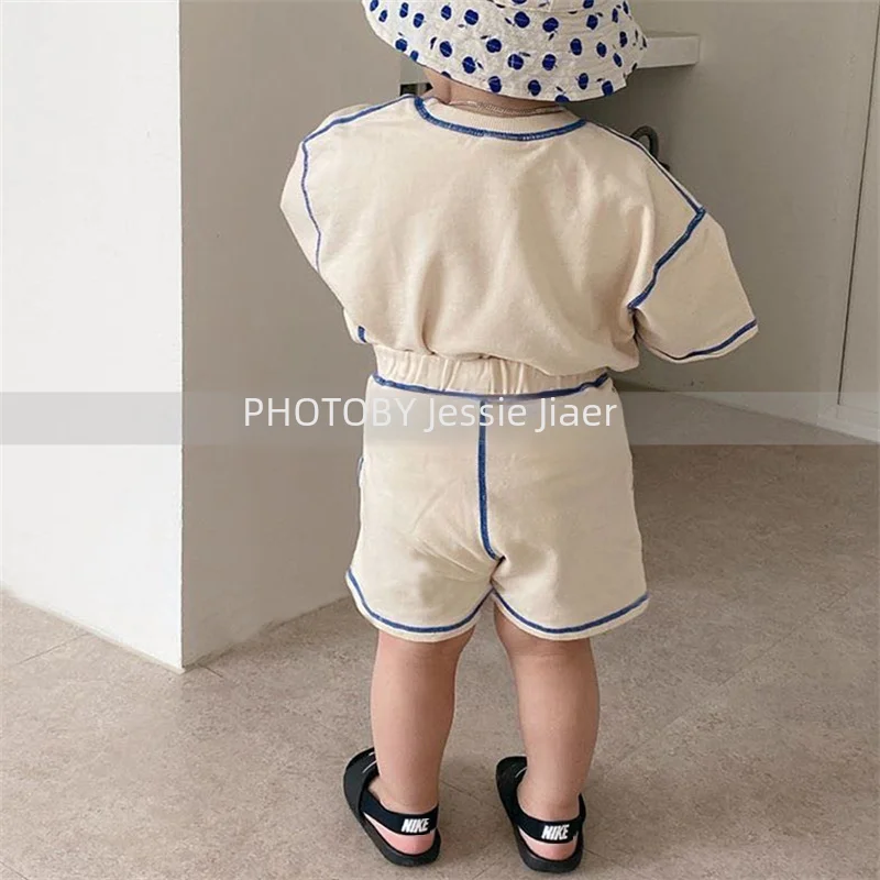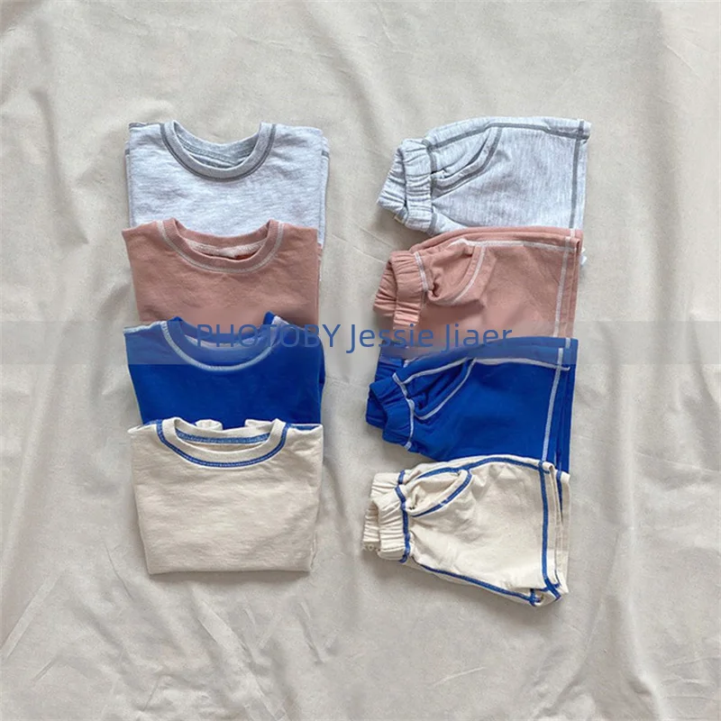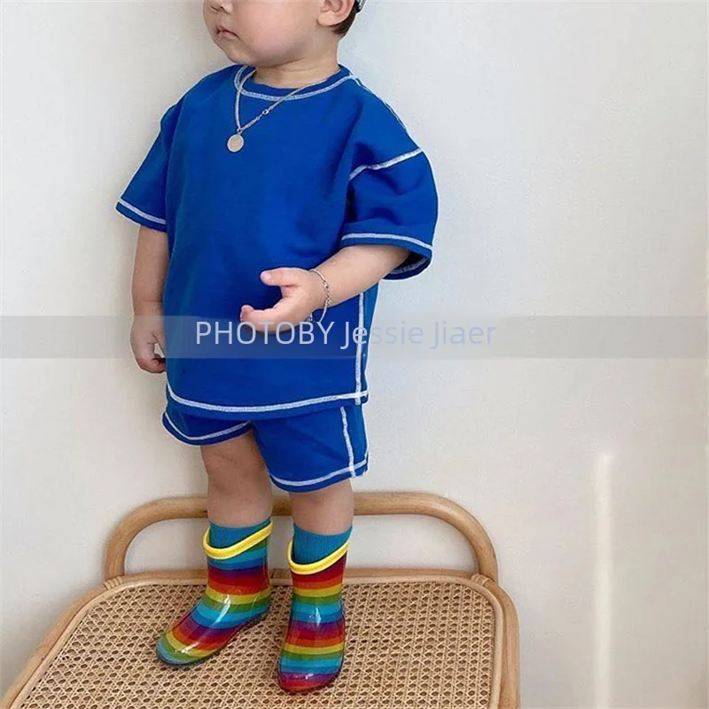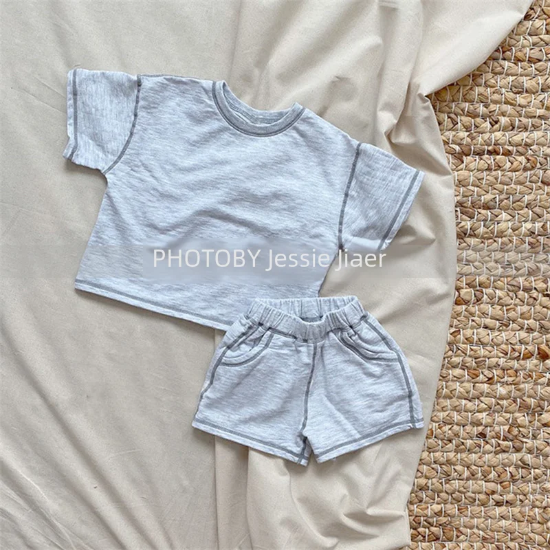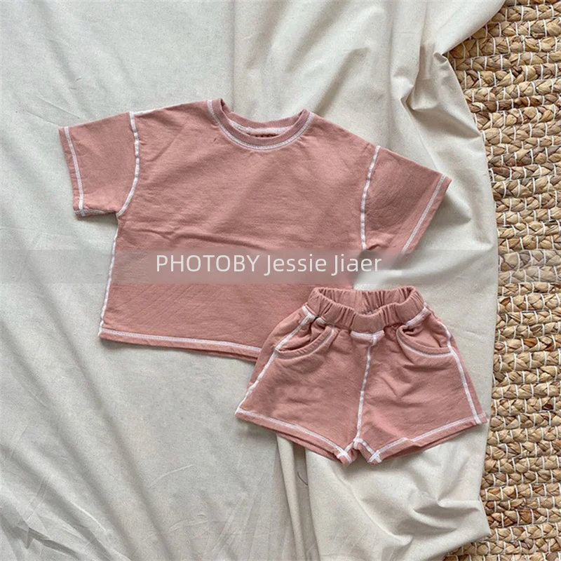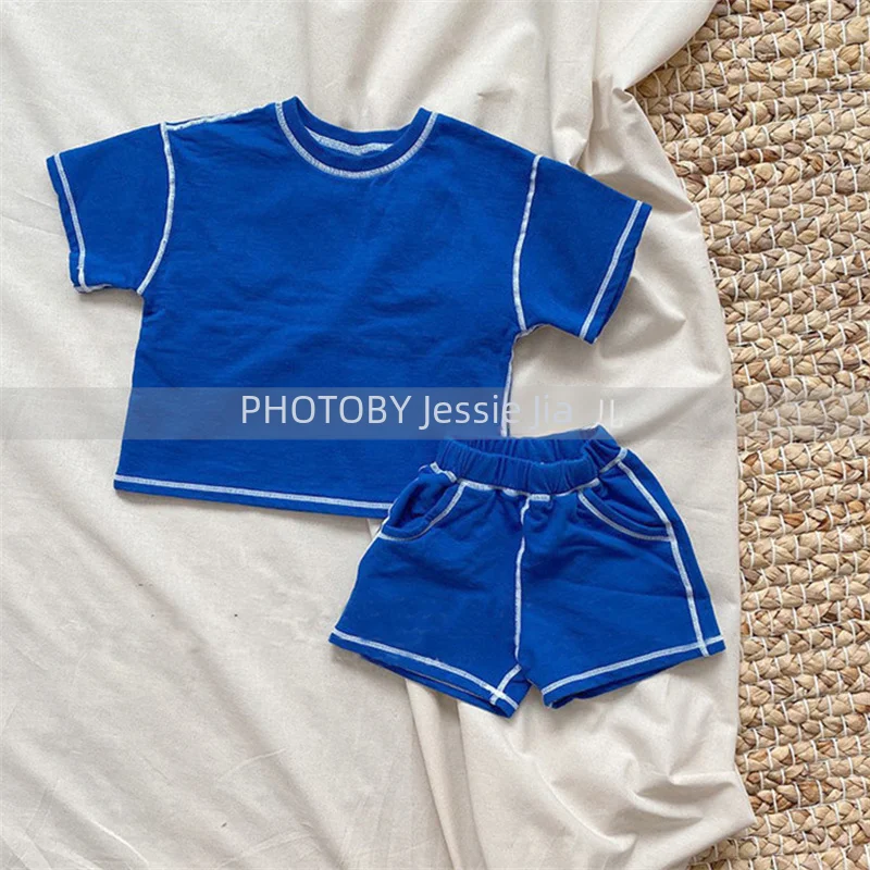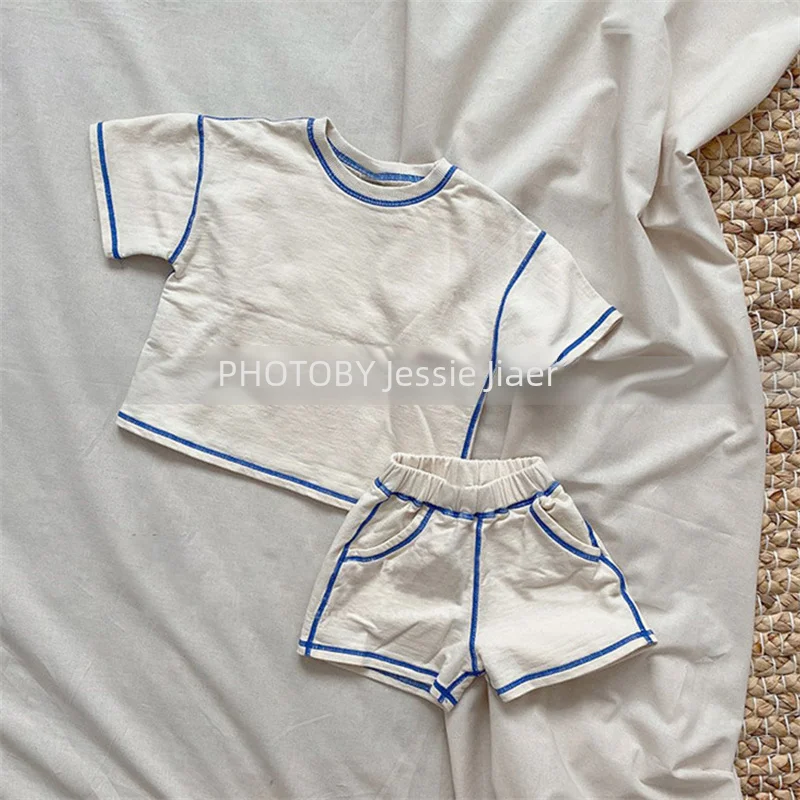 This kids outfit is a two-piece set of shorts and a simple basic short sleeve T-shirt with stitch accents for kids boys and girls for a new summer style. The cotton shorts are comfortable and casual for kids, perfect for the hot summer days. This two-piece set makes choosing clothes easy and versatile, making your kids' fun summer days even more wonderful!