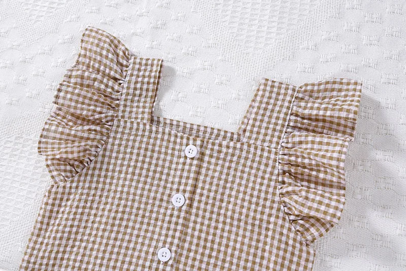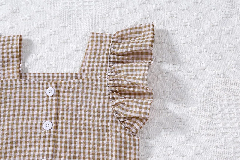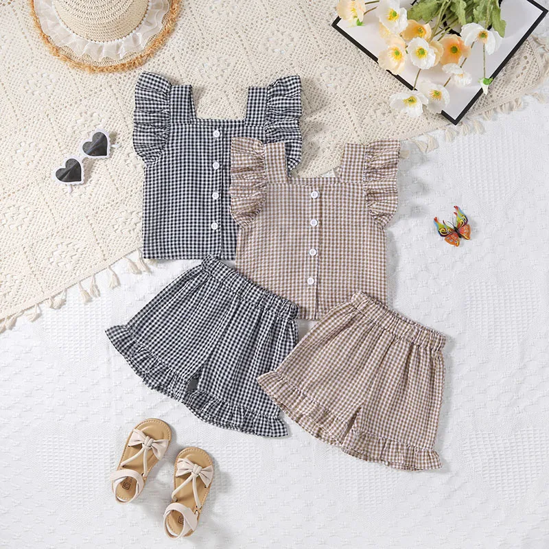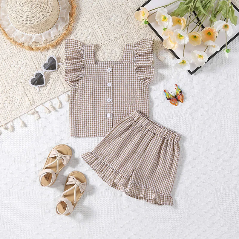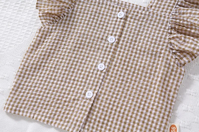 Baby set 2-piece set: ruffle sleeve blouse + shorts, check, 2 colors [mh0005857]
