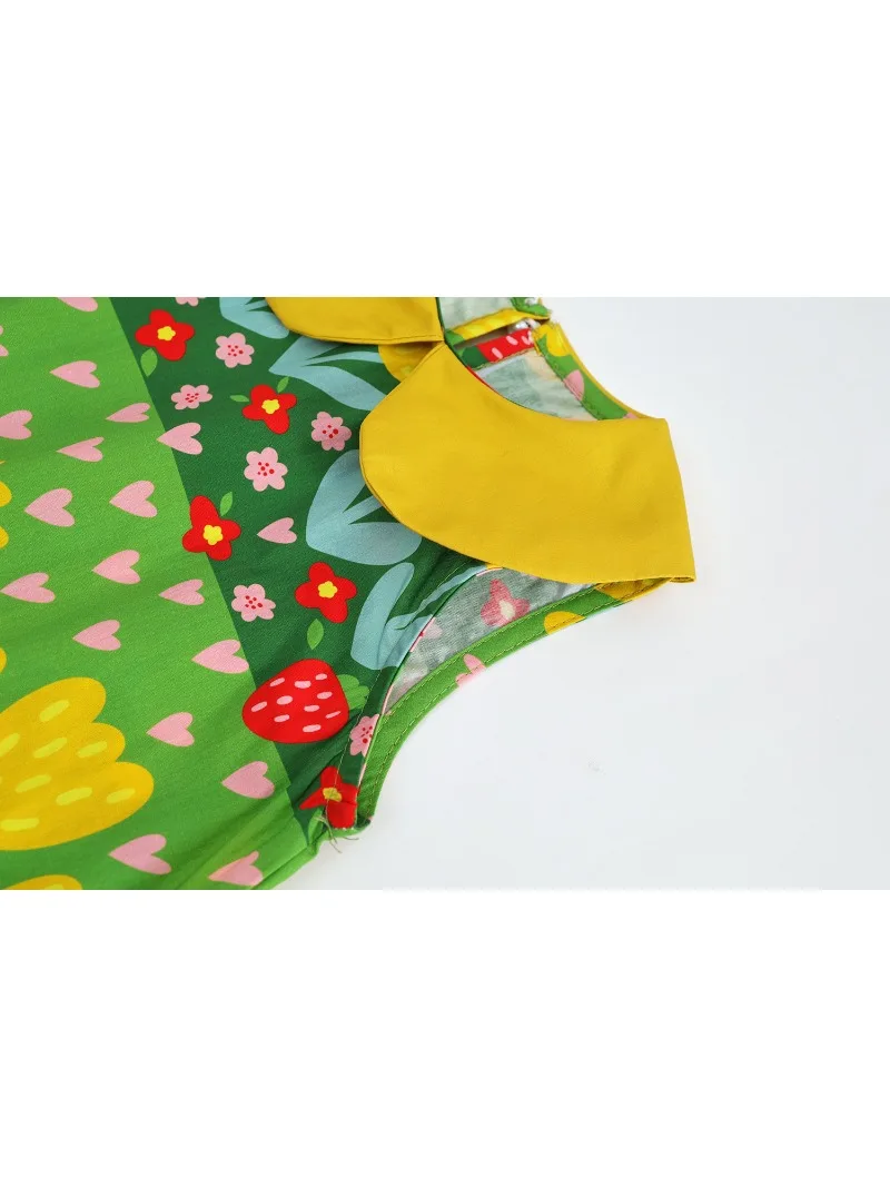Kids' sleeveless dress with a round collar and retro floral print in green [mh0005892]