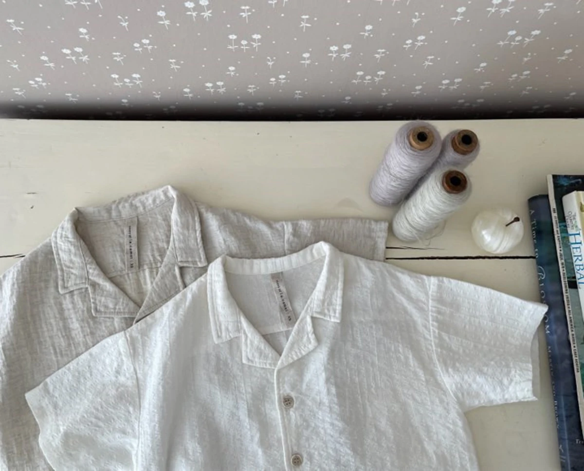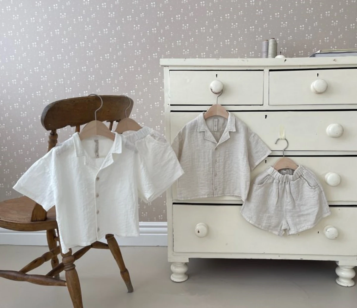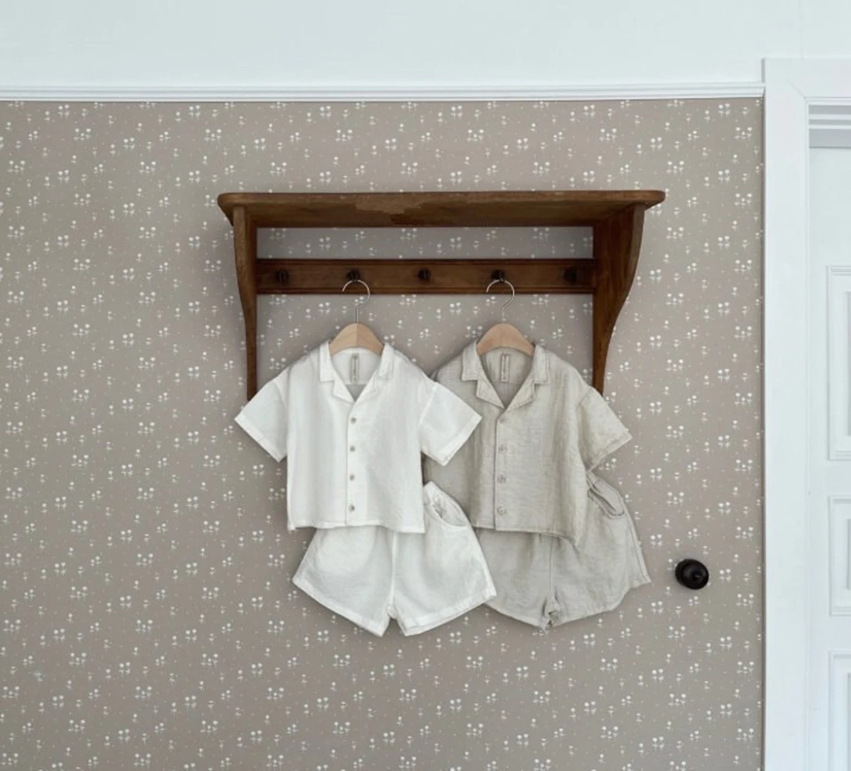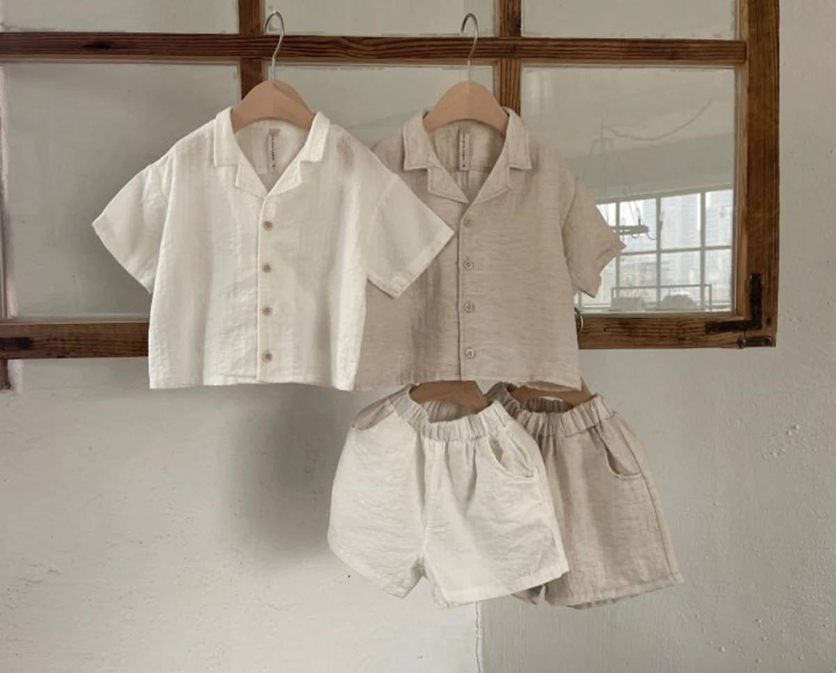 Baby 2-Piece Set: Short-Sleeve Safari Shirt and Shorts, Simple Basic, Available in 2 Colors [mh0005937]