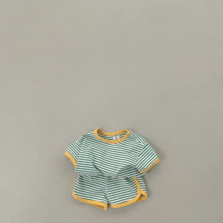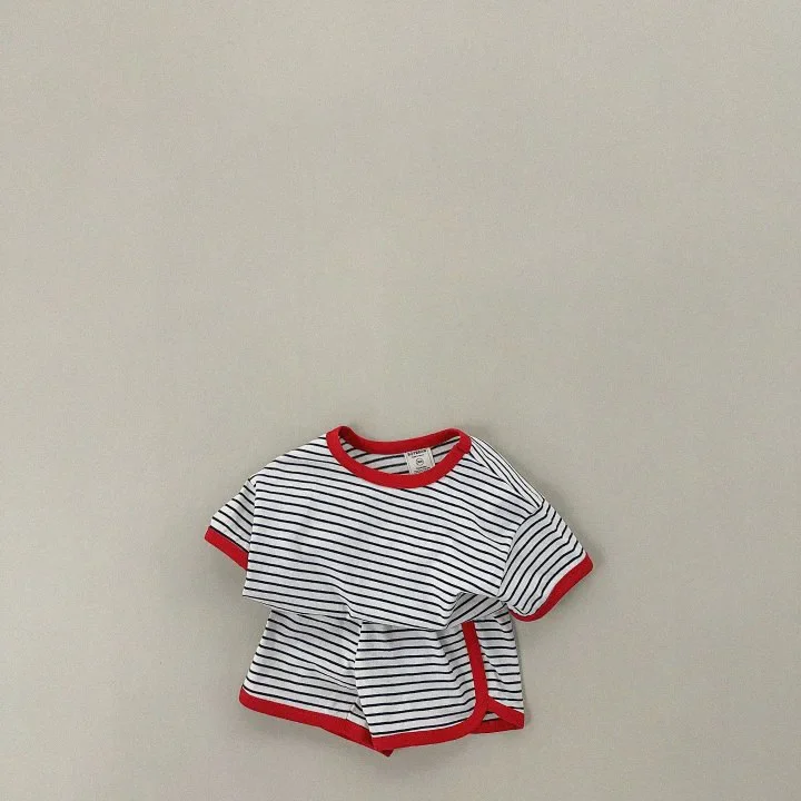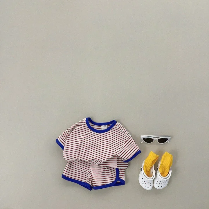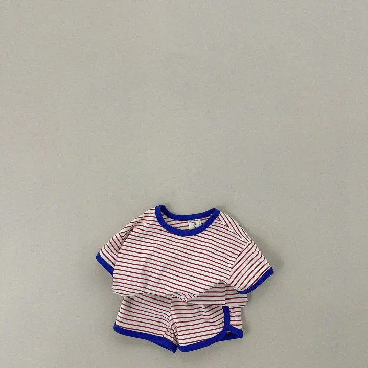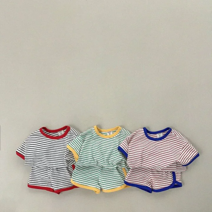 Kids' 2-Piece Set: Short-Sleeve T-Shirt and Shorts, Striped, 3 Colors [mh0005965]