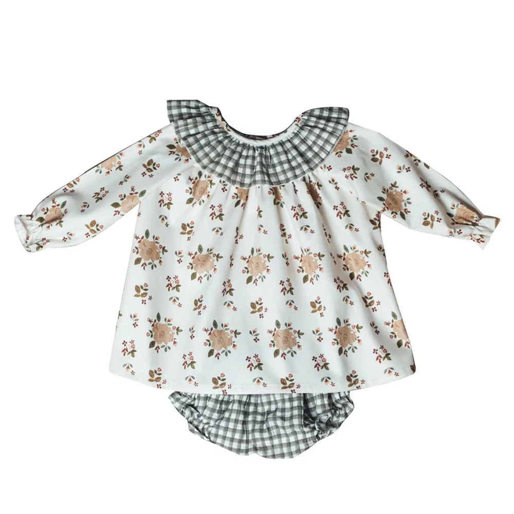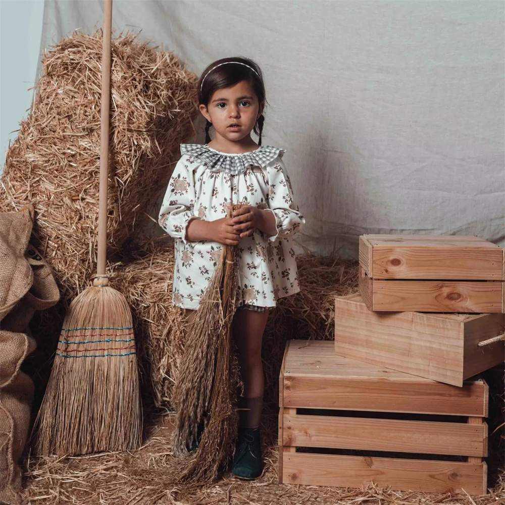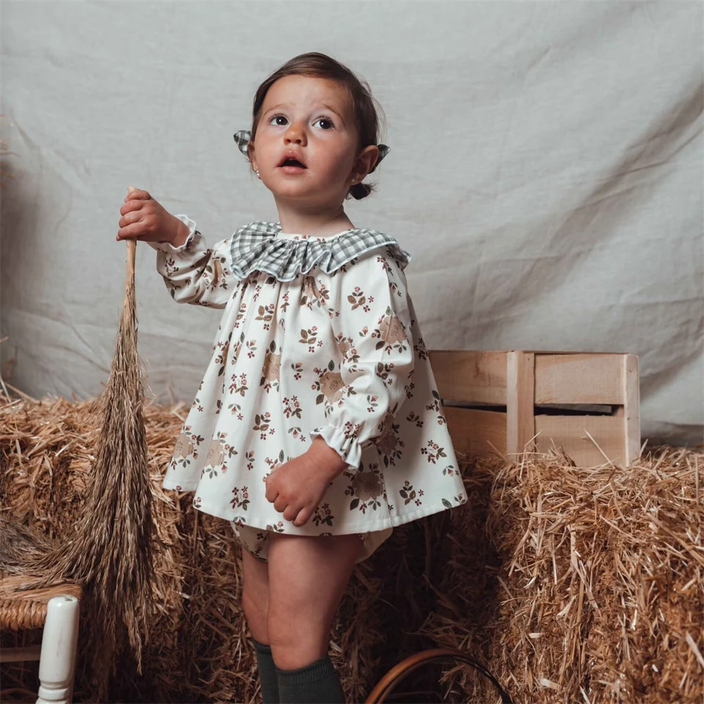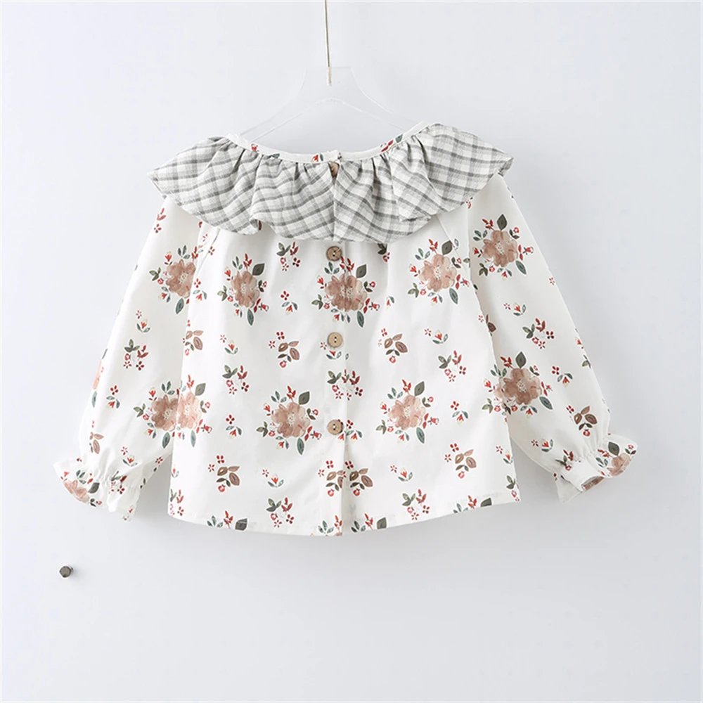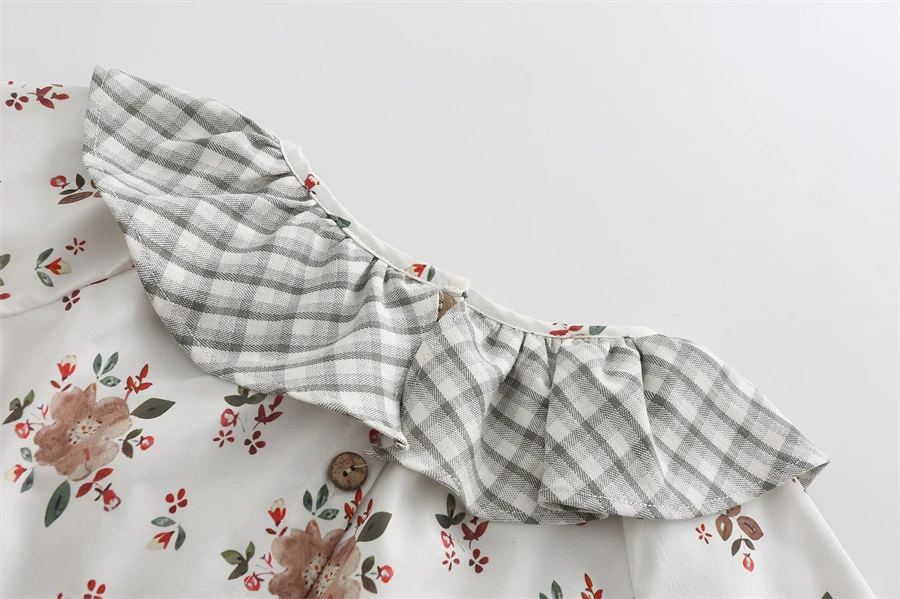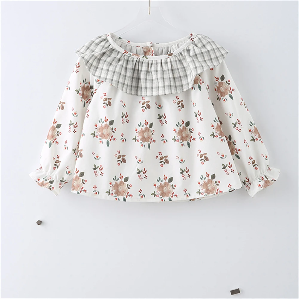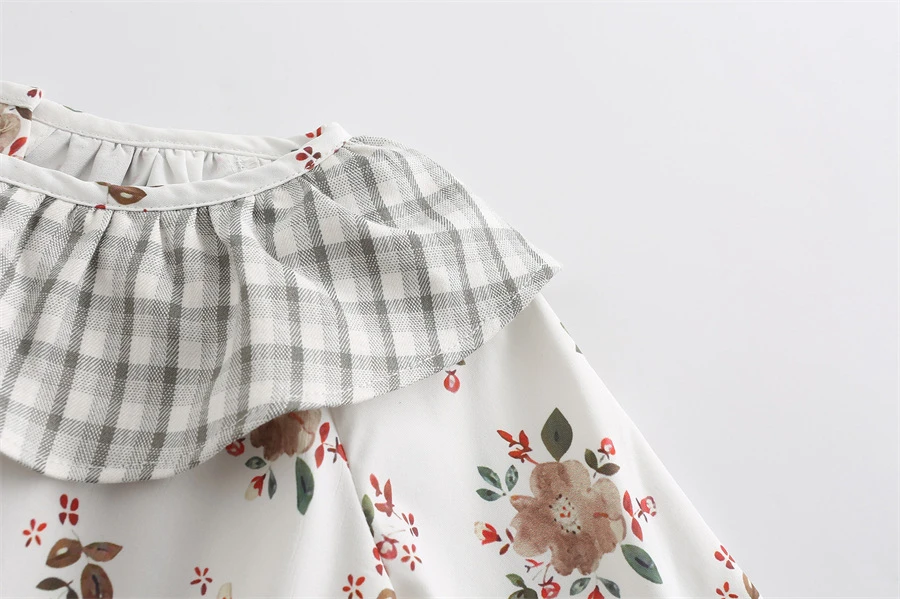 Baby tops Long sleeve tunic blouse Flower print Check [mh0006250]