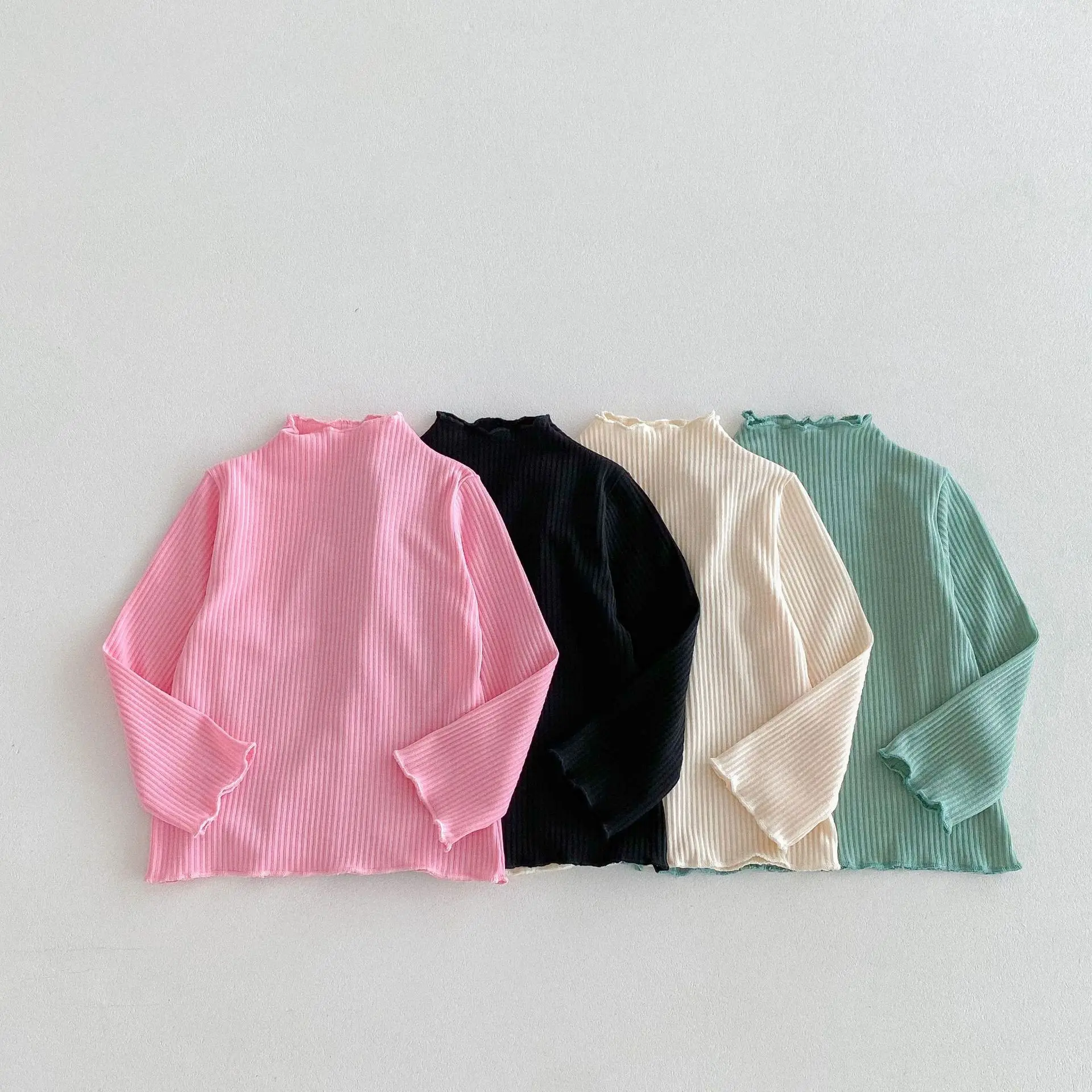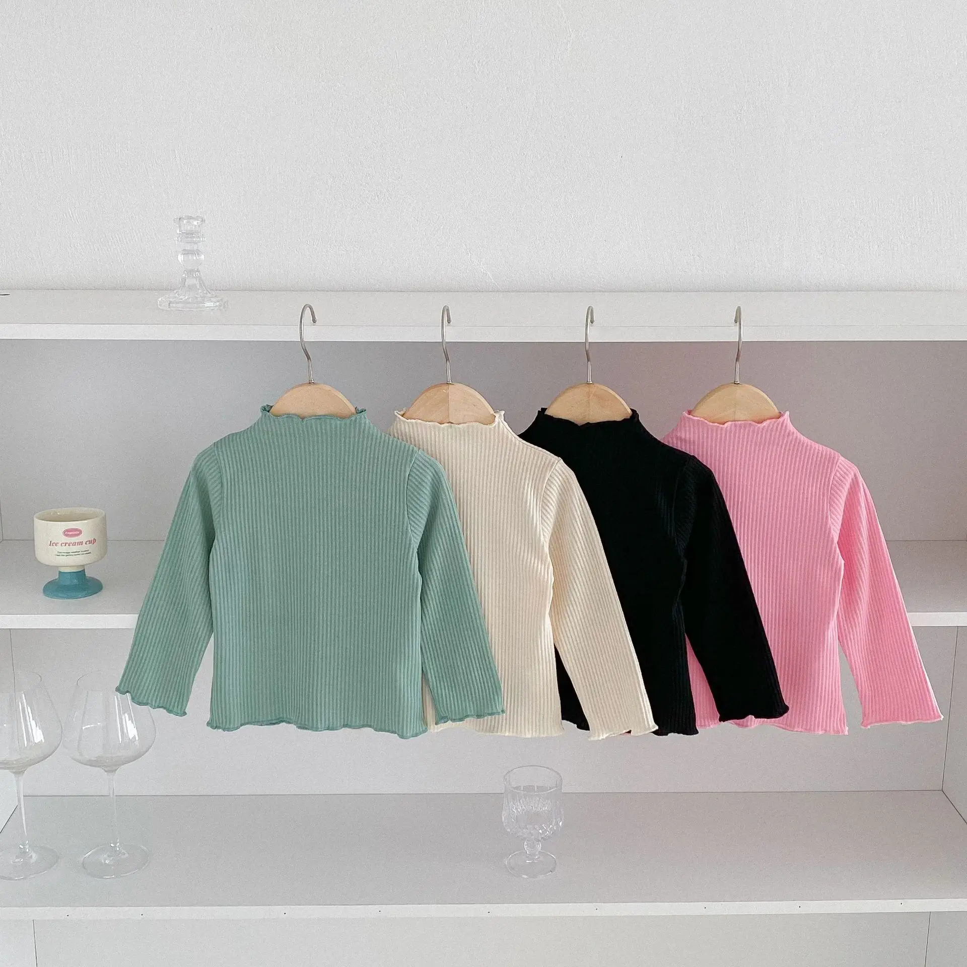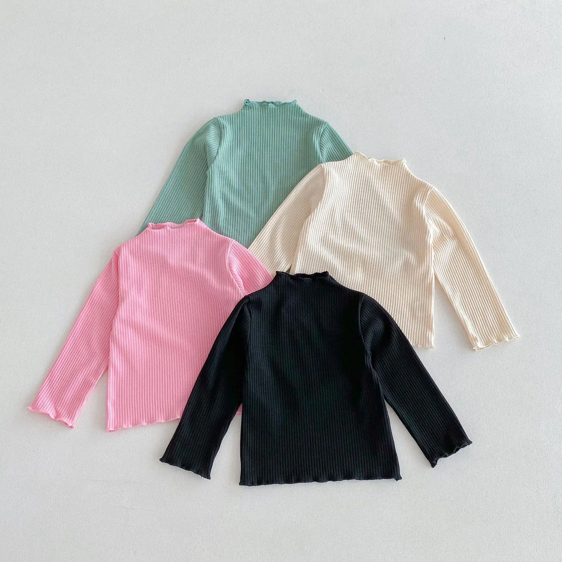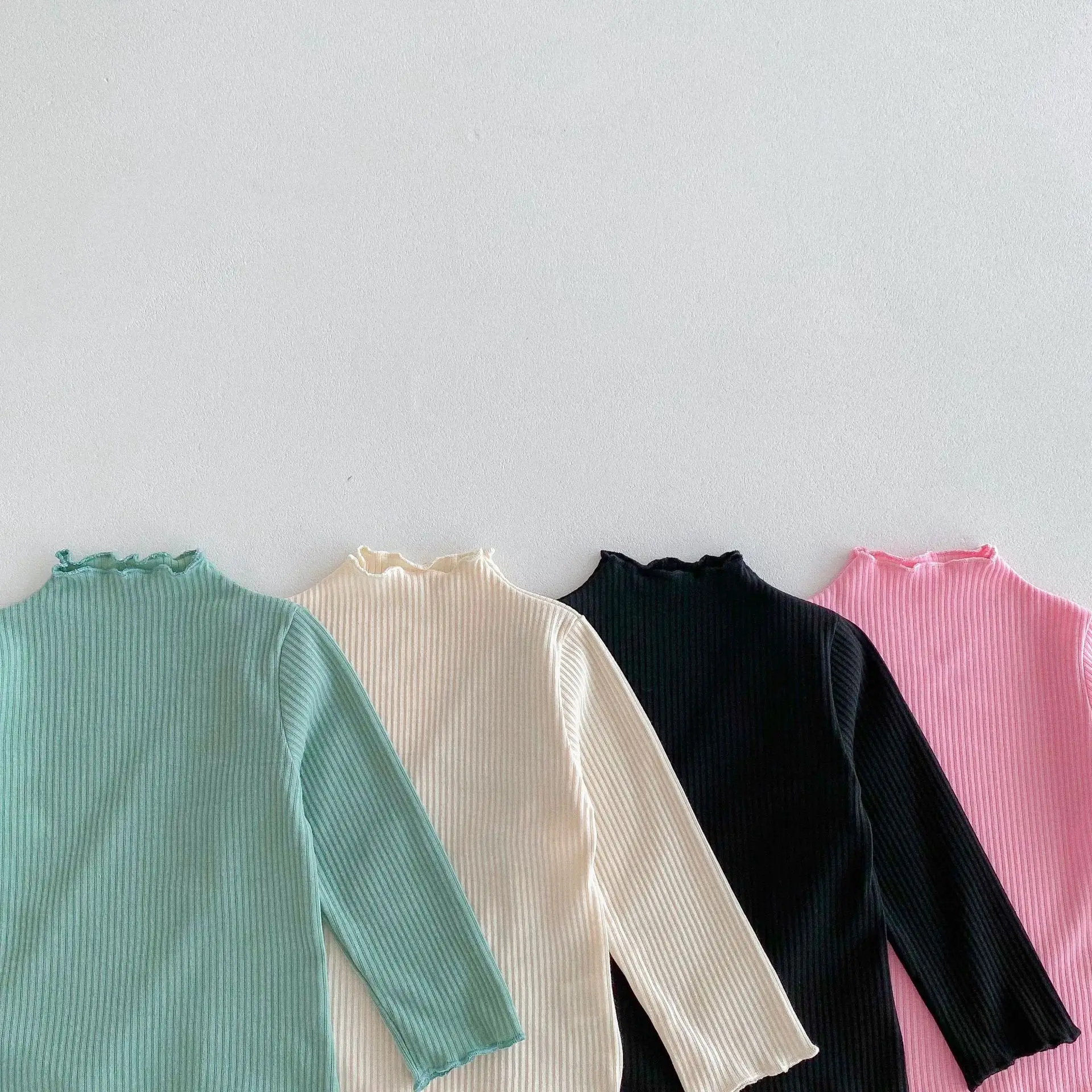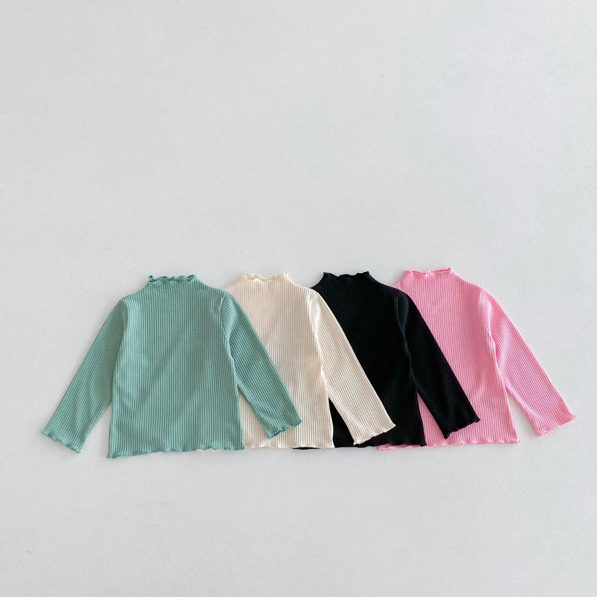 Kids Tops Frill High Neck Bottle Neck Long Sleeve T-Shirt Simple Basic 4 Colors [mh0006378]