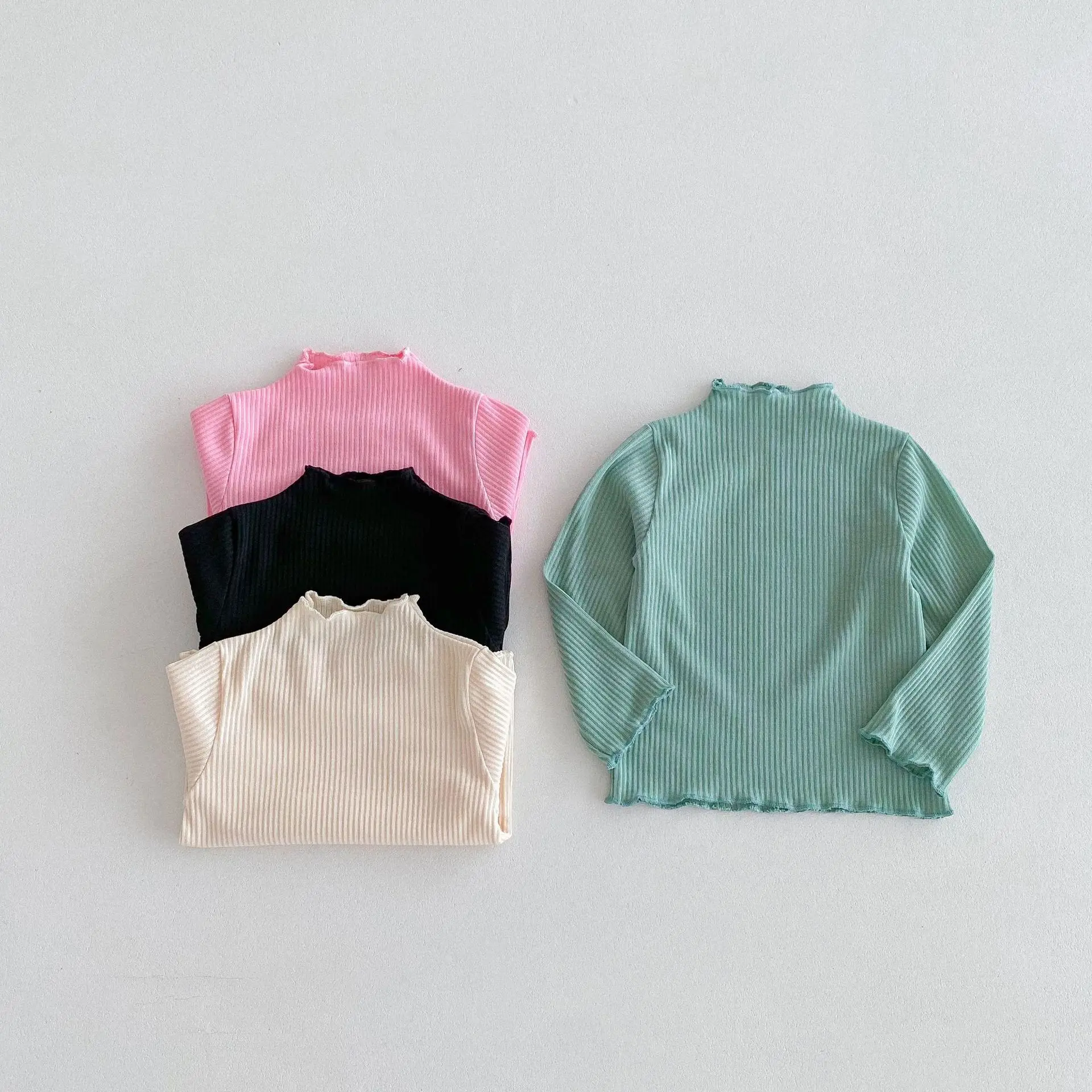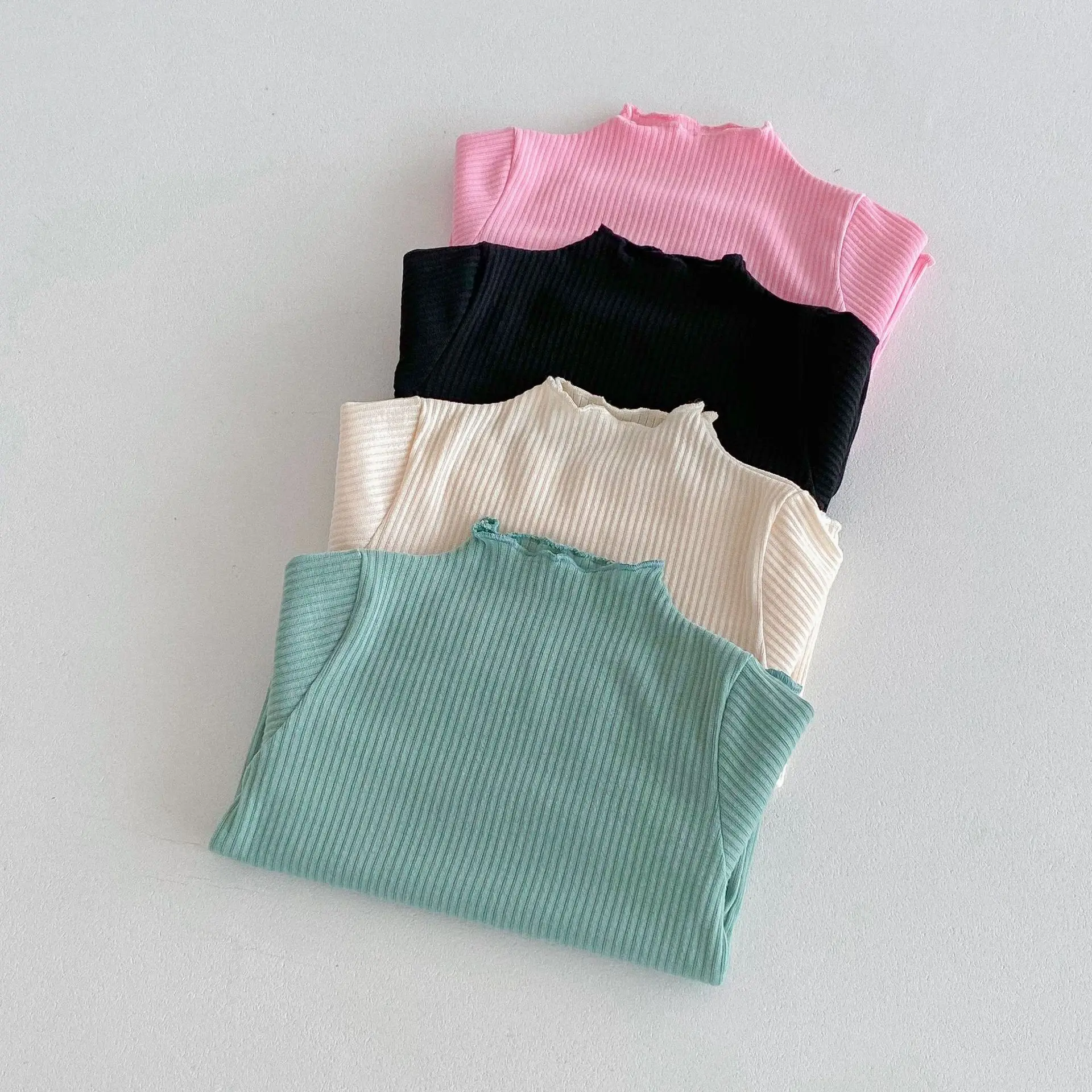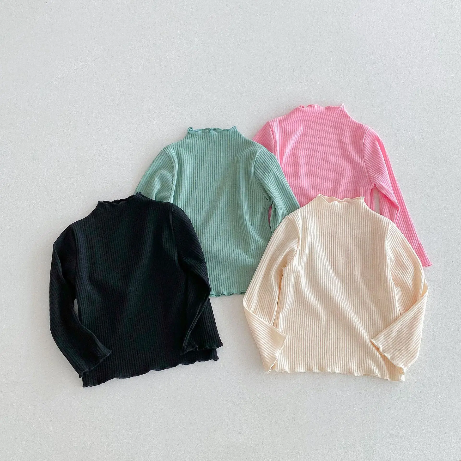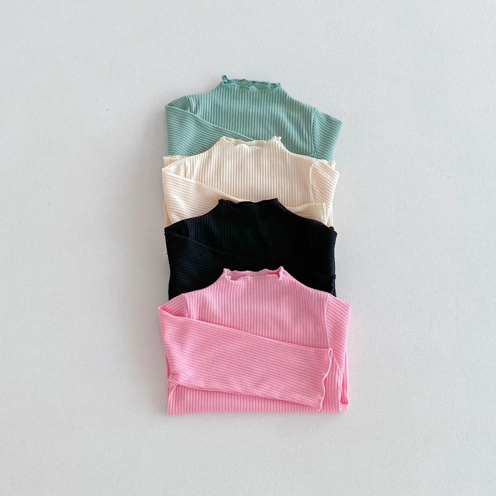 Kids Tops Frill High Neck Bottle Neck Long Sleeve T-Shirt Simple Basic 4 Colors [mh0006378]