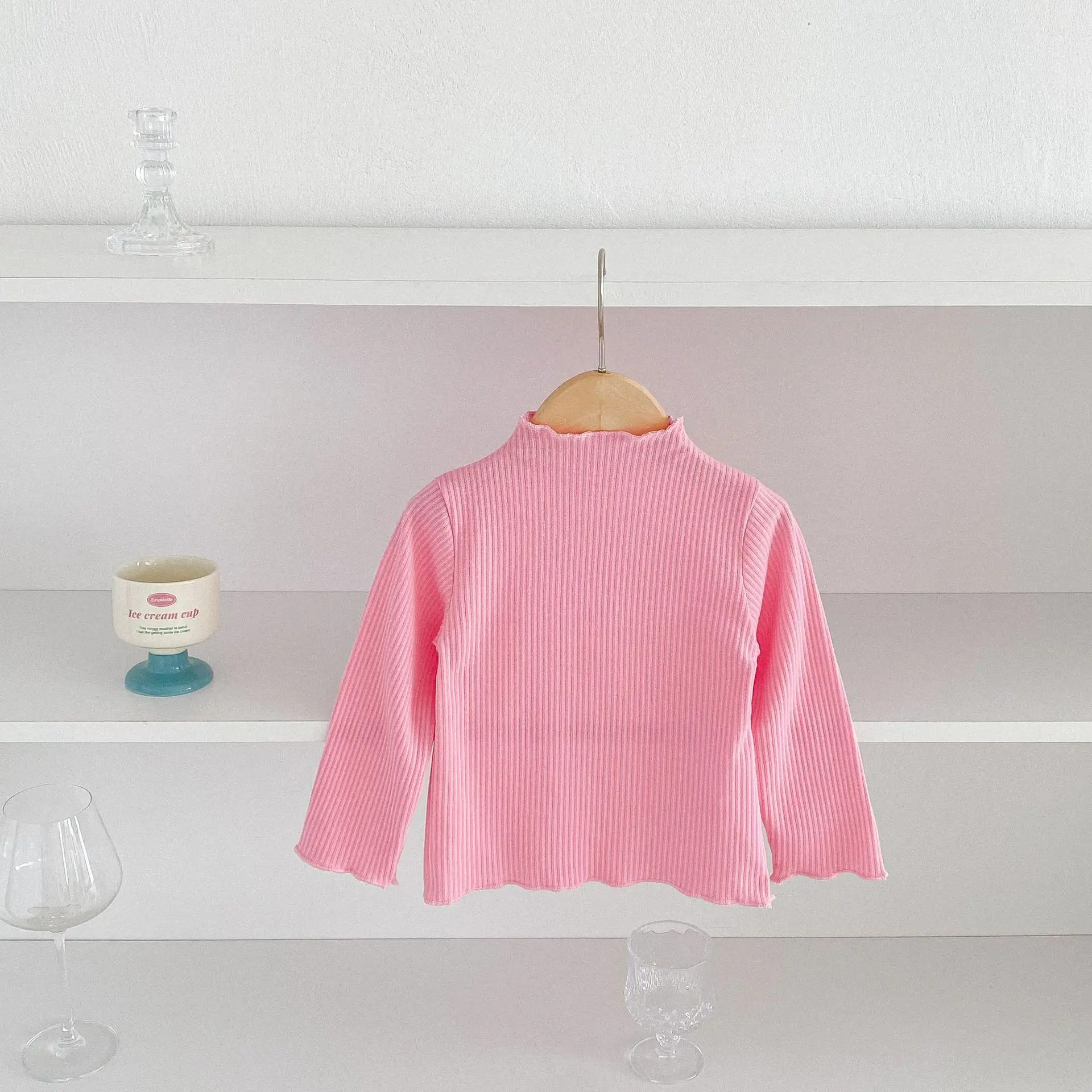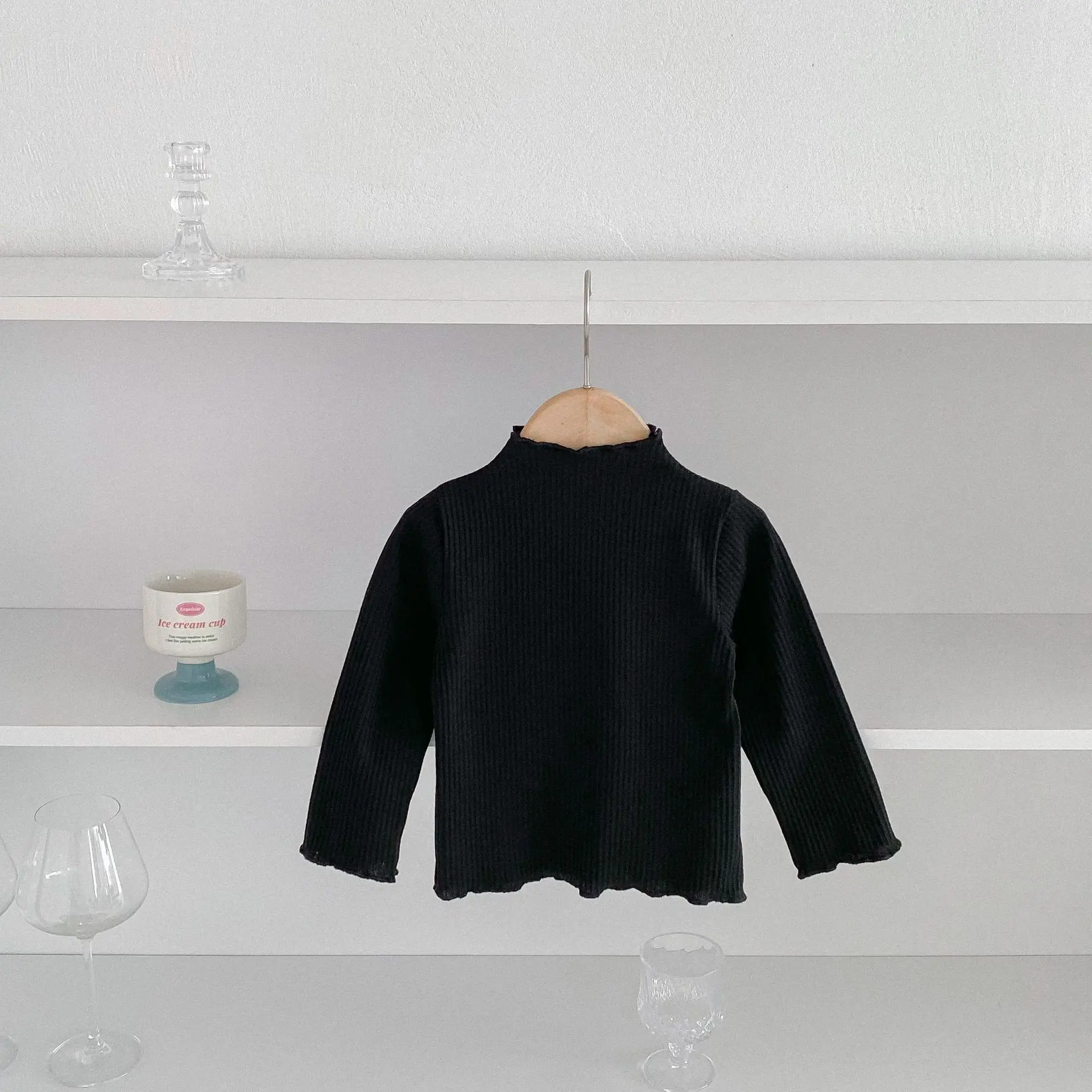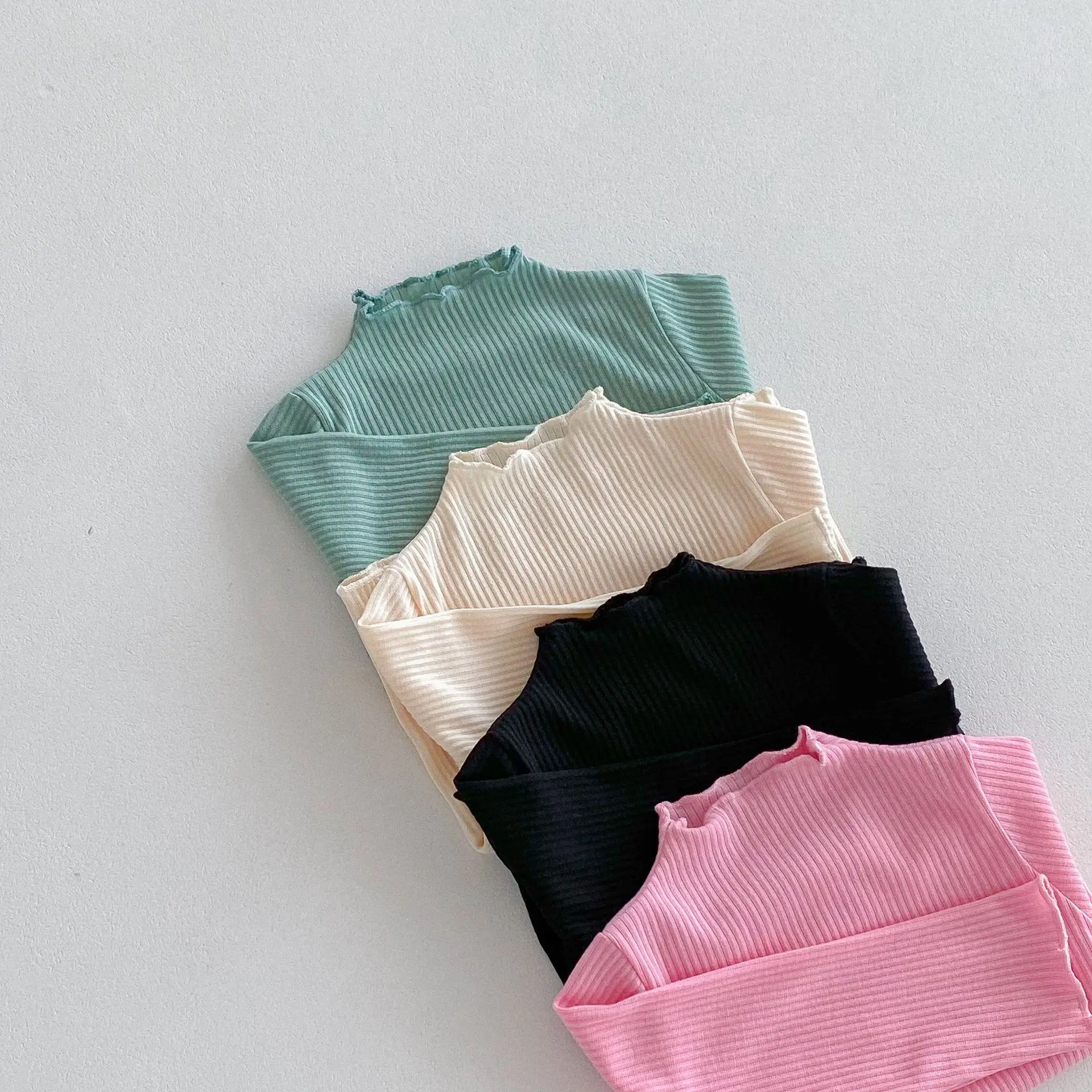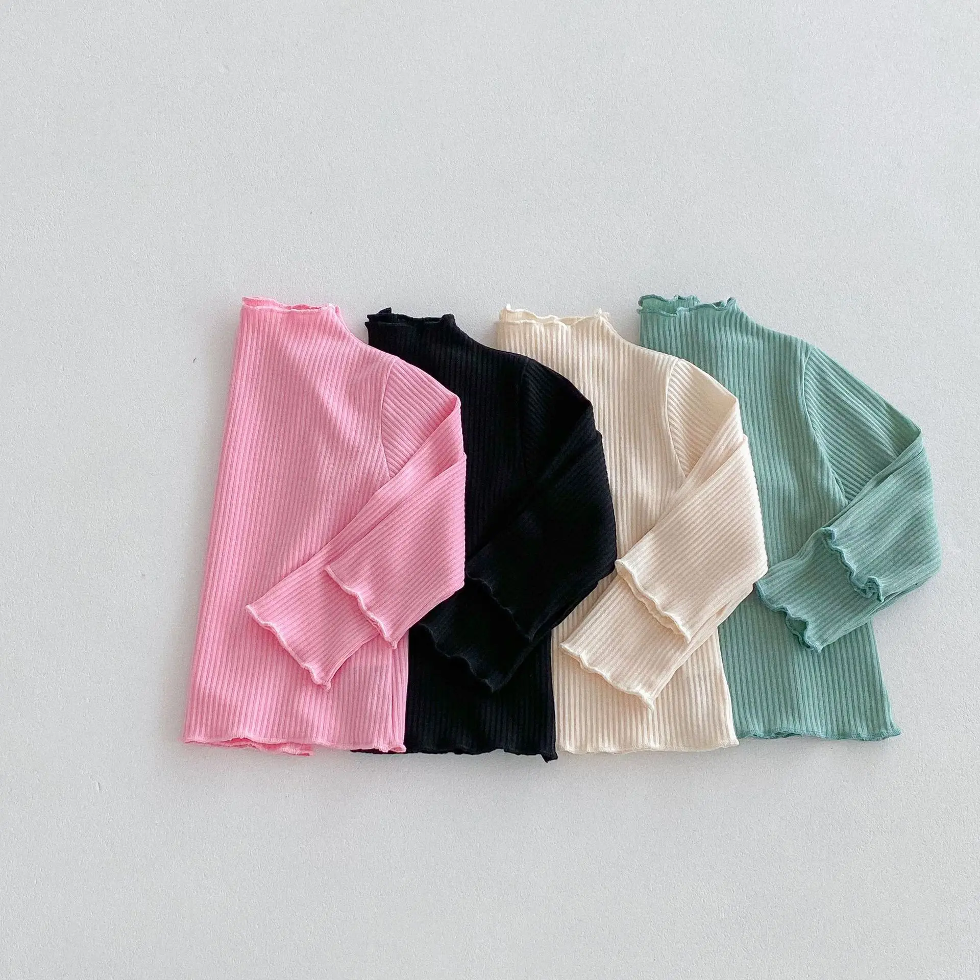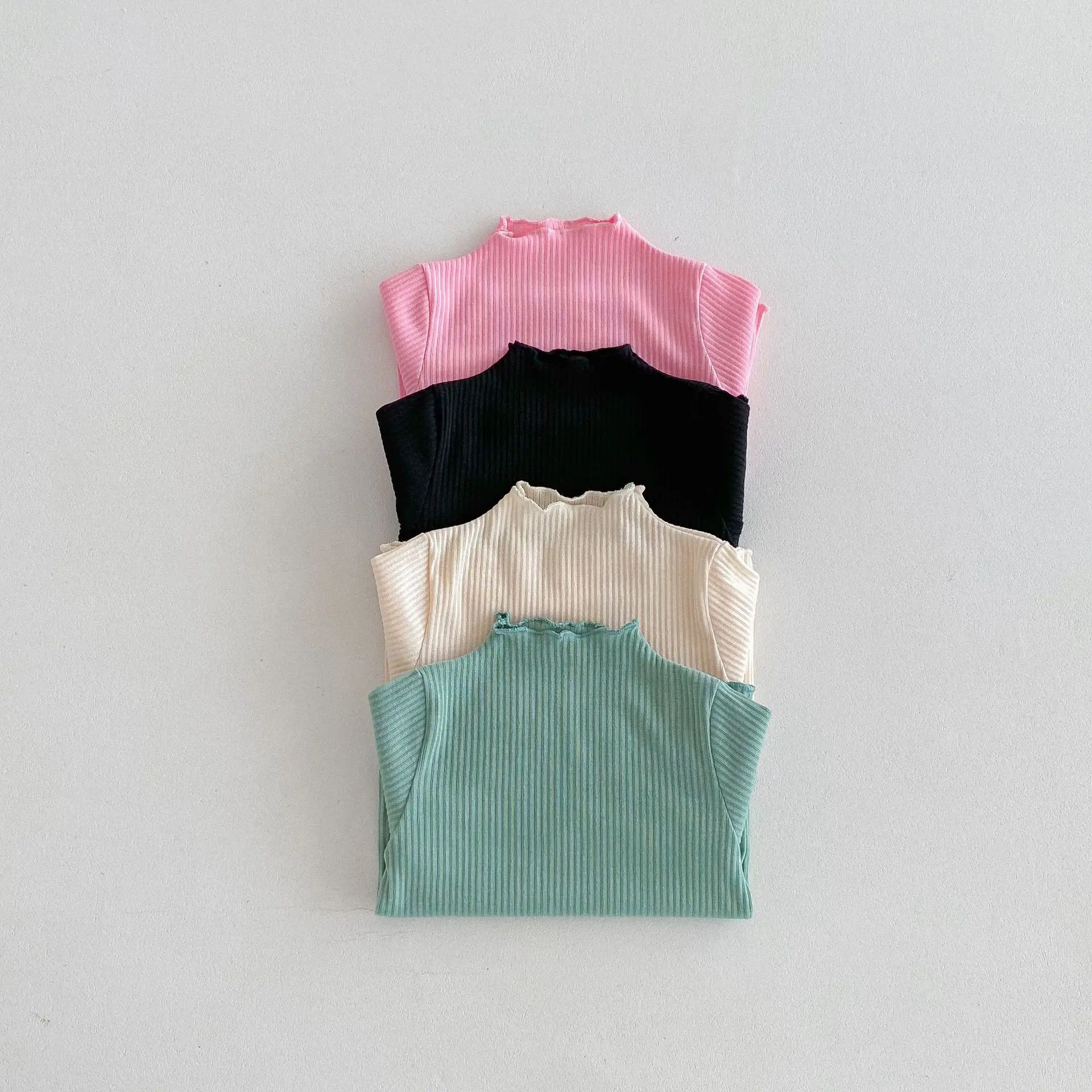 Kids Tops Frill High Neck Bottle Neck Long Sleeve T-Shirt Simple Basic 4 Colors [mh0006378]