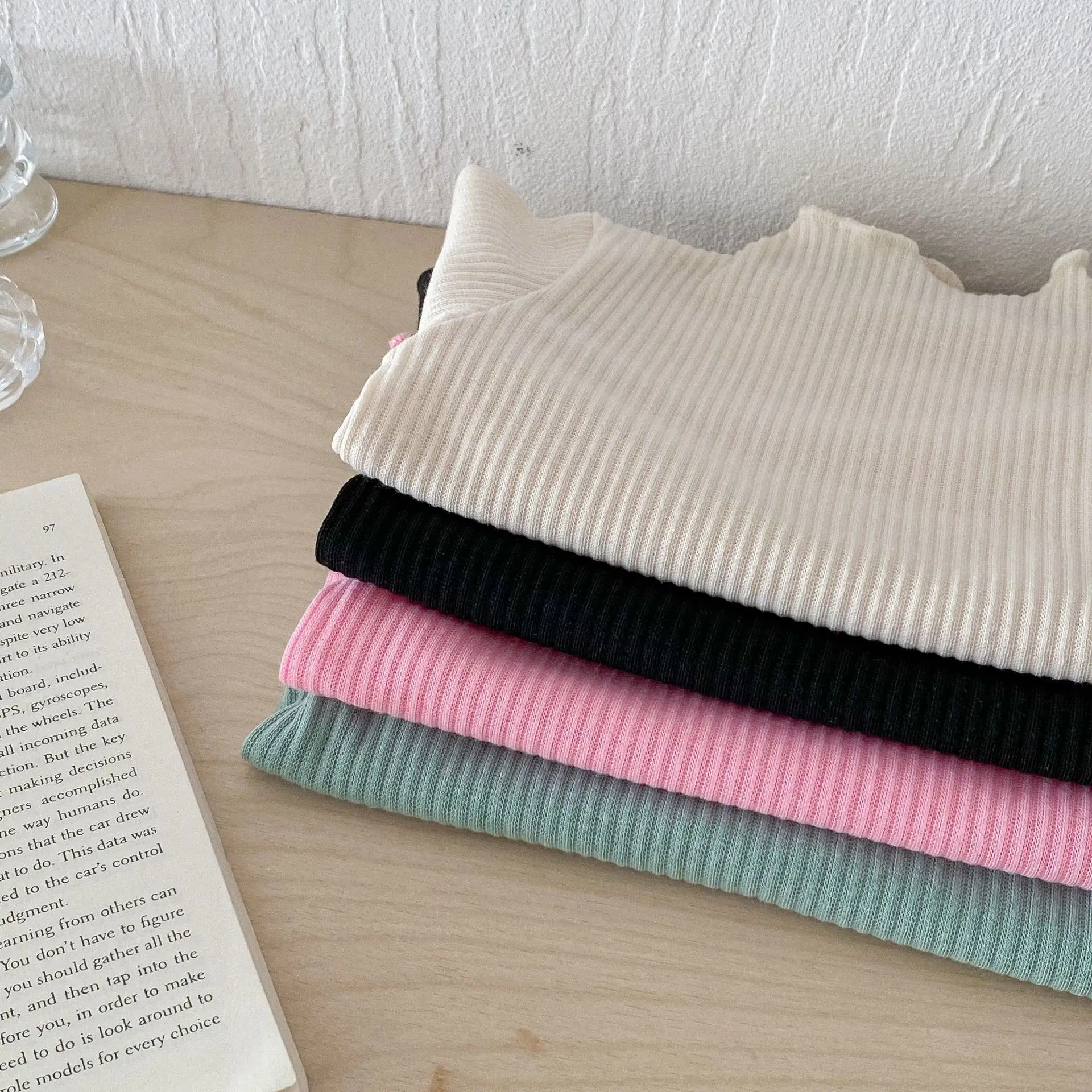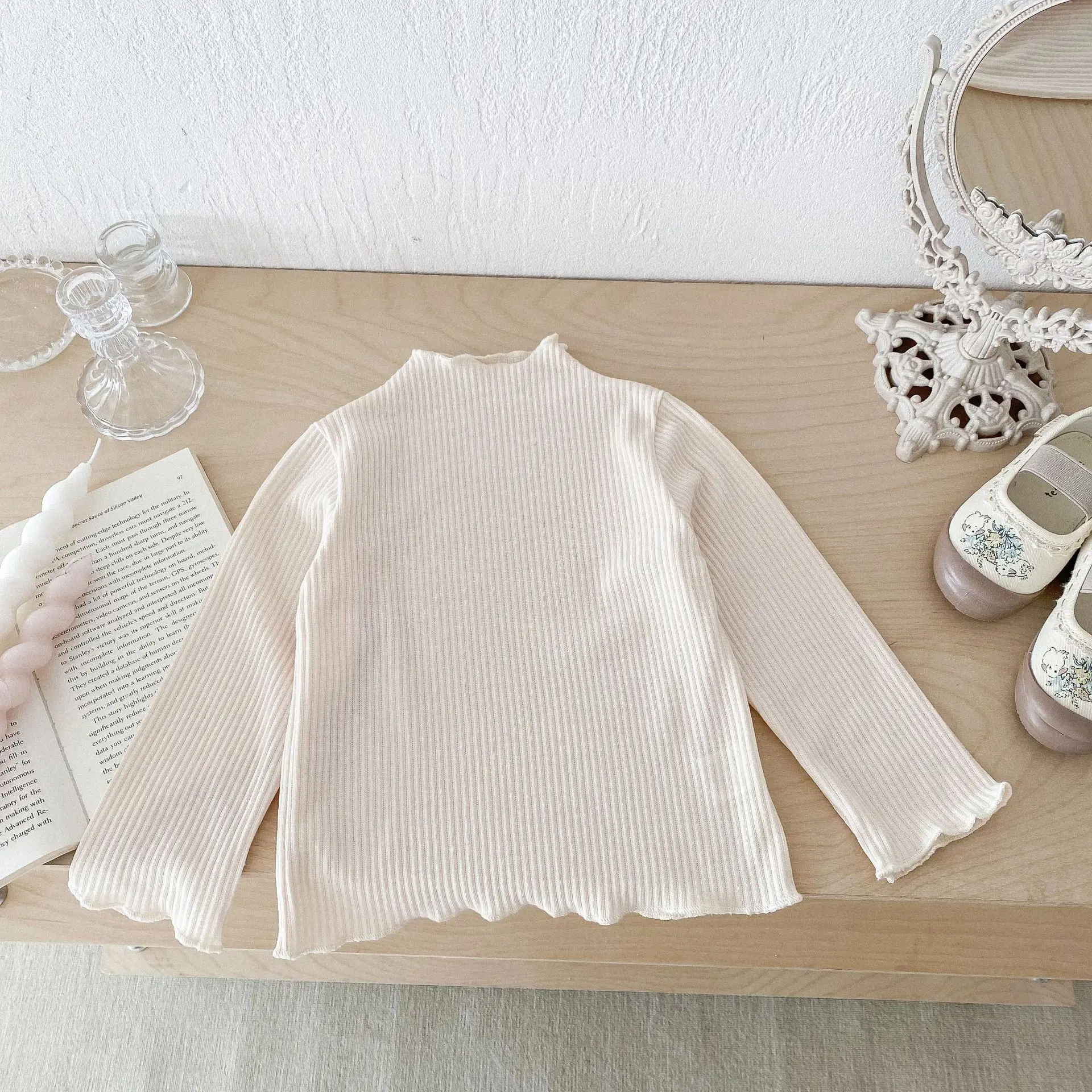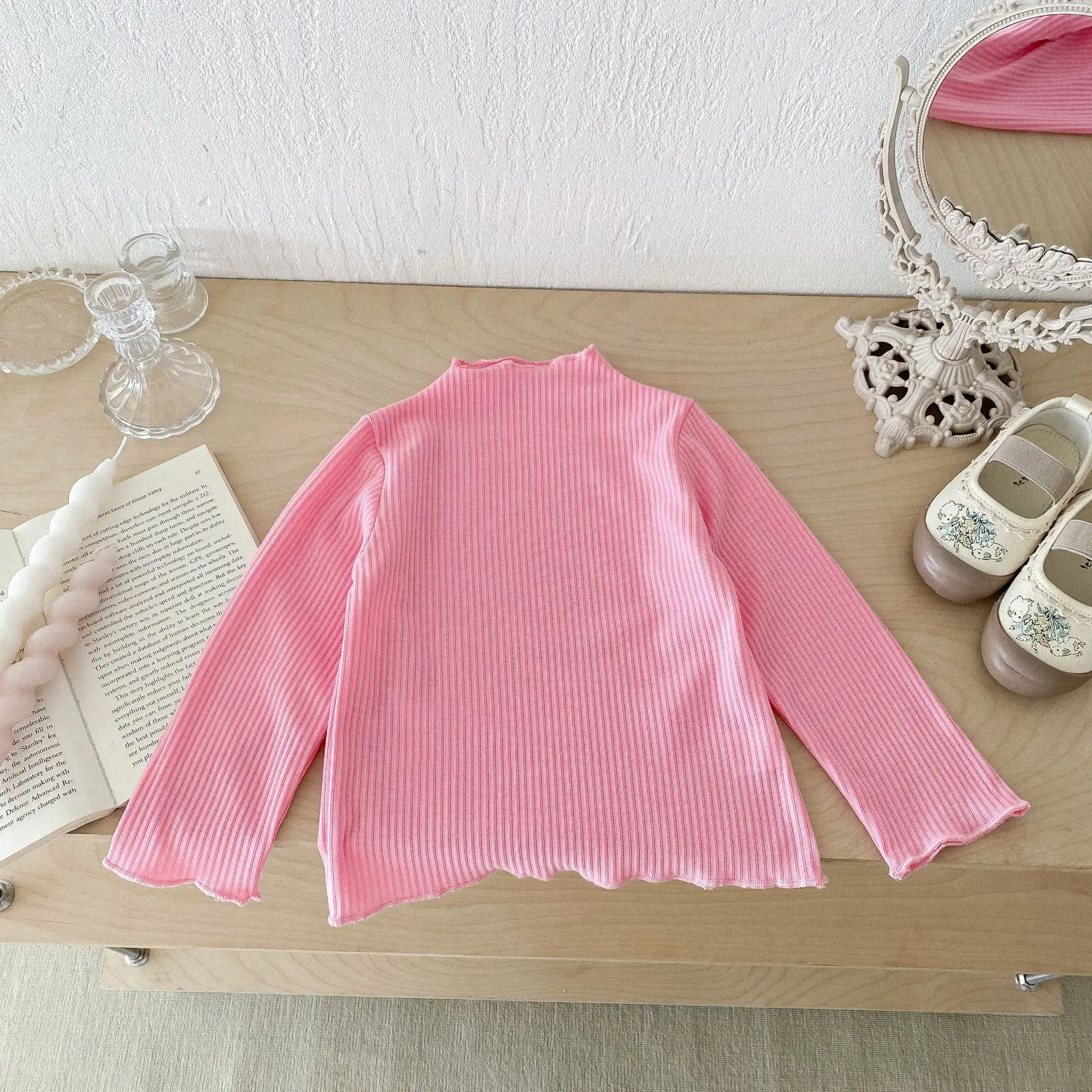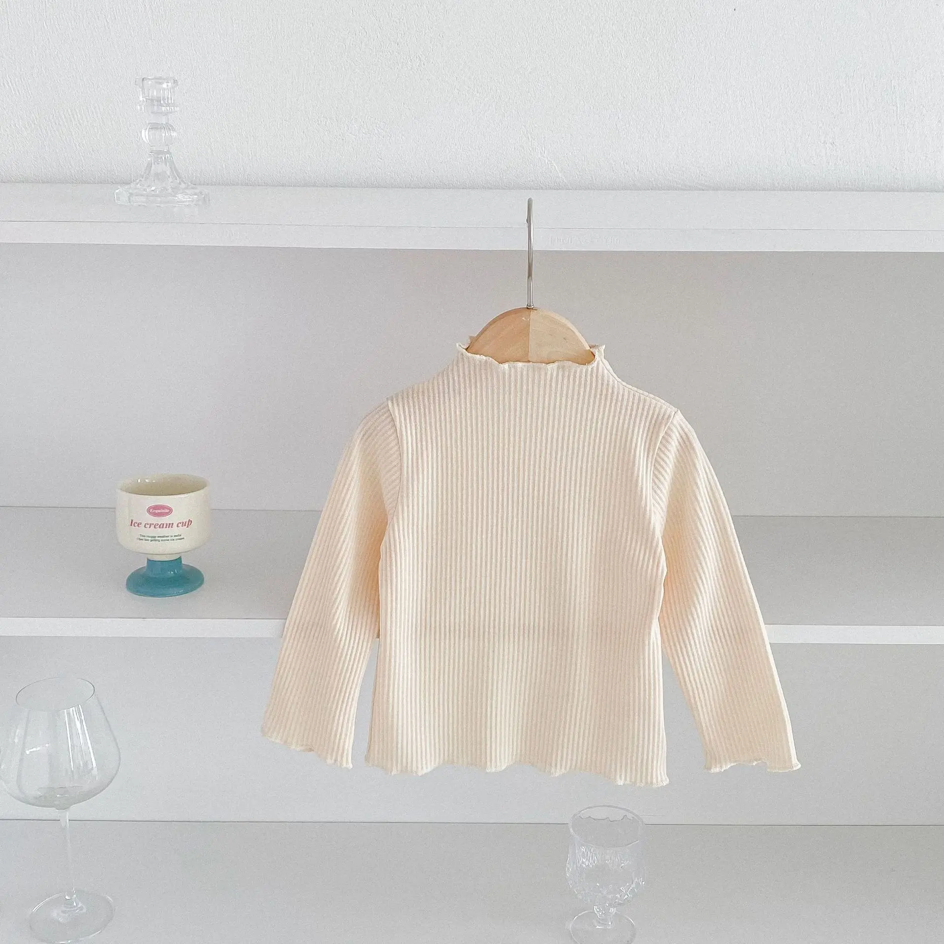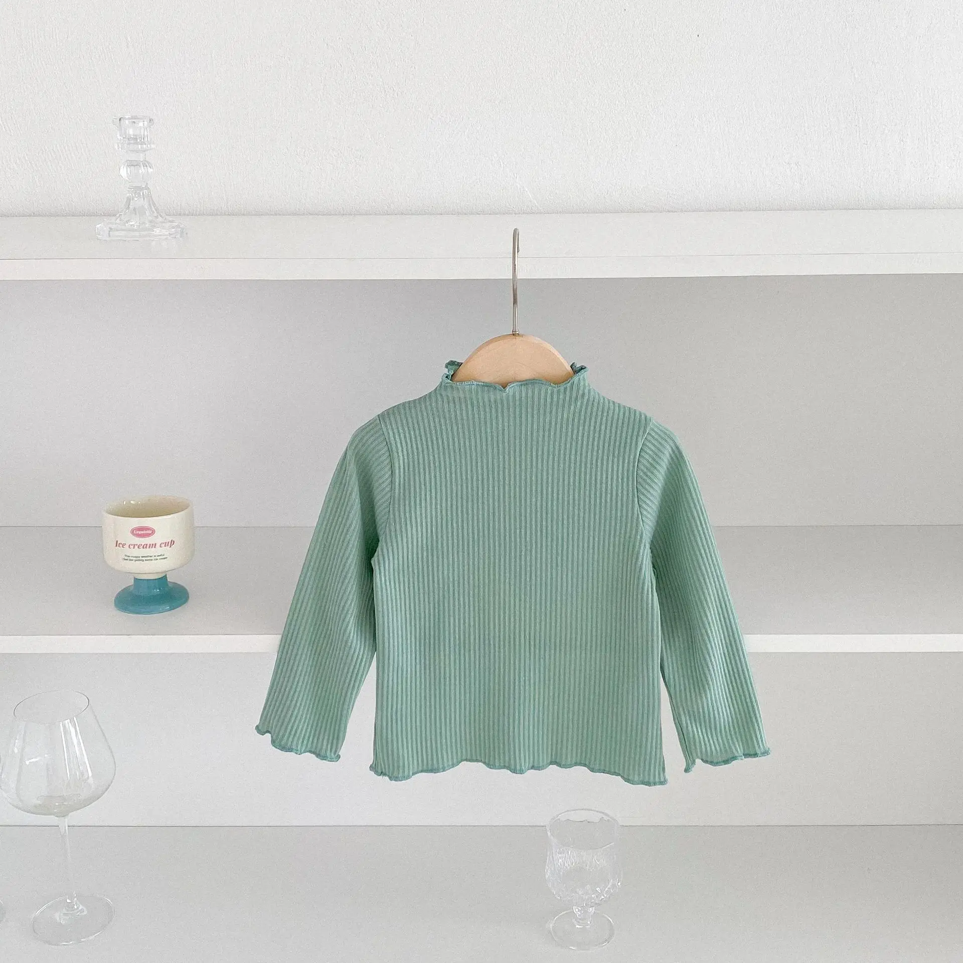 Kids Tops Frill High Neck Bottle Neck Long Sleeve T-Shirt Simple Basic 4 Colors [mh0006378]