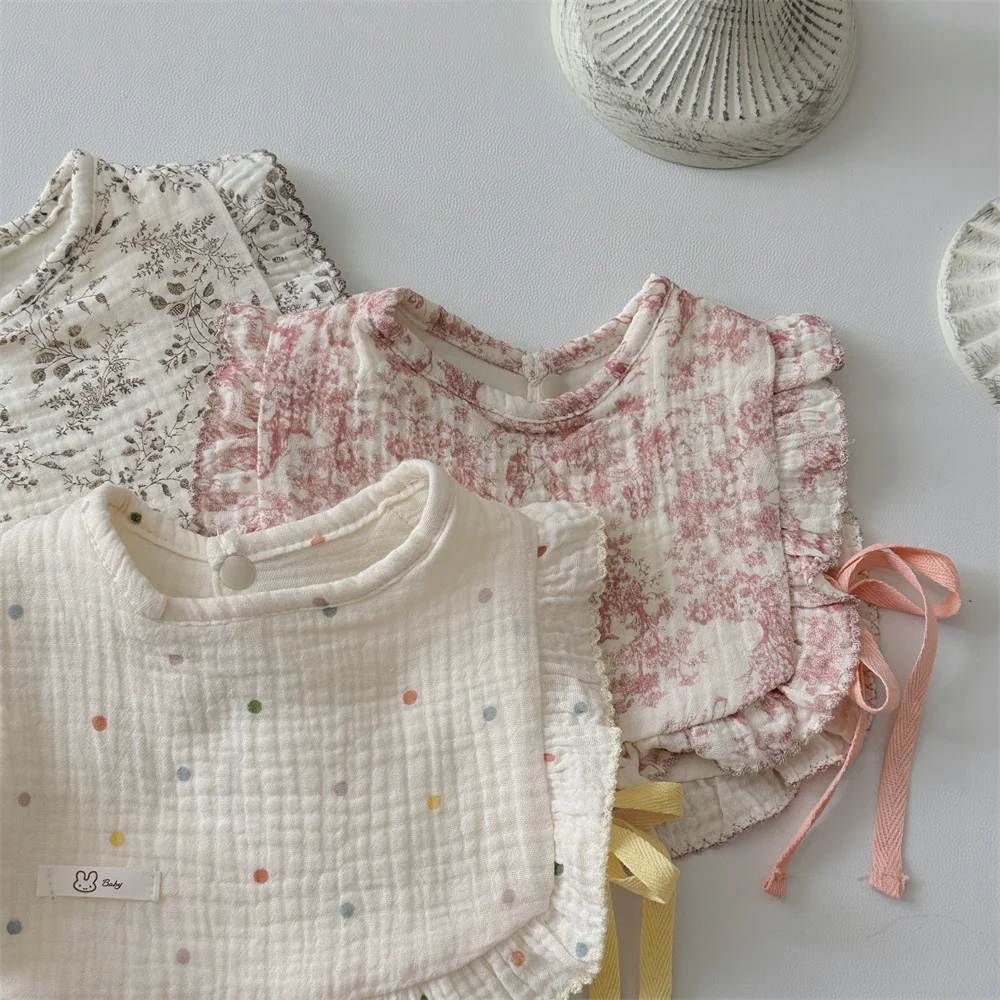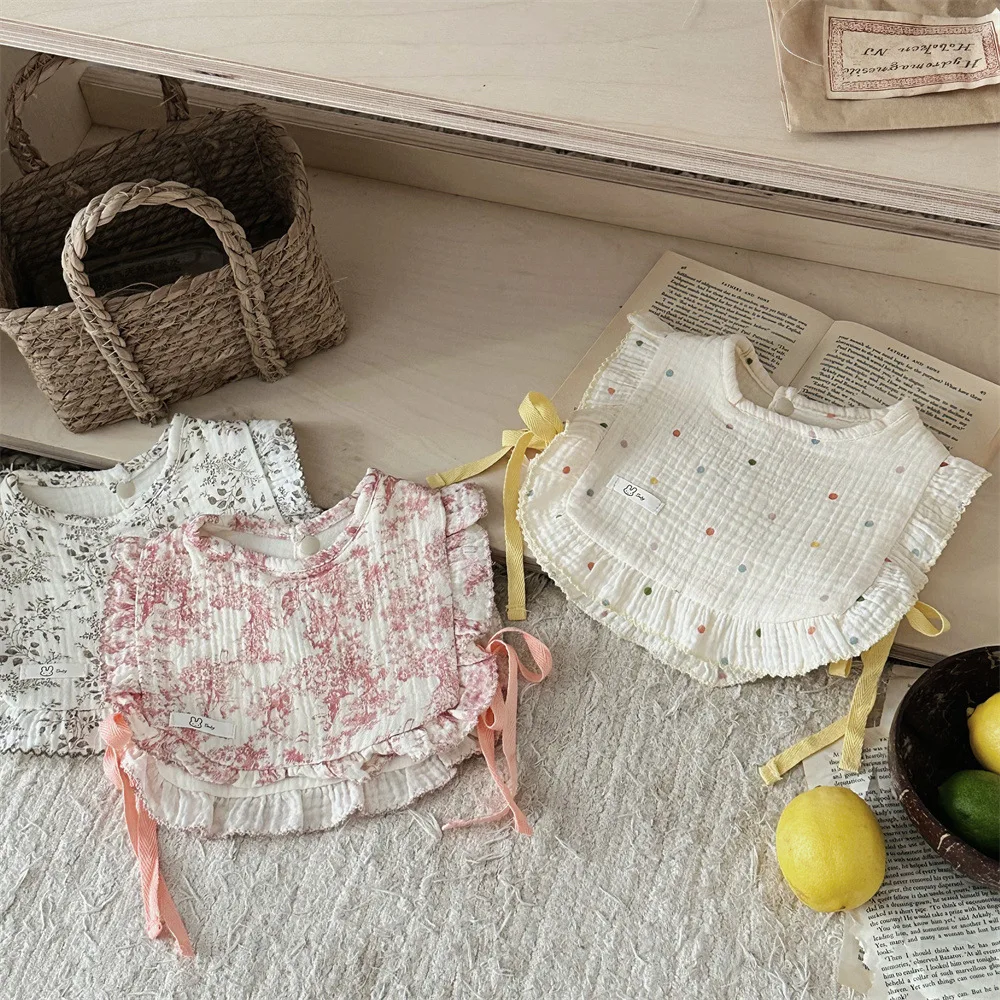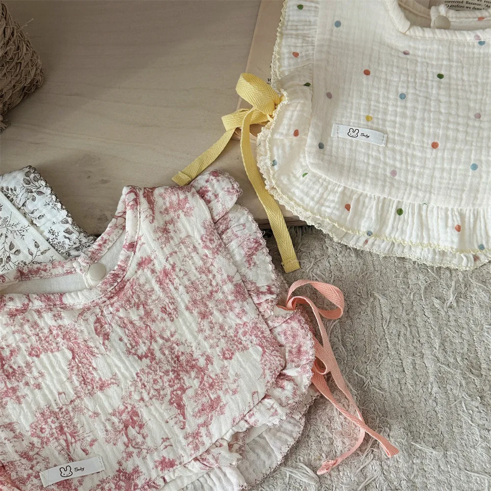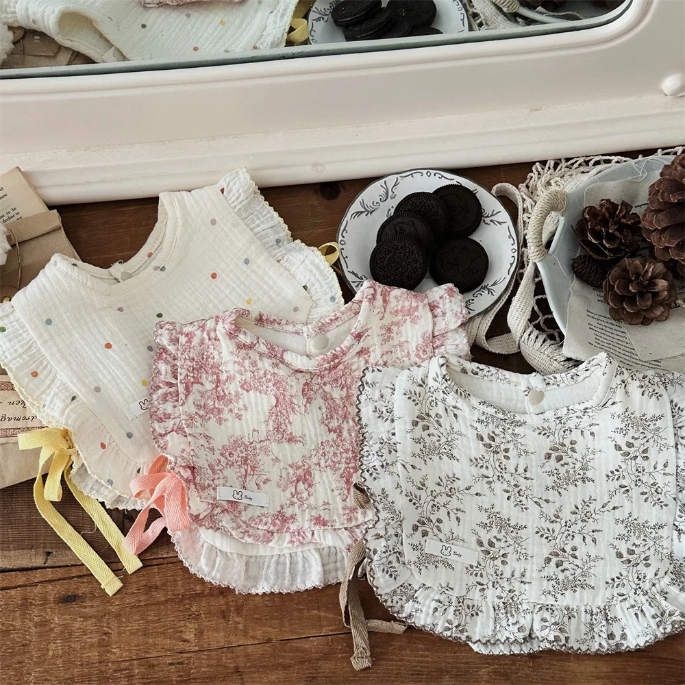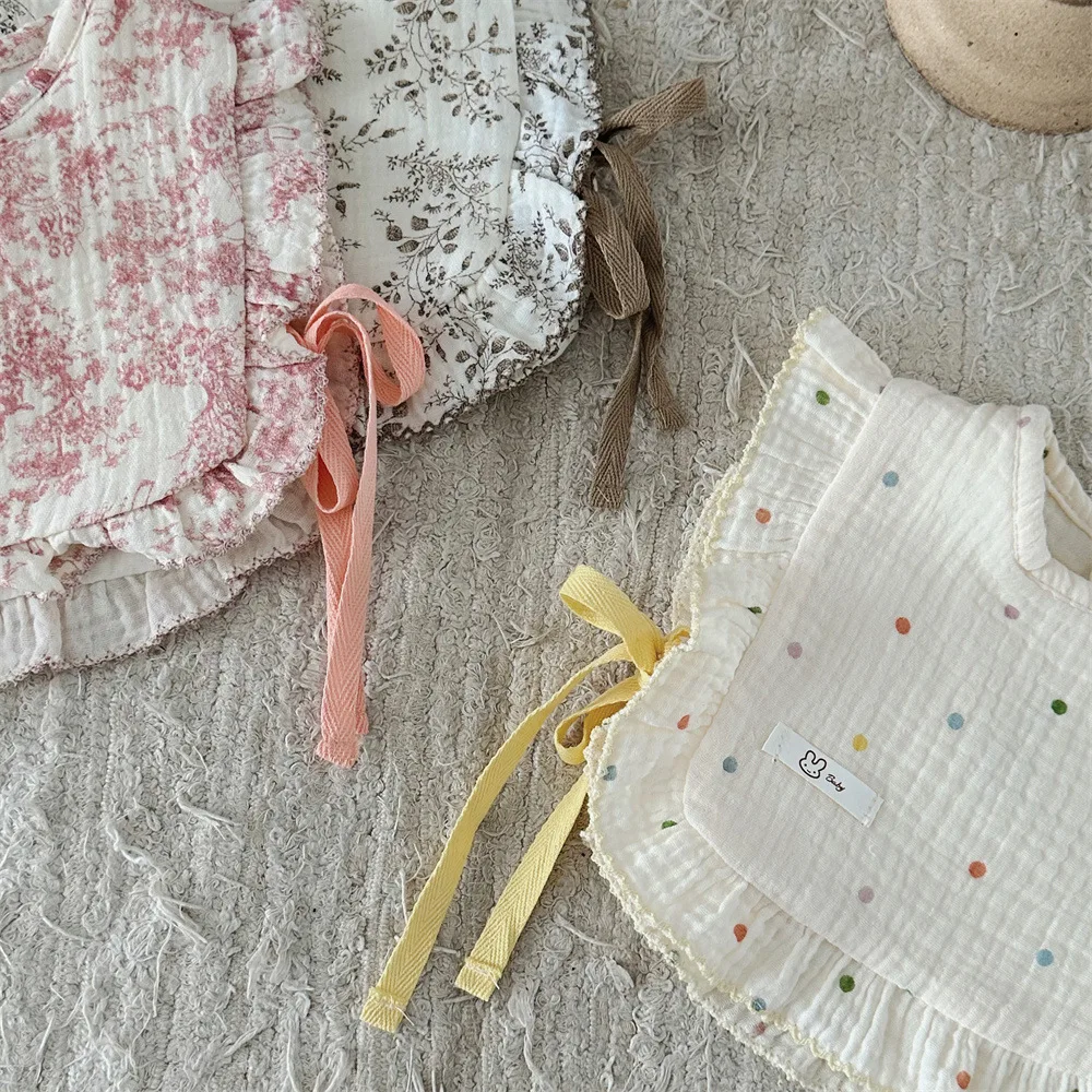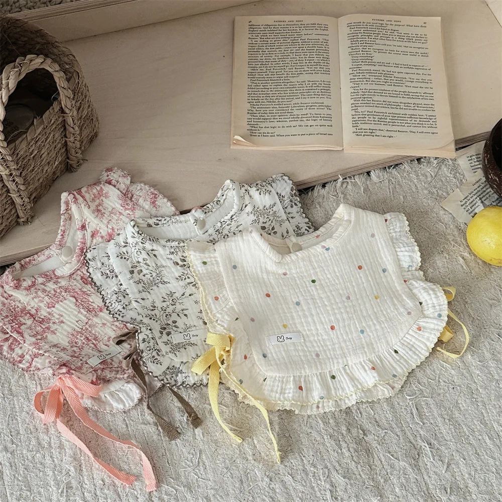 This baby bib vest features cute designs such as stylish frills, ribbons, floral patterns and polka dots. Not only can it be used as a bib or apron for your baby, but the soft cotton material gently protects your baby's skin. It is a luxurious baby item that can be used from newborns to toddlers.