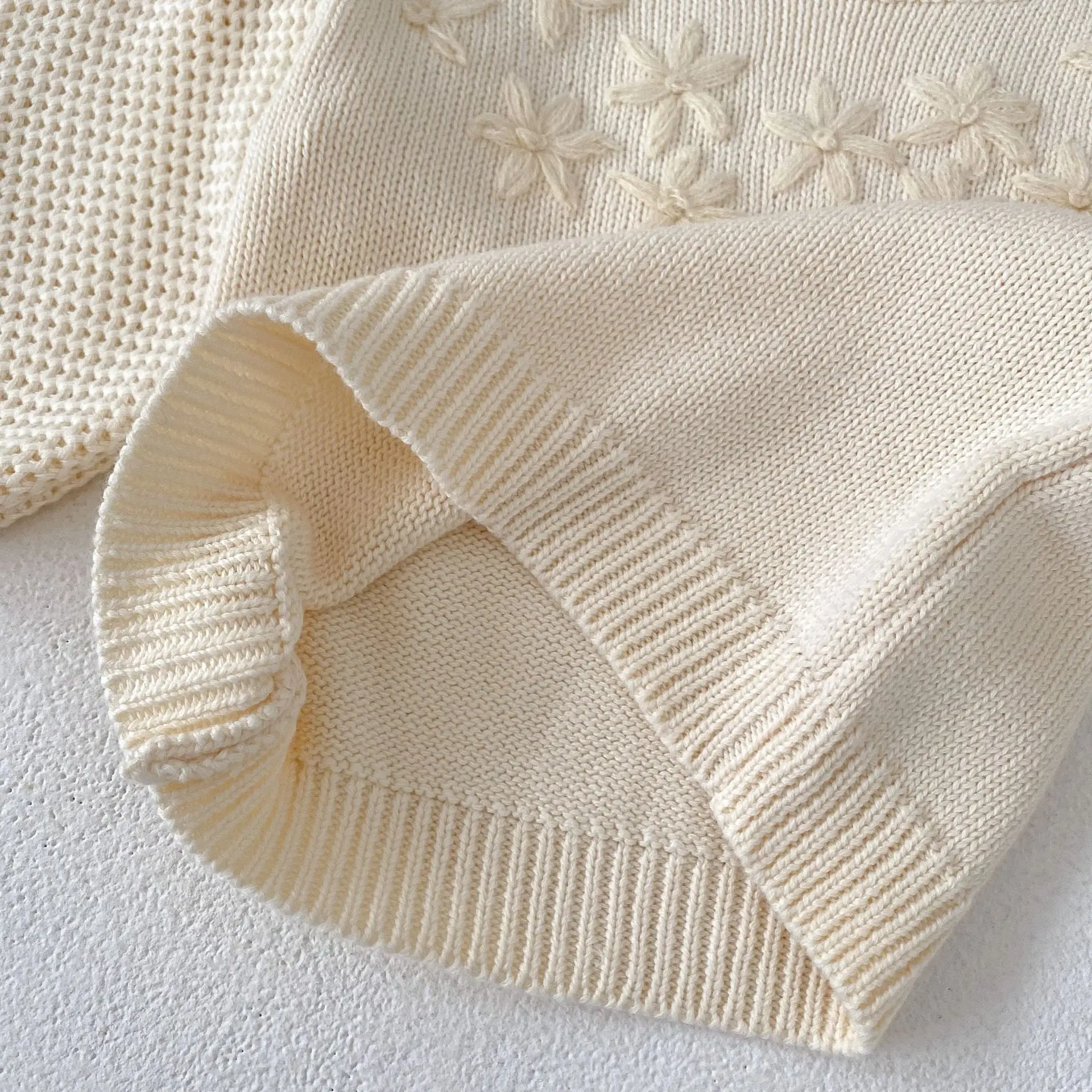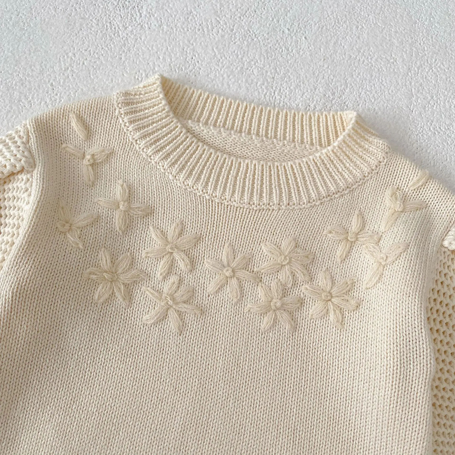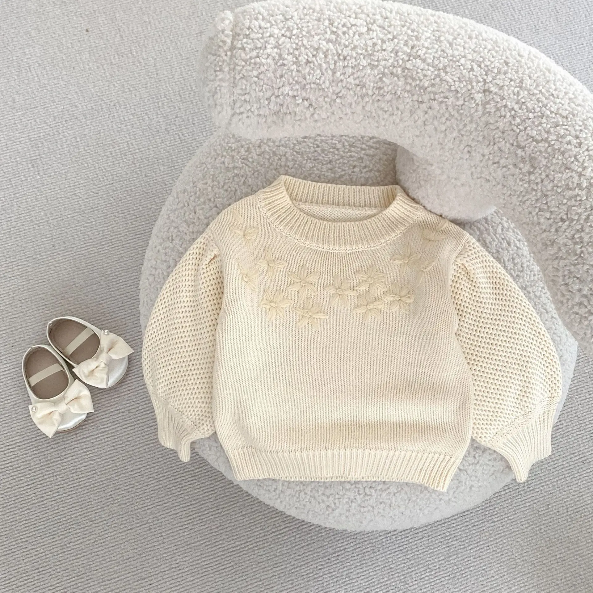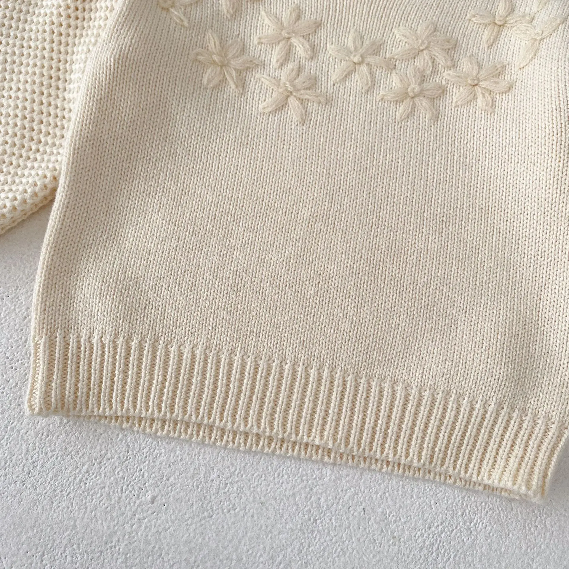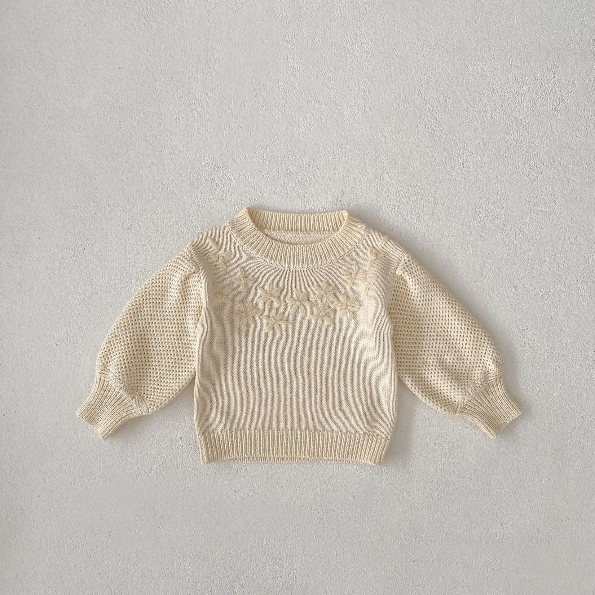 Baby top knit sweater with flower embroidery in apricot white [mh0006410]
