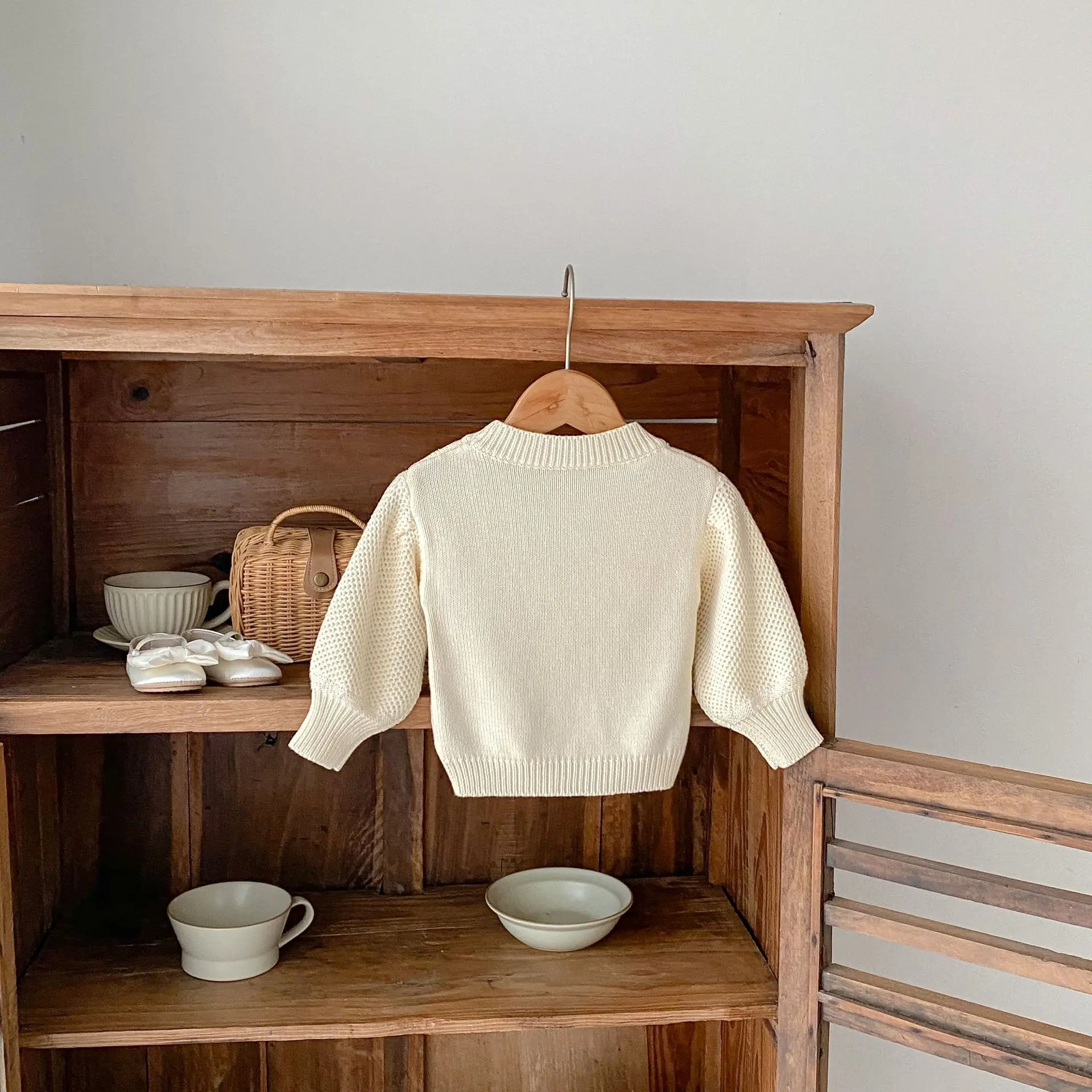This baby top is perfect for this fall. The soft knit fabric gently wraps around your baby's skin. The flower embroidery gives an elegant impression and provides warmth. The gentle apricot white color is perfect for fall fashion.
