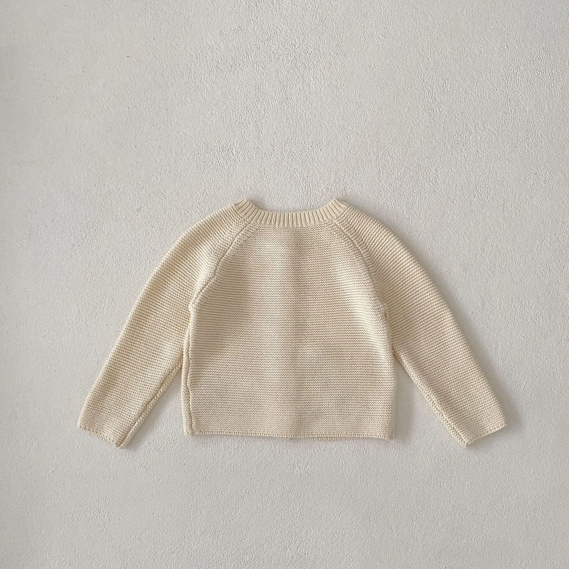 A baby cardigan with cute animal embroidery that gives off a luxurious presence. The soft apricot white color is attractive and can be worn by both boys and girls. The soft cotton material provides a comfortable fit. It is a perfect piece for autumn outfits.