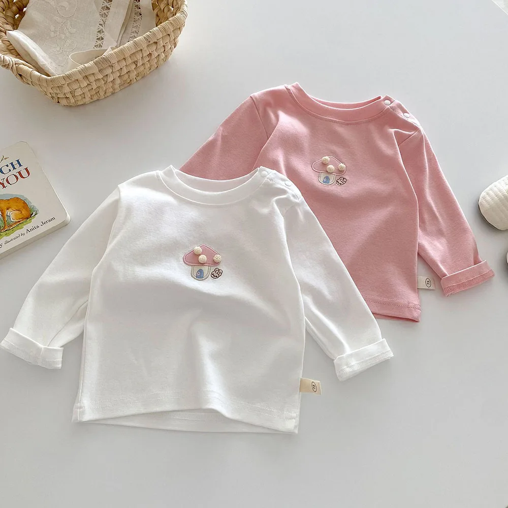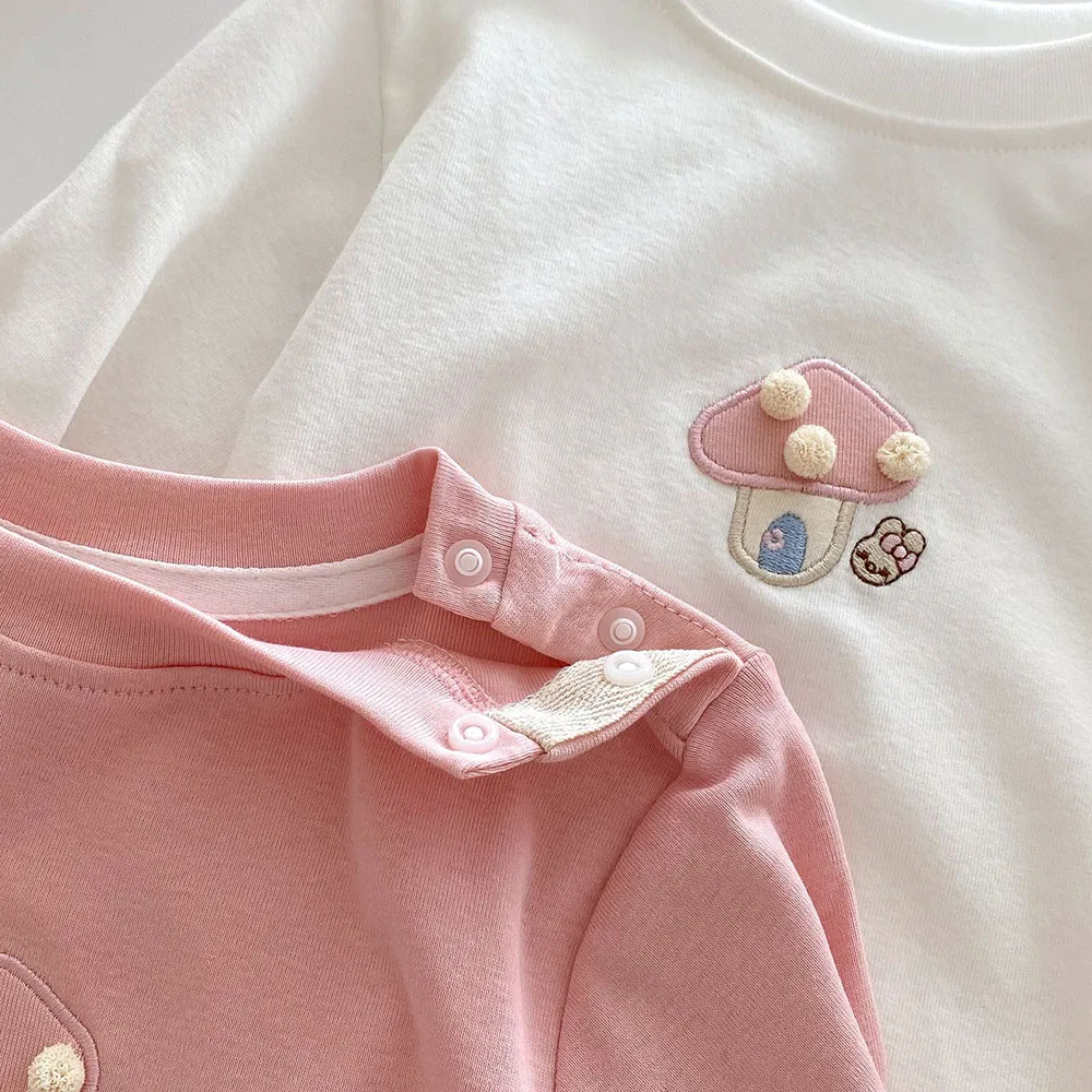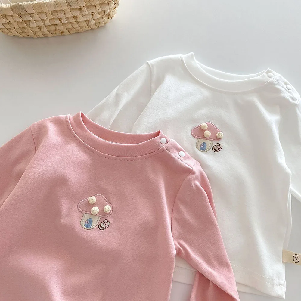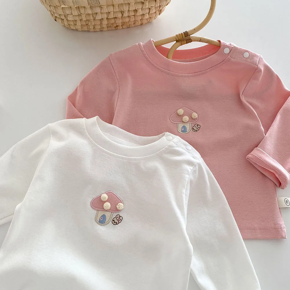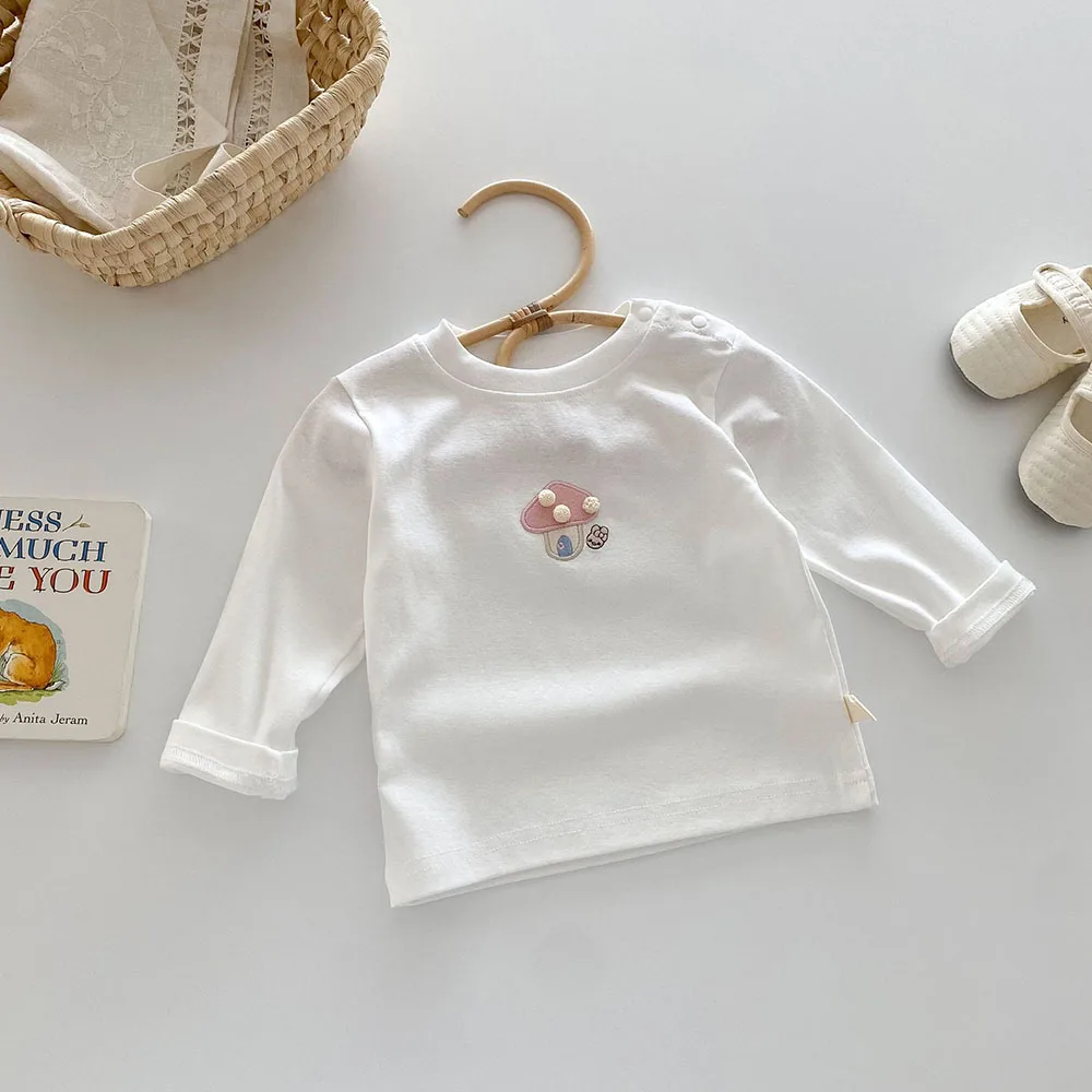 Baby/Kids Tops Long Sleeve T-Shirt with Mushroom Embroidery, 2 Colors [mh0006467]