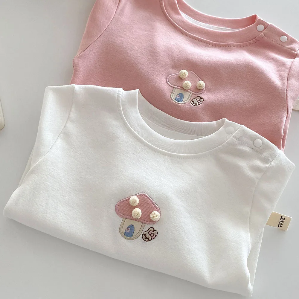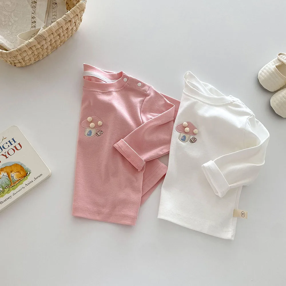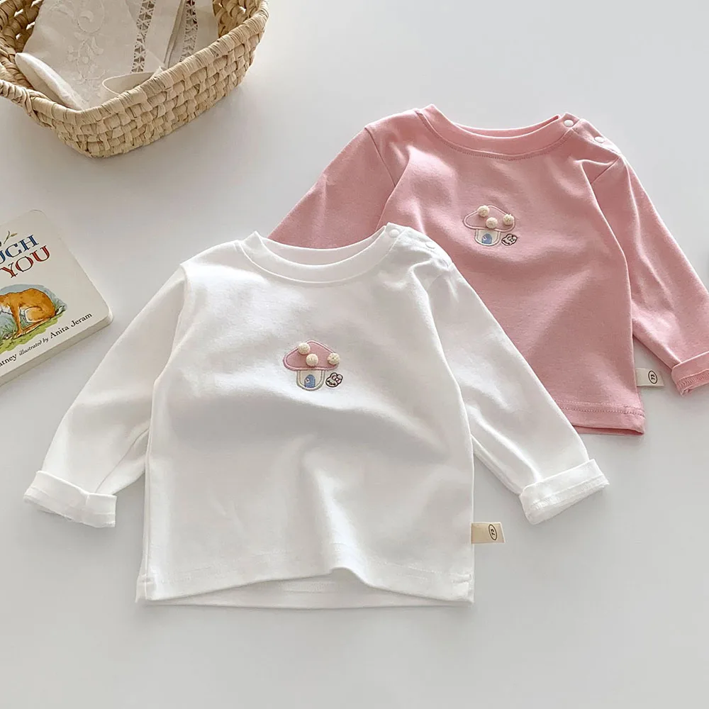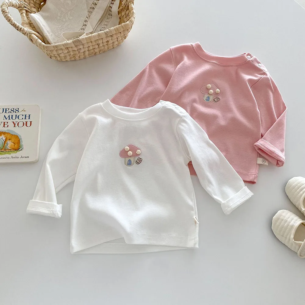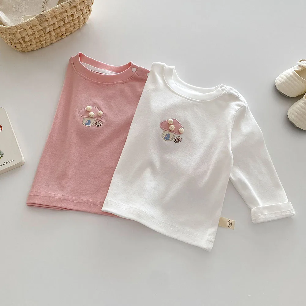 Baby/Kids Tops Long Sleeve T-Shirt with Mushroom Embroidery, 2 Colors [mh0006467]