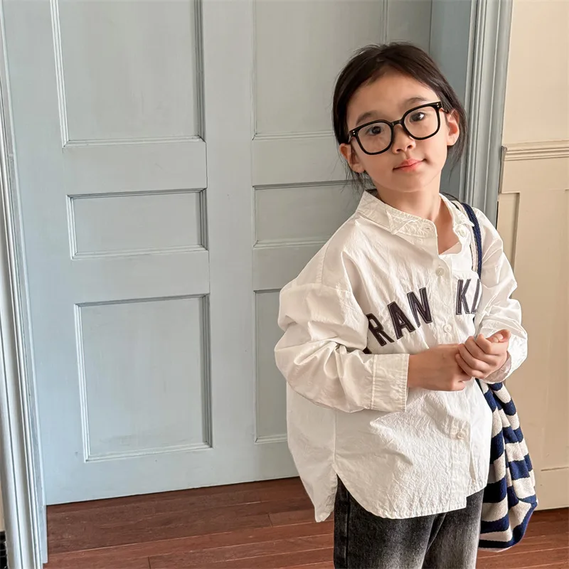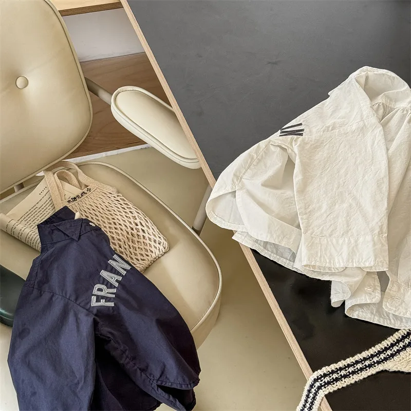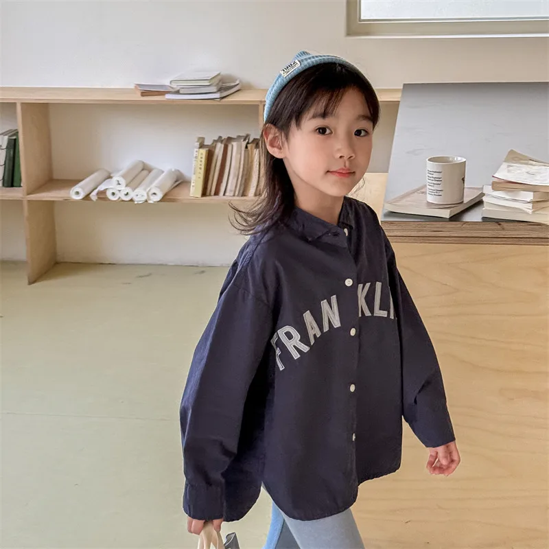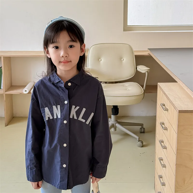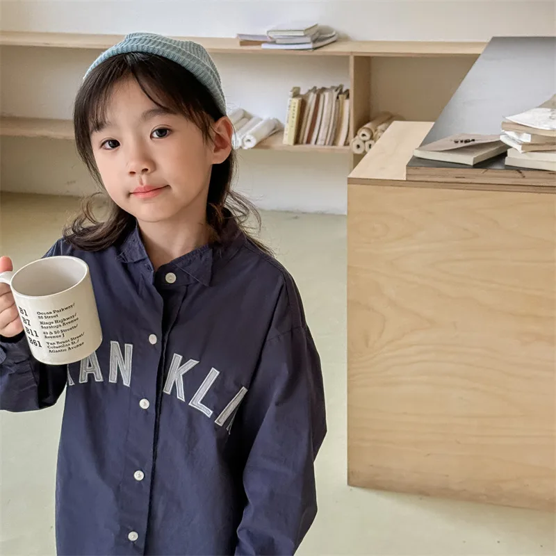 This long-sleeved overshirt with eye-catching letter logo embroidery is the perfect item for kids' casual fashion. The loose silhouette provides ease of movement and a relaxed feel, making it suitable for a wide range of occasions, from daily wear to going out. Made of cotton, it is soft and comfortable to wear. The simple yet sophisticated design is accented with embroidery on the back, creating a stylish back view. It is easy to put on and take off with buttons, making it a versatile piece that can also be used as a light outerwear. Available in two colors, both boys and girls can enjoy coordinating their own style. Incorporate it into various everyday scenes regardless of the season.