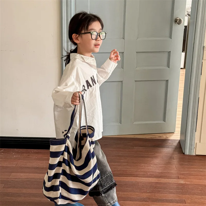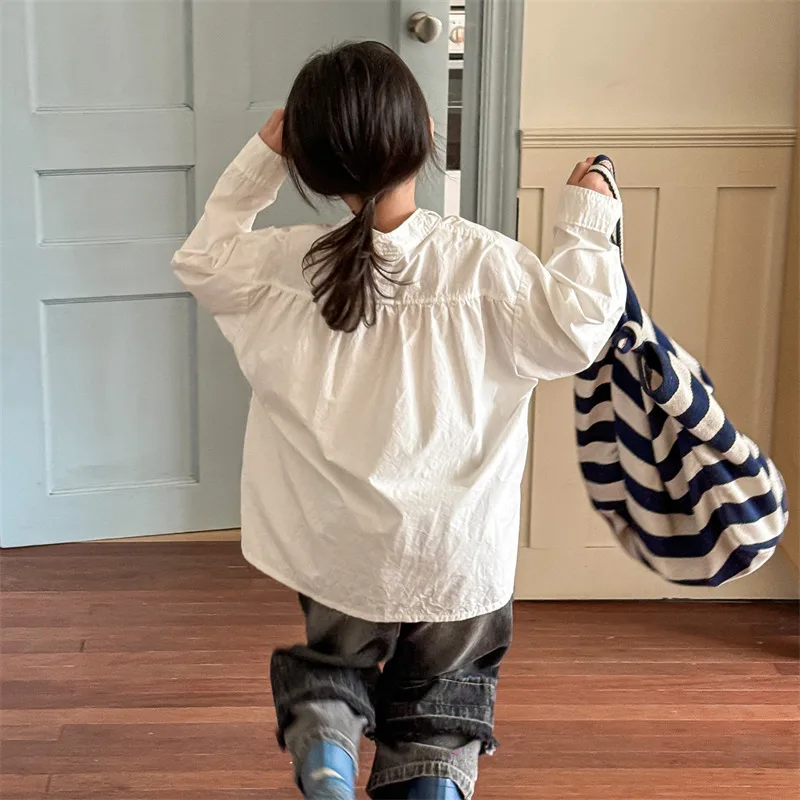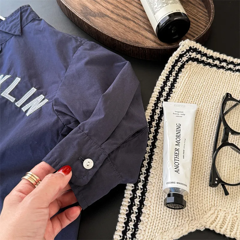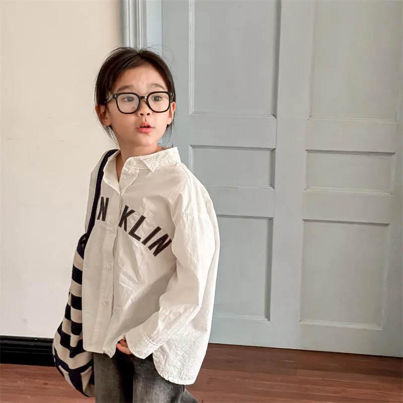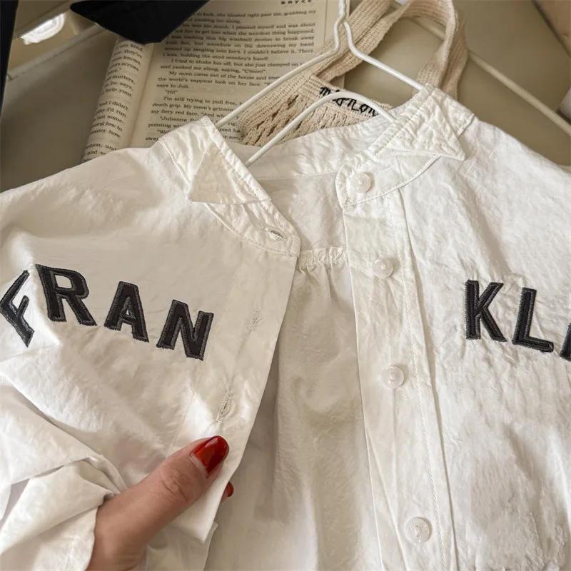This long-sleeved overshirt with eye-catching letter logo embroidery is the perfect item for kids' casual fashion. The loose silhouette provides ease of movement and a relaxed feel, making it suitable for a wide range of occasions, from daily wear to going out. Made of cotton, it is soft and comfortable to wear. The simple yet sophisticated design is accented with embroidery on the back, creating a stylish back view. It is easy to put on and take off with buttons, making it a versatile piece that can also be used as a light outerwear. Available in two colors, both boys and girls can enjoy coordinating their own style. Incorporate it into various everyday scenes regardless of the season.