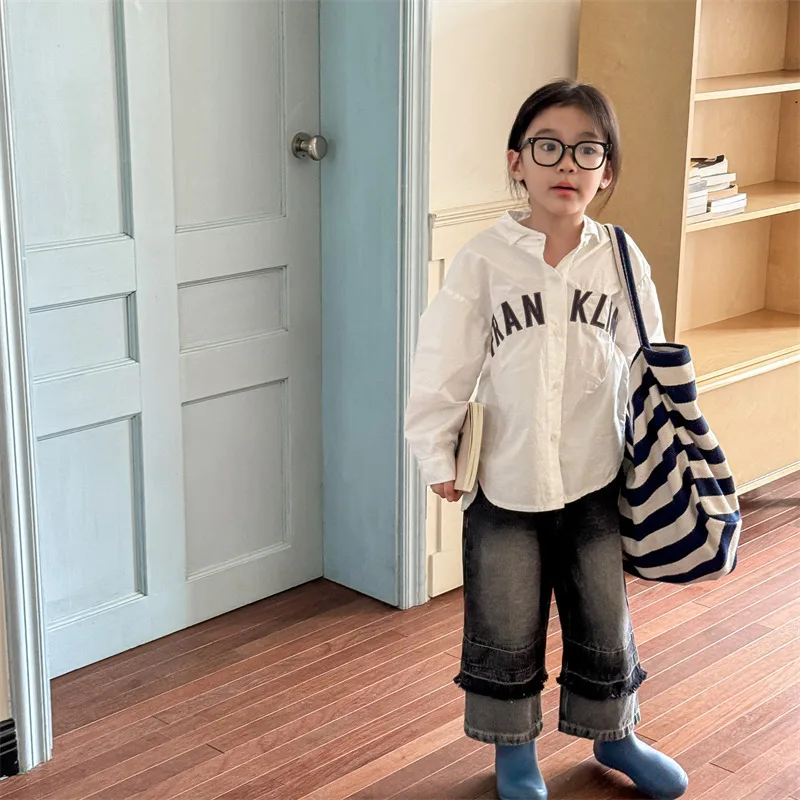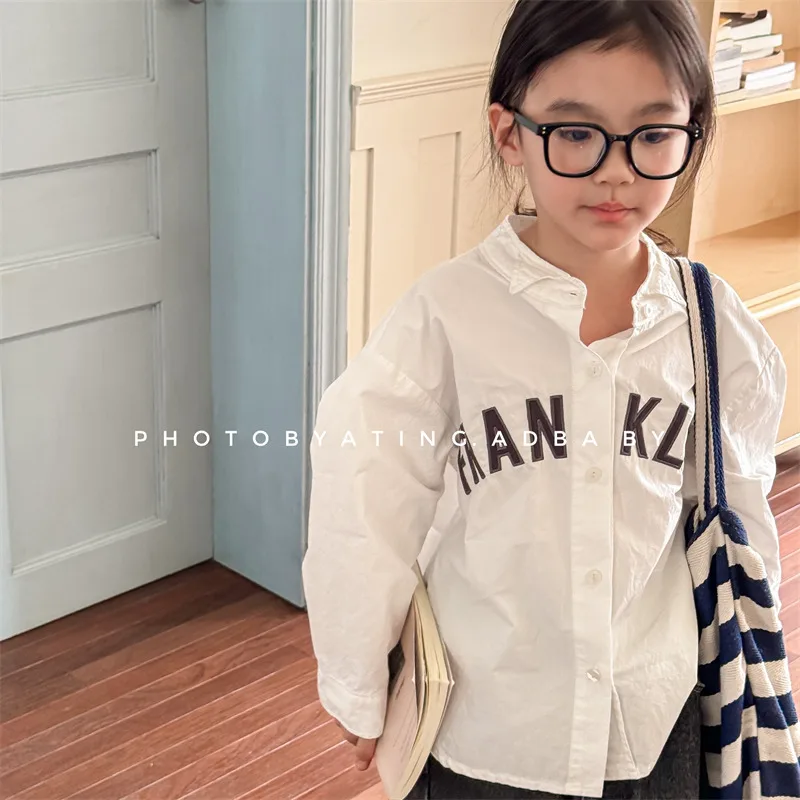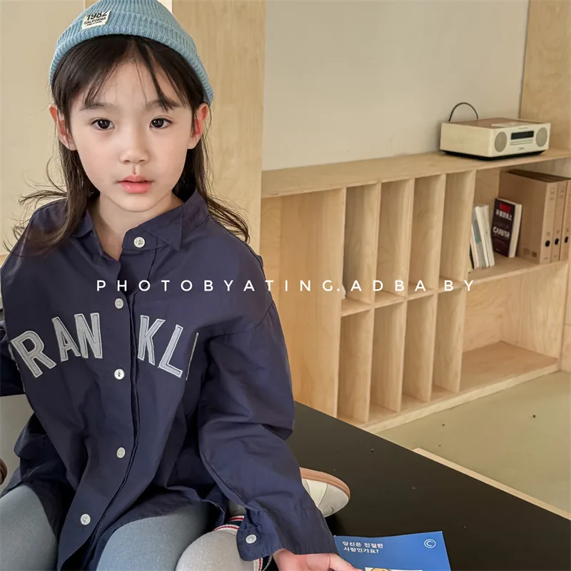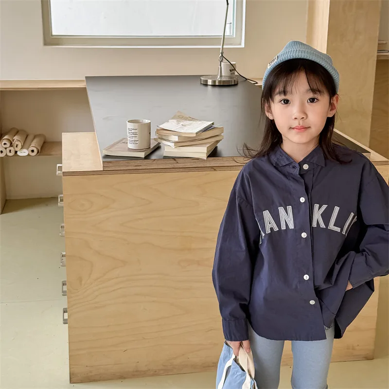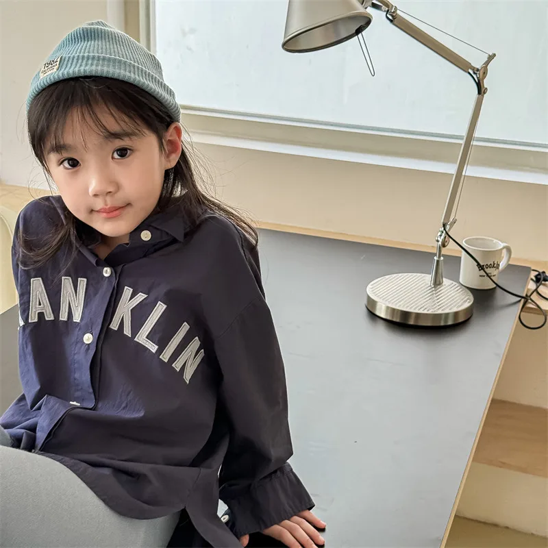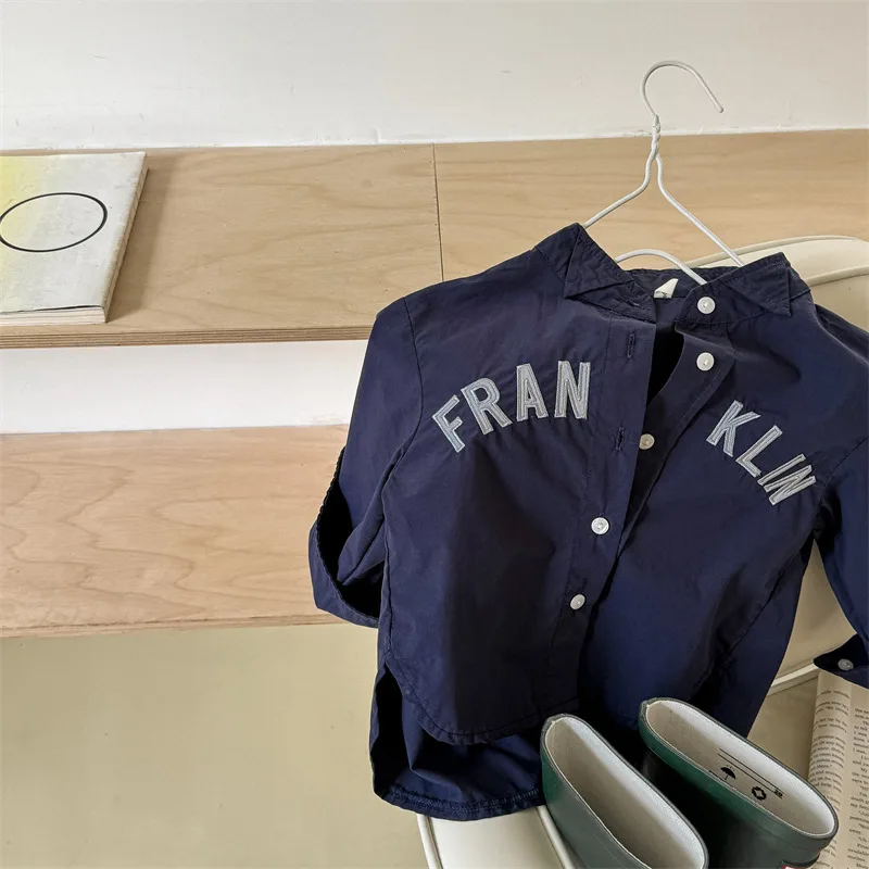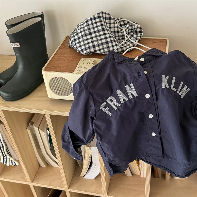 Kids' Tops Letter Logo Embroidered Long Sleeve Overshirt, 2 Colors [mh0006840]
