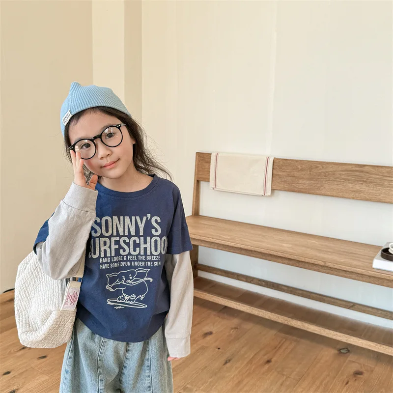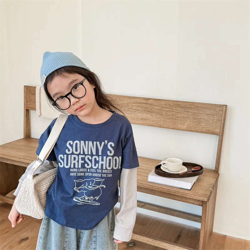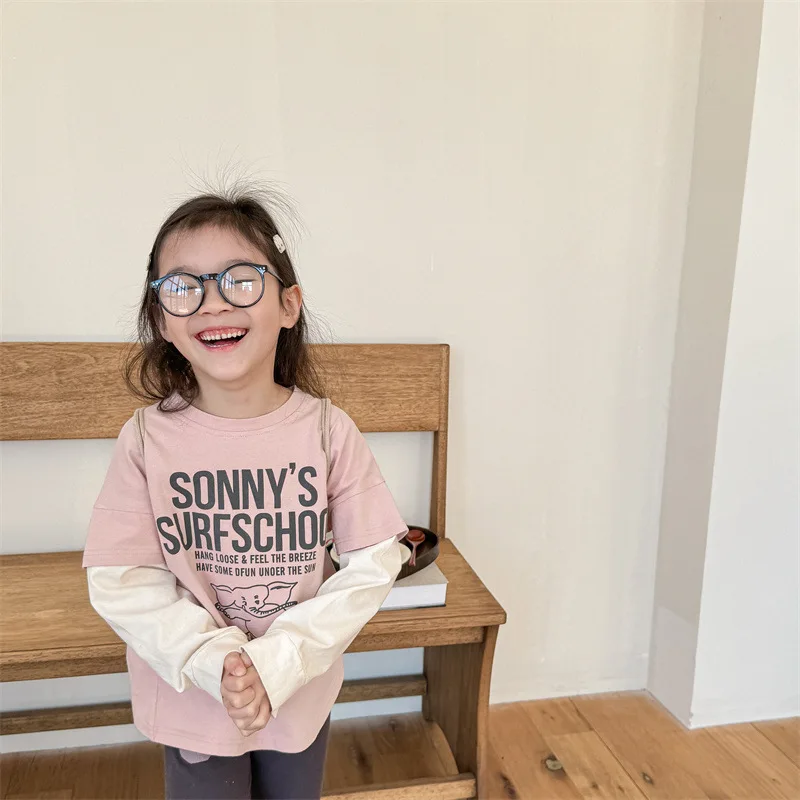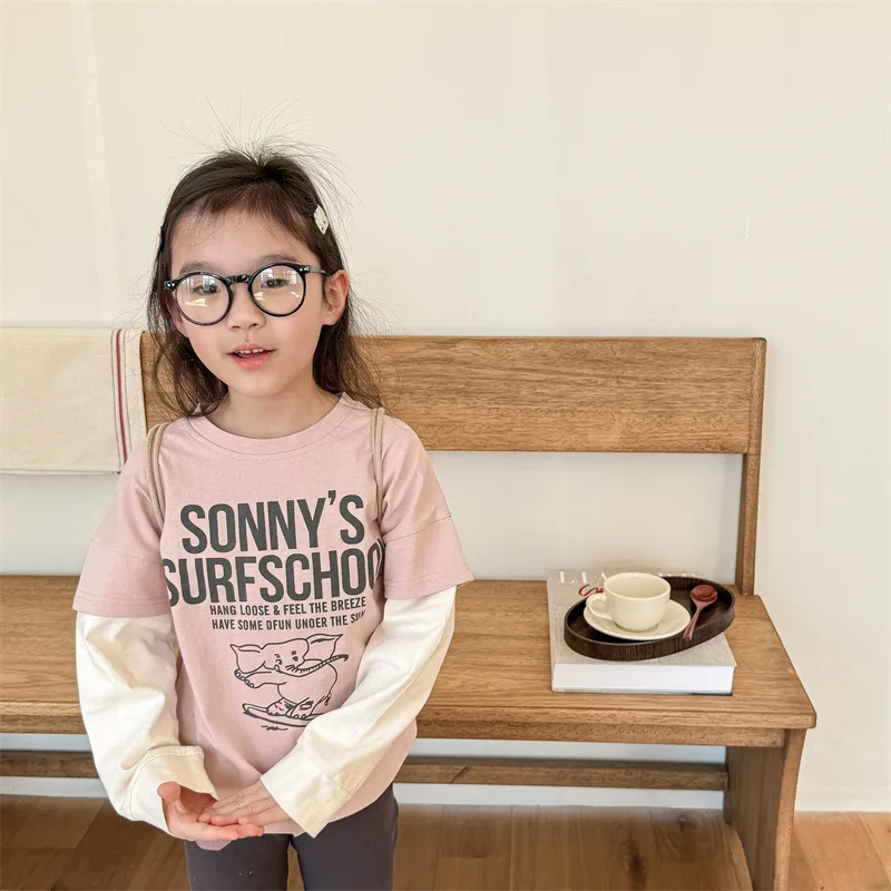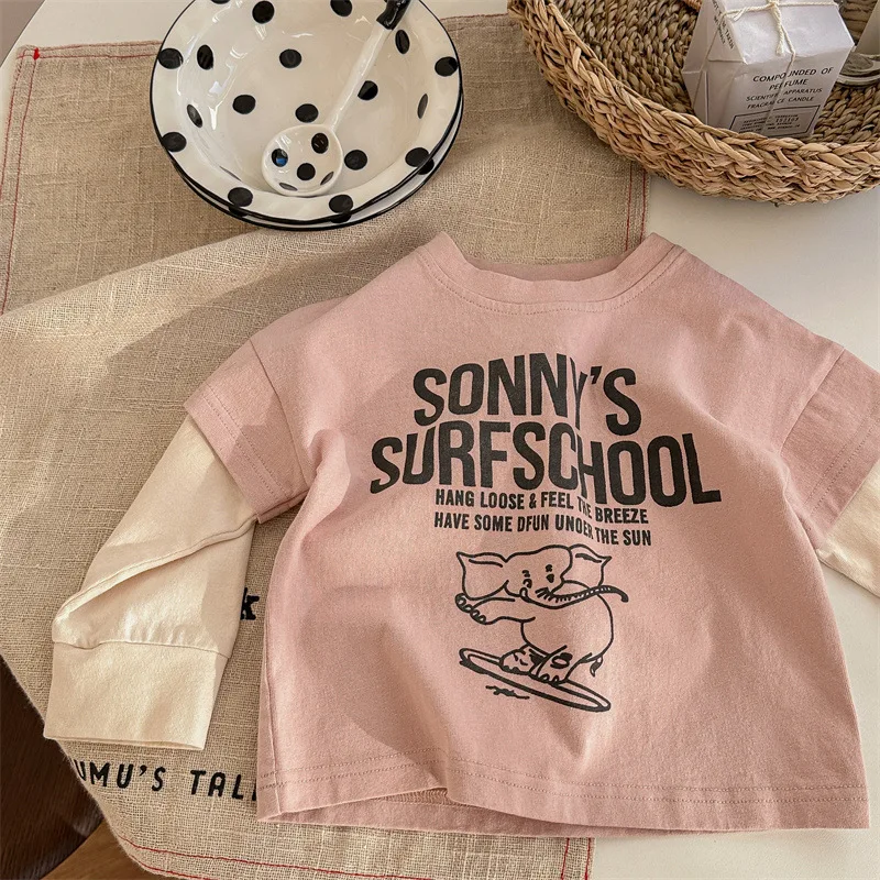 #kids tops #elephant print #patchwork #long sleeve T-shirt #casual fashion #kids clothes