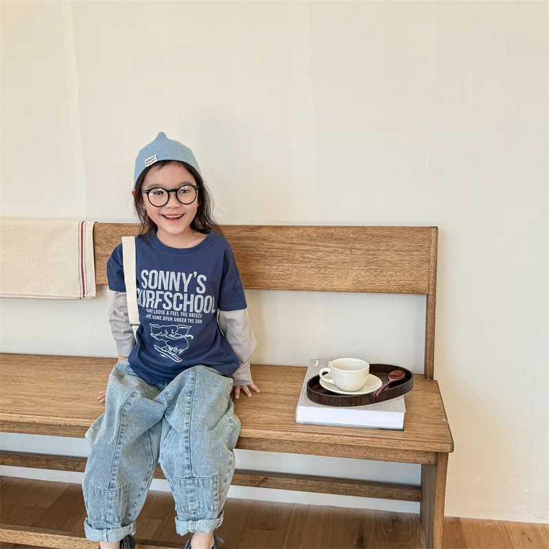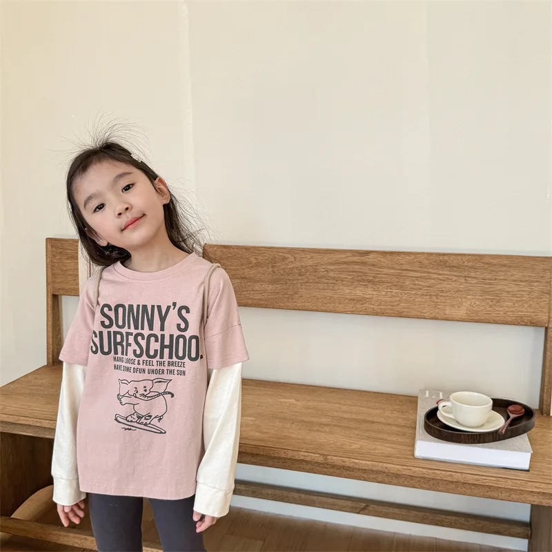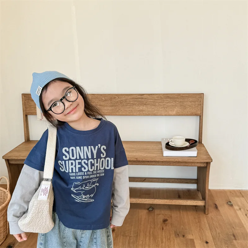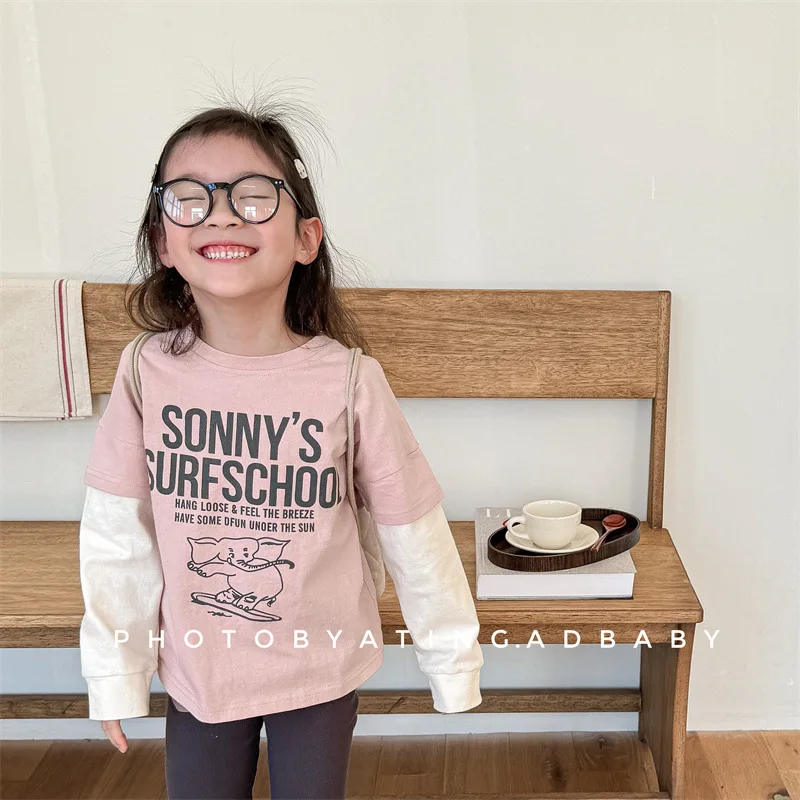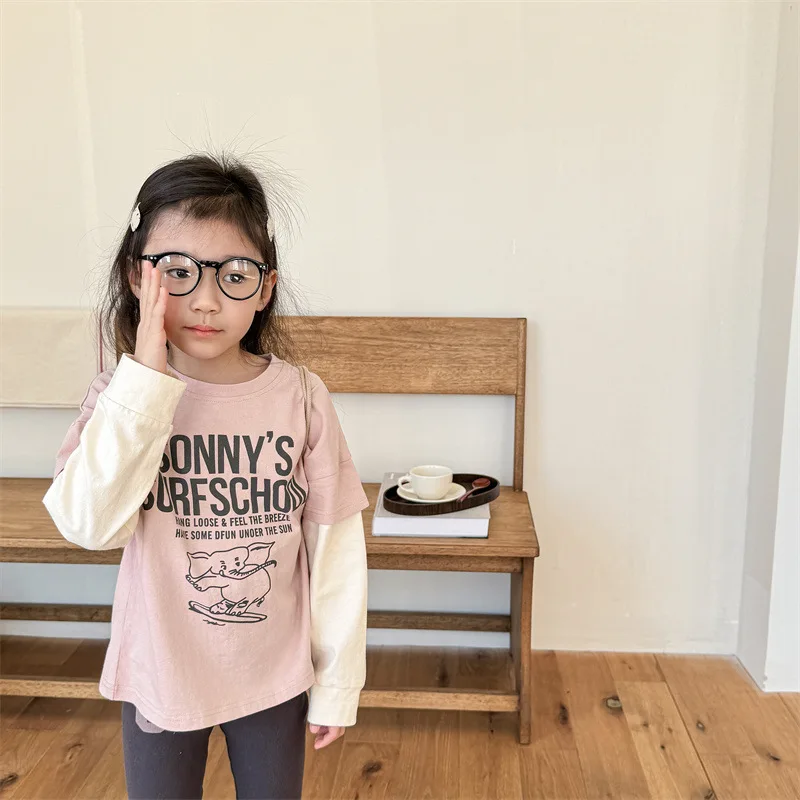 #kids tops #elephant print #patchwork #long sleeve T-shirt #casual fashion #kids clothes