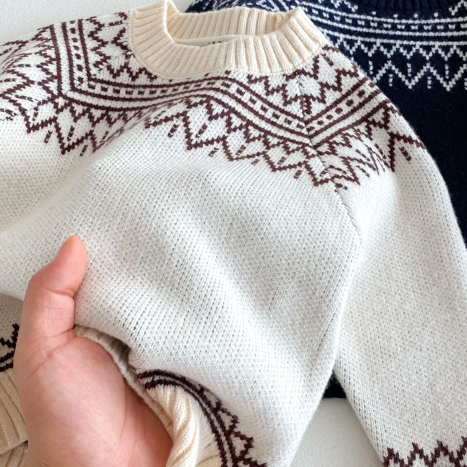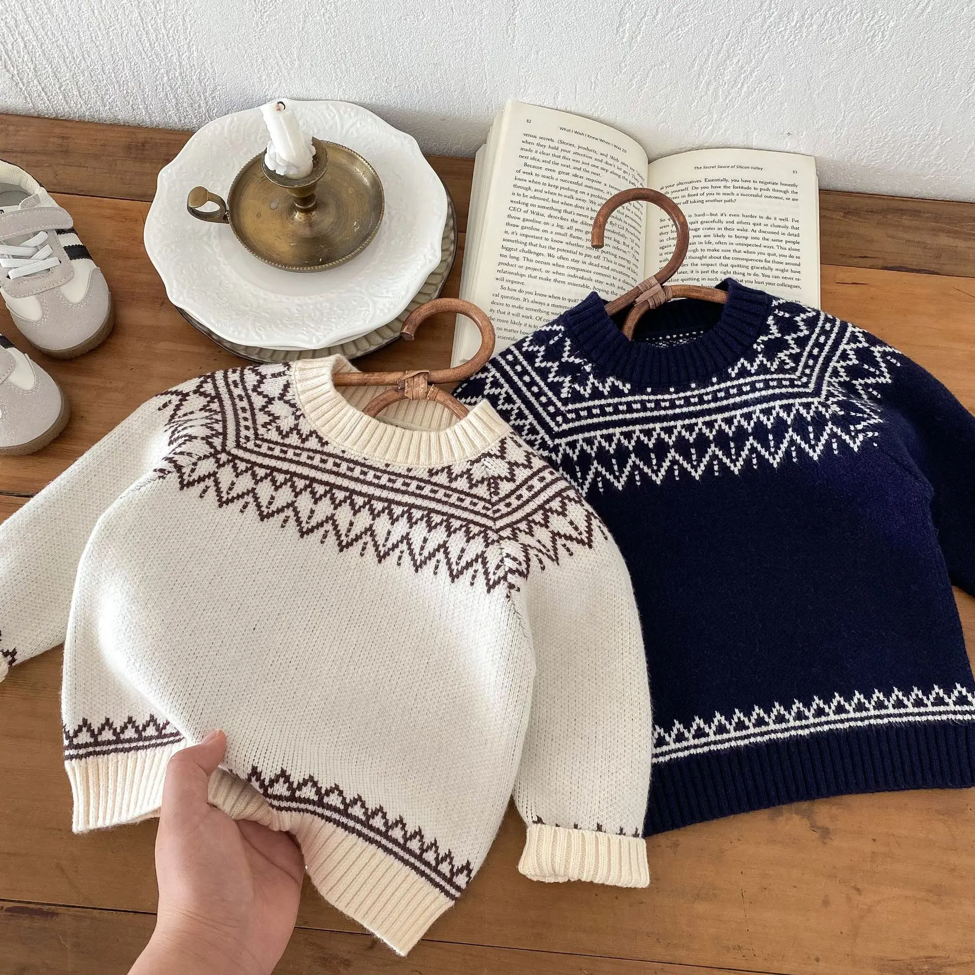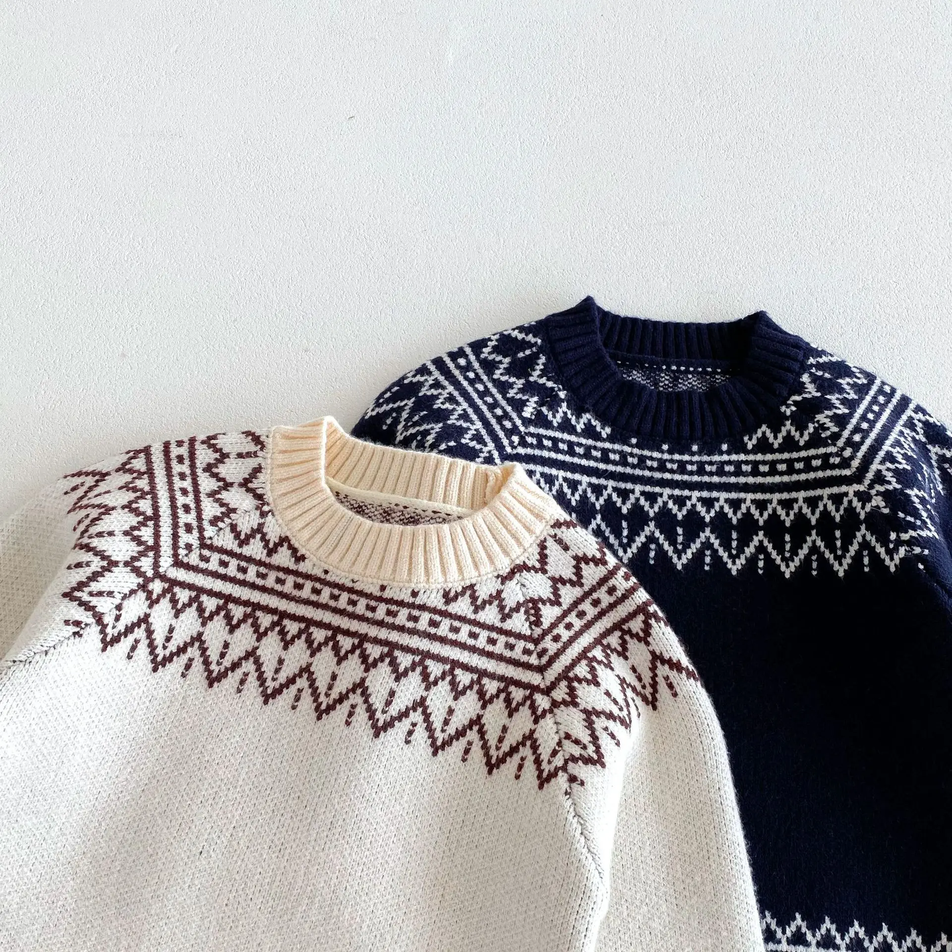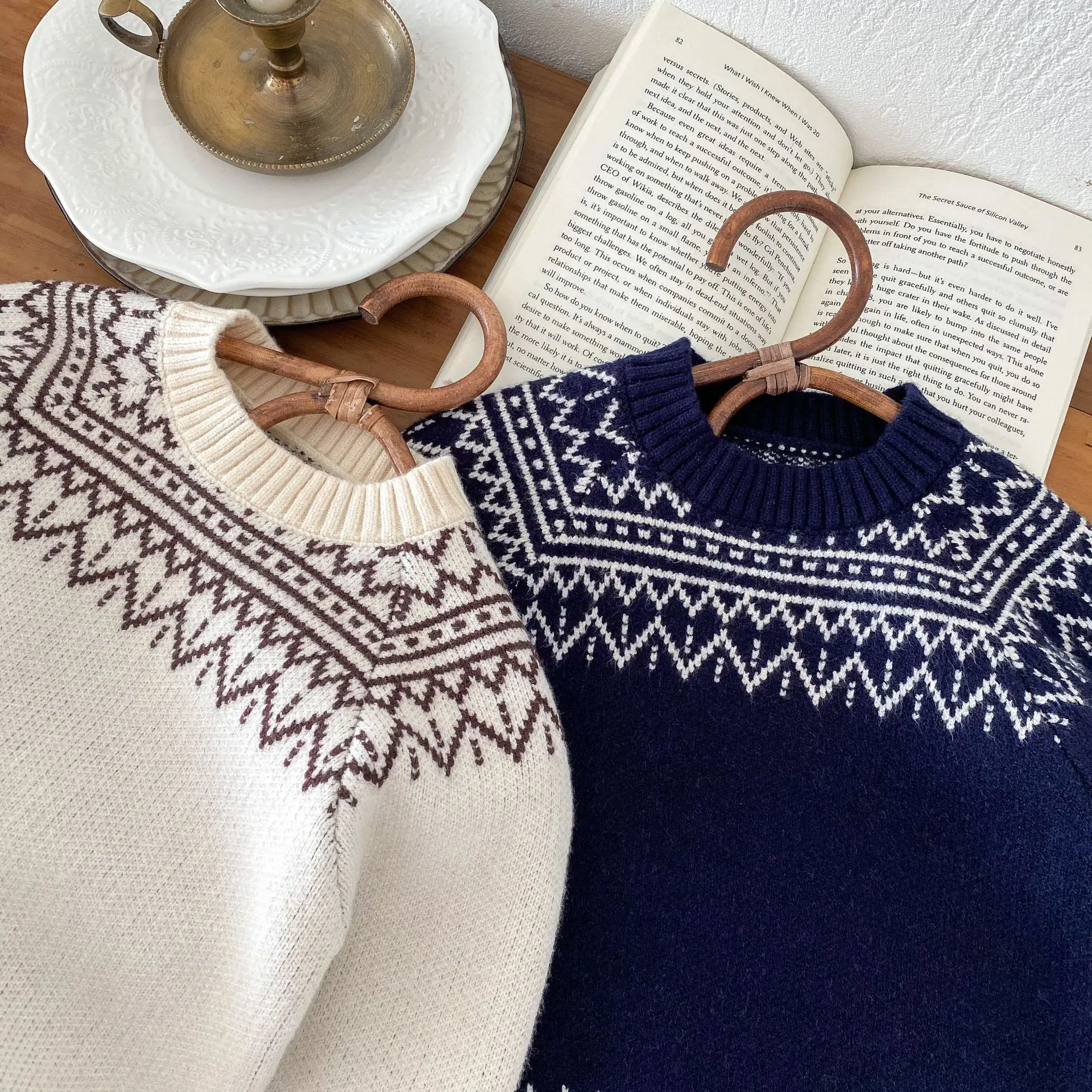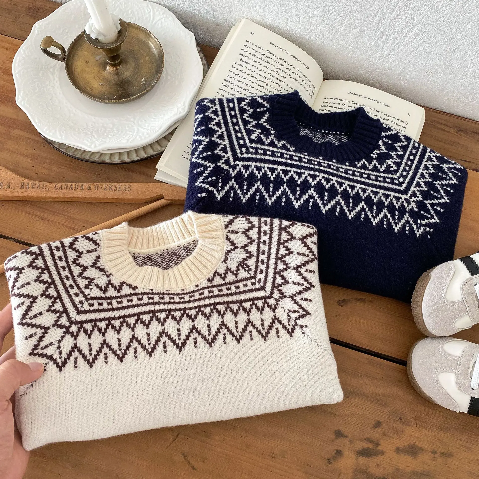 Kids' Tyrolean Geometric Embroidered Knit Sweater in 2 Colors [mh0007003]