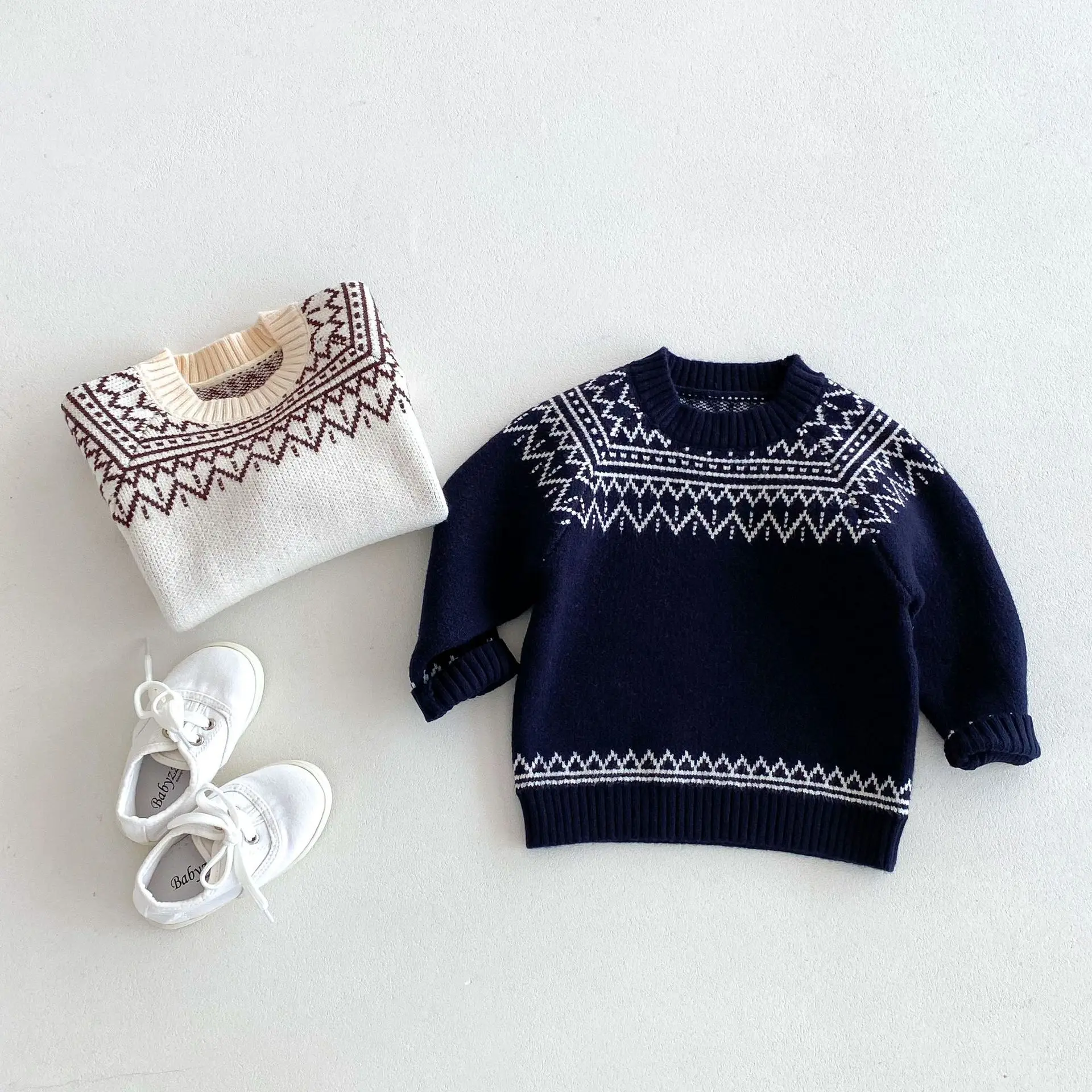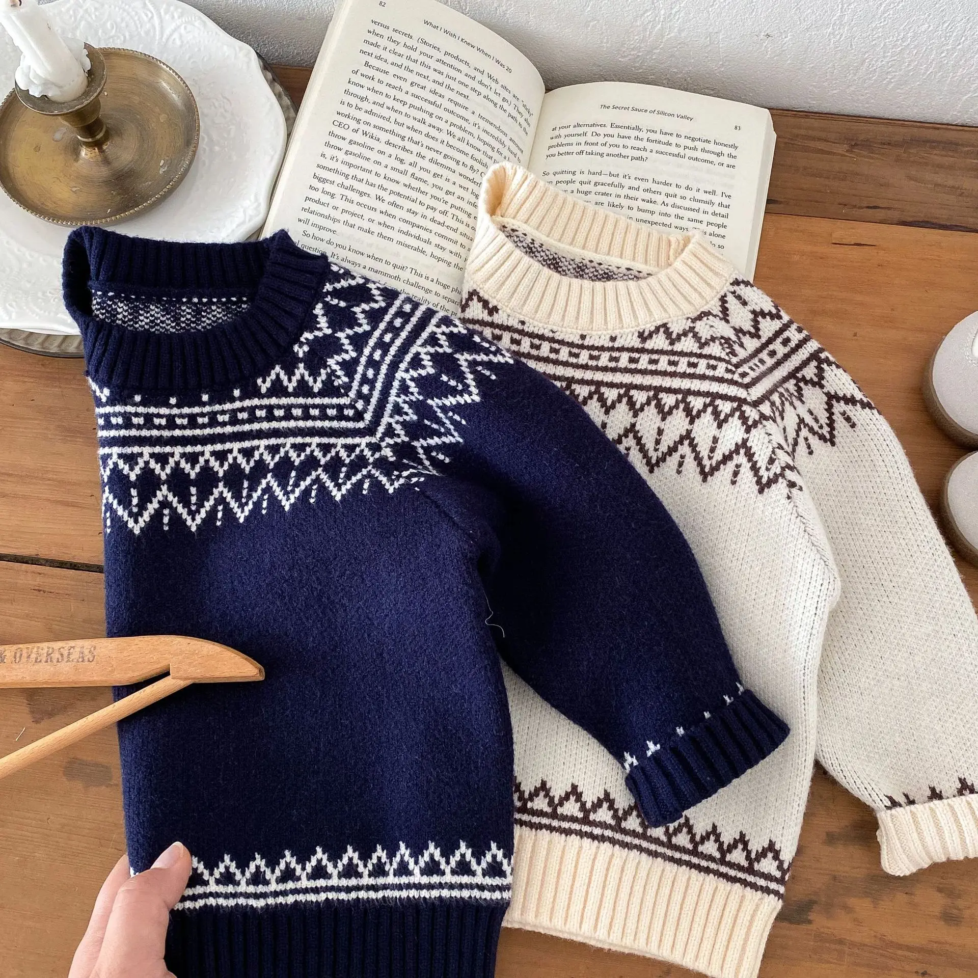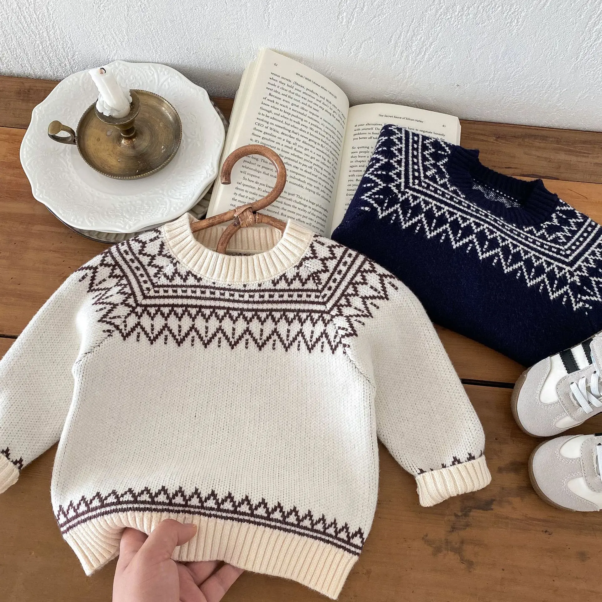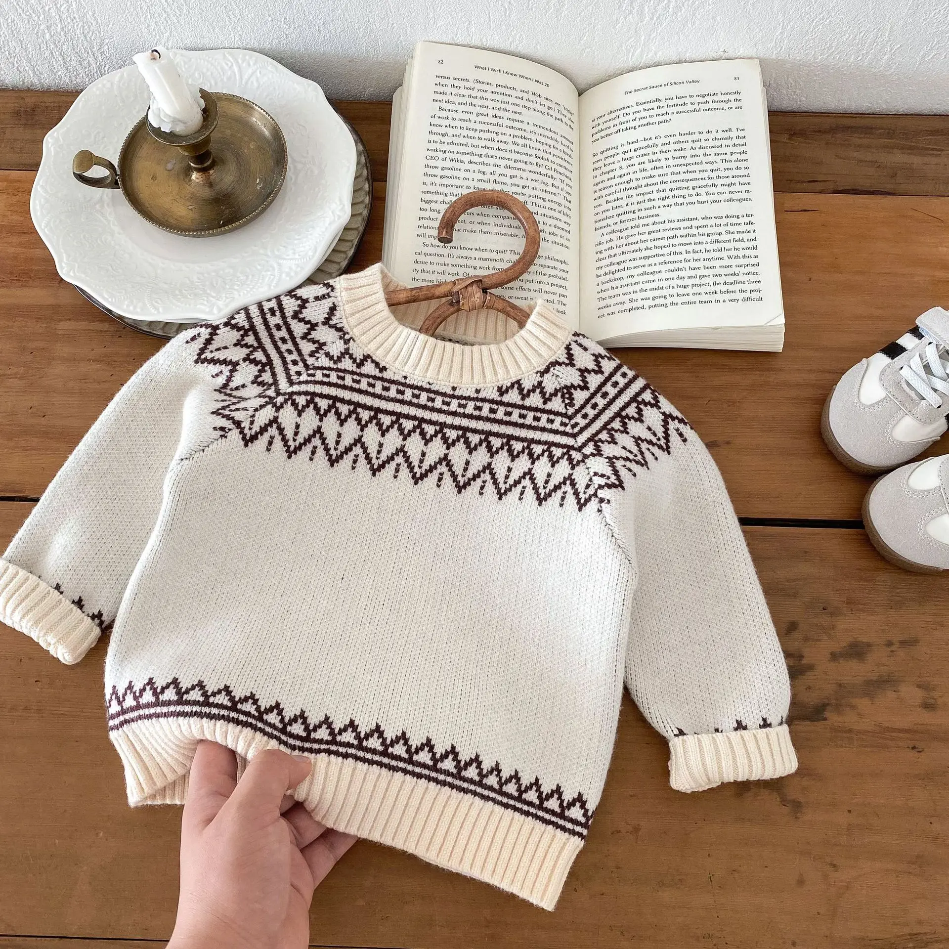 Kids' Tyrolean Geometric Embroidered Knit Sweater in 2 Colors [mh0007003]