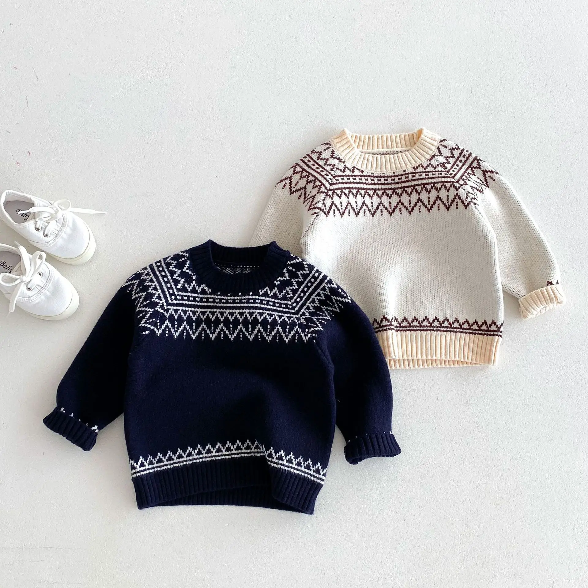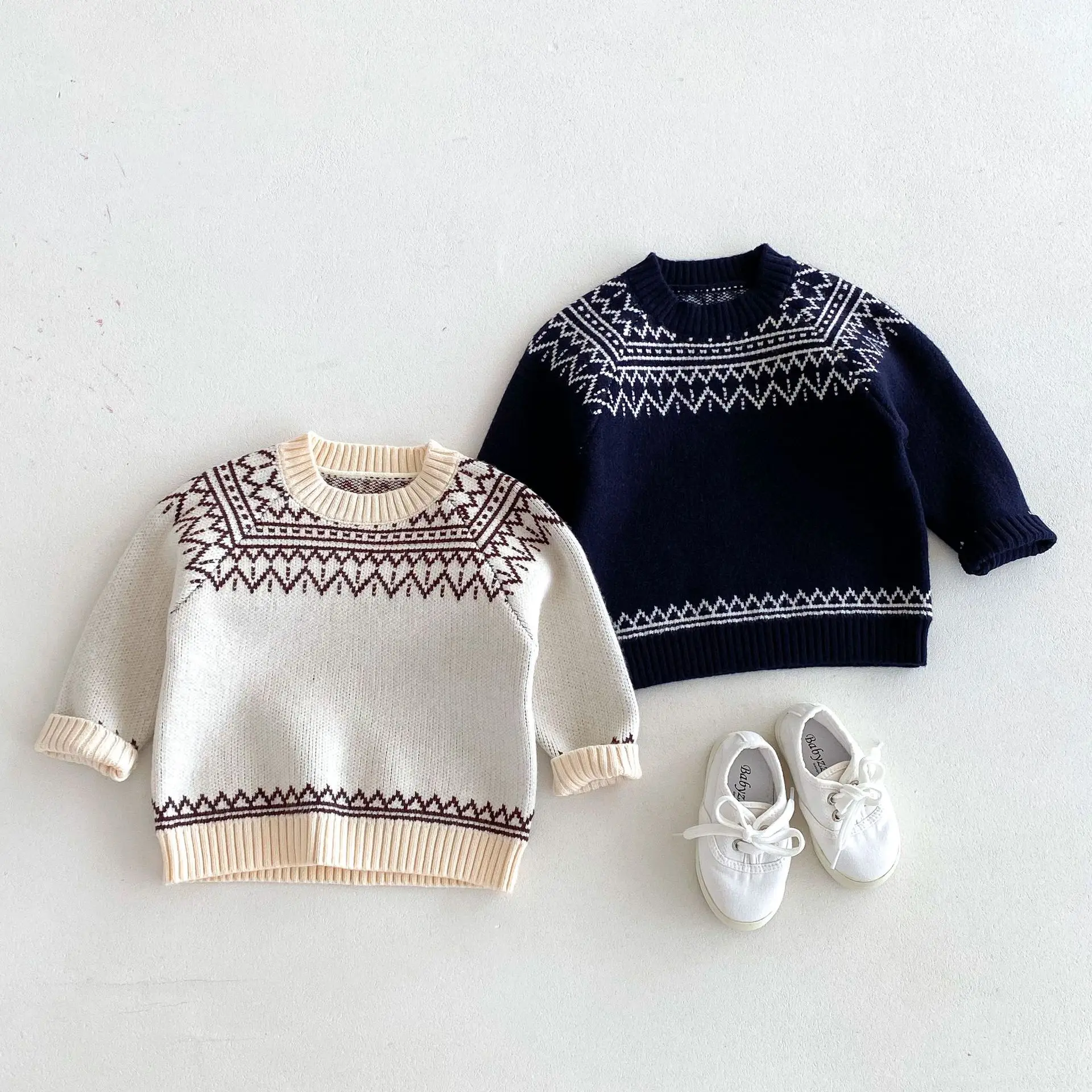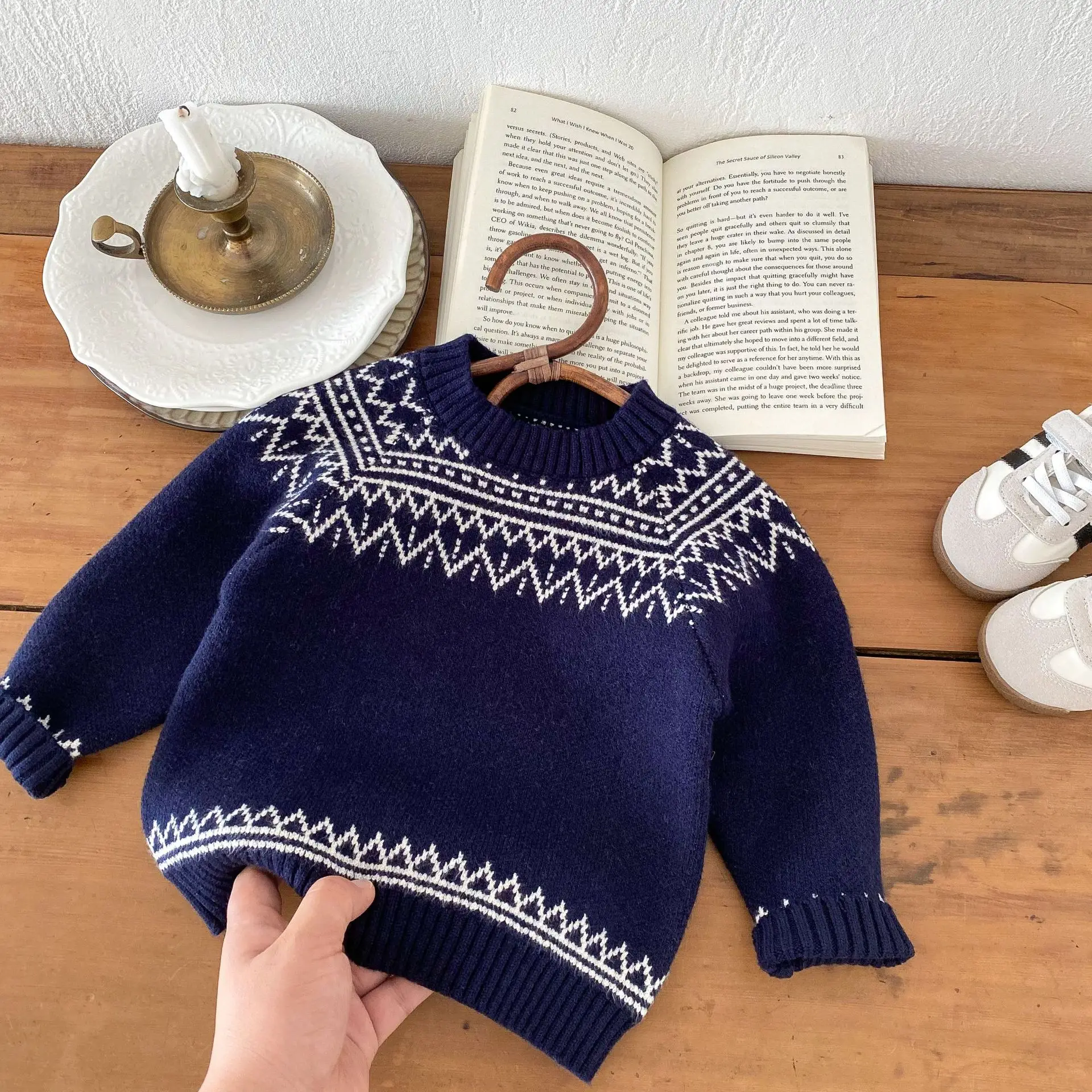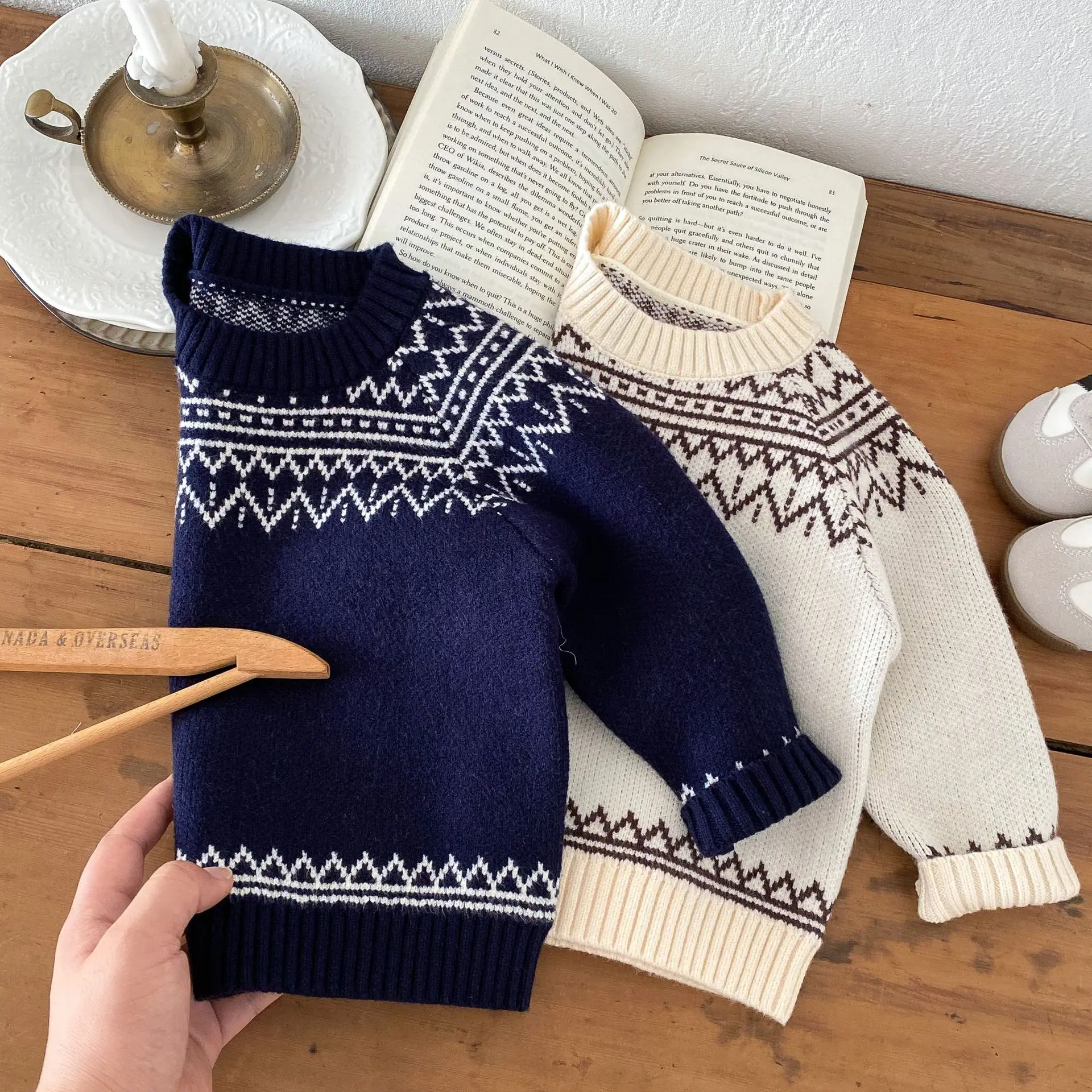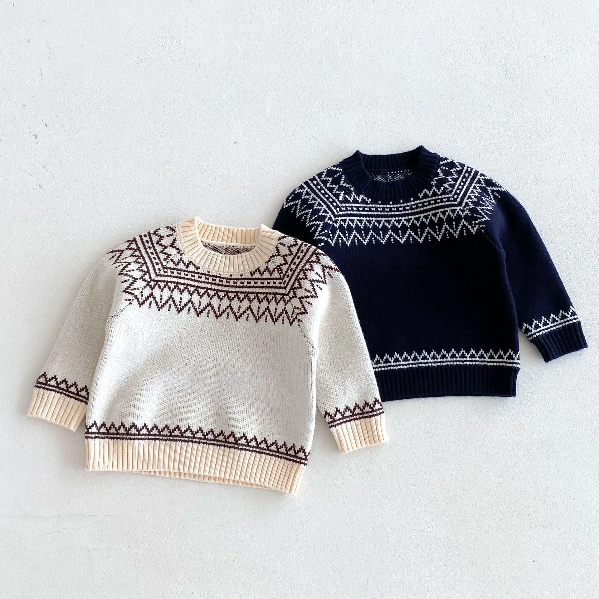 Kids' Tyrolean Geometric Embroidered Knit Sweater in 2 Colors [mh0007003]