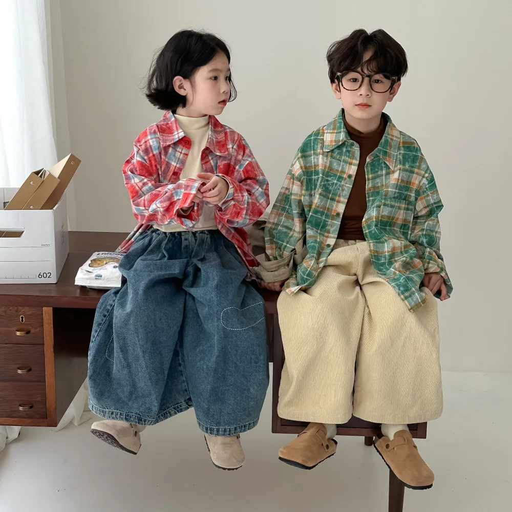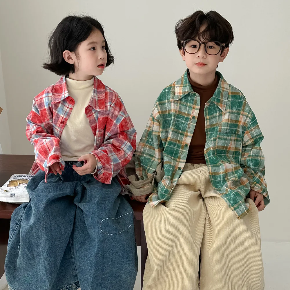 #kids fashion #check shirt #loose top #Korean kids clothes #long sleeve shirt #casual outfit #baby shirt
