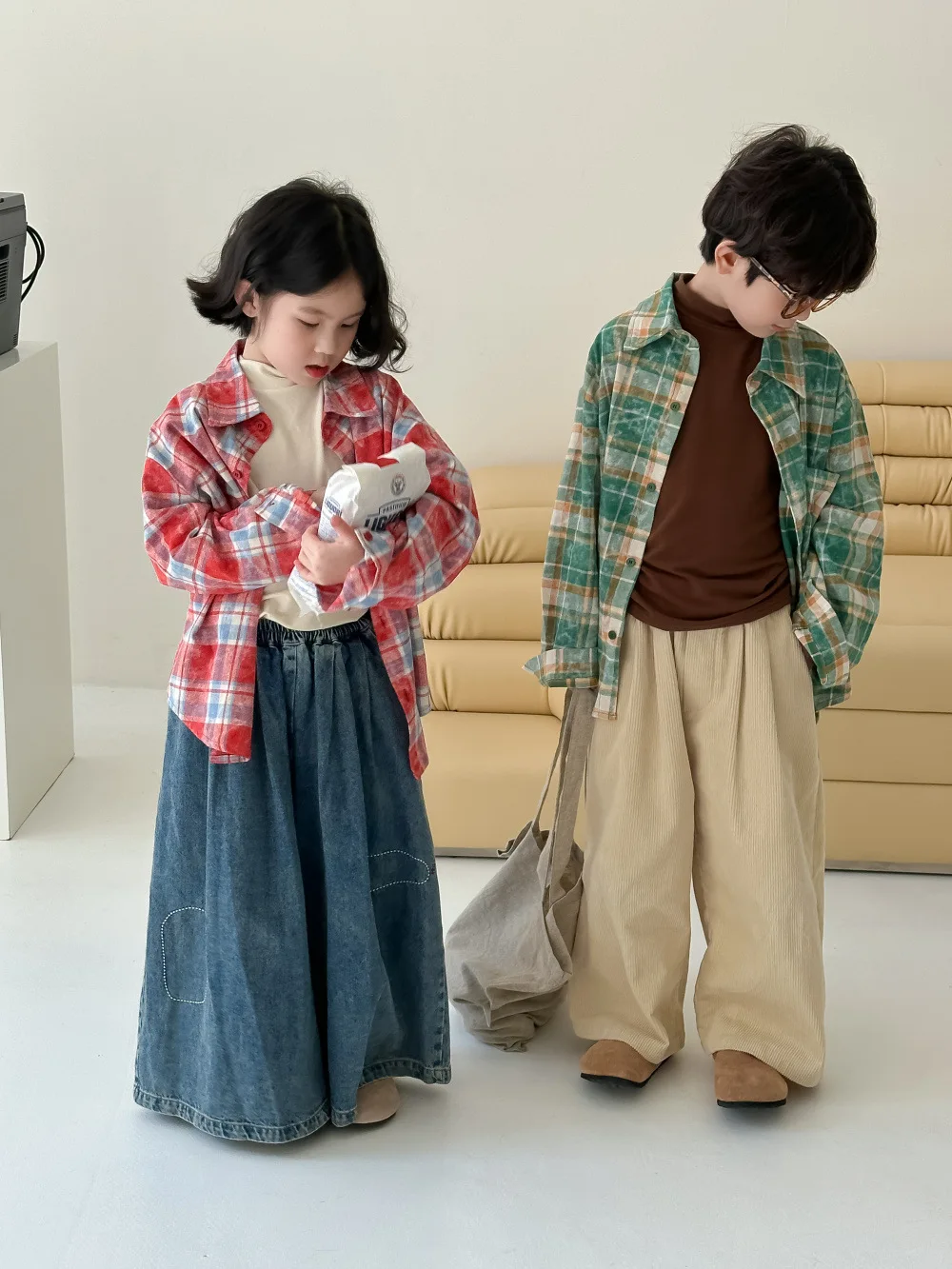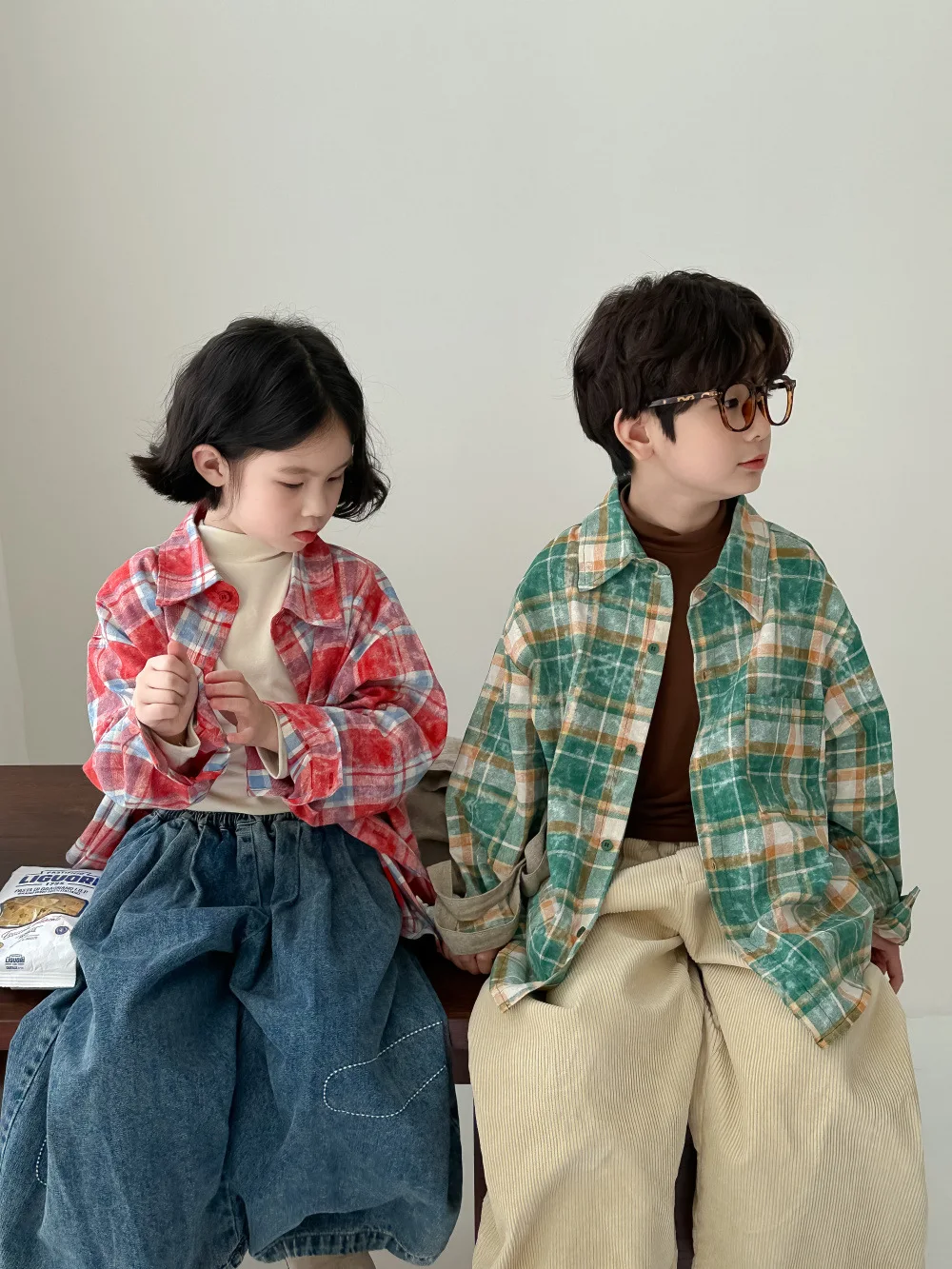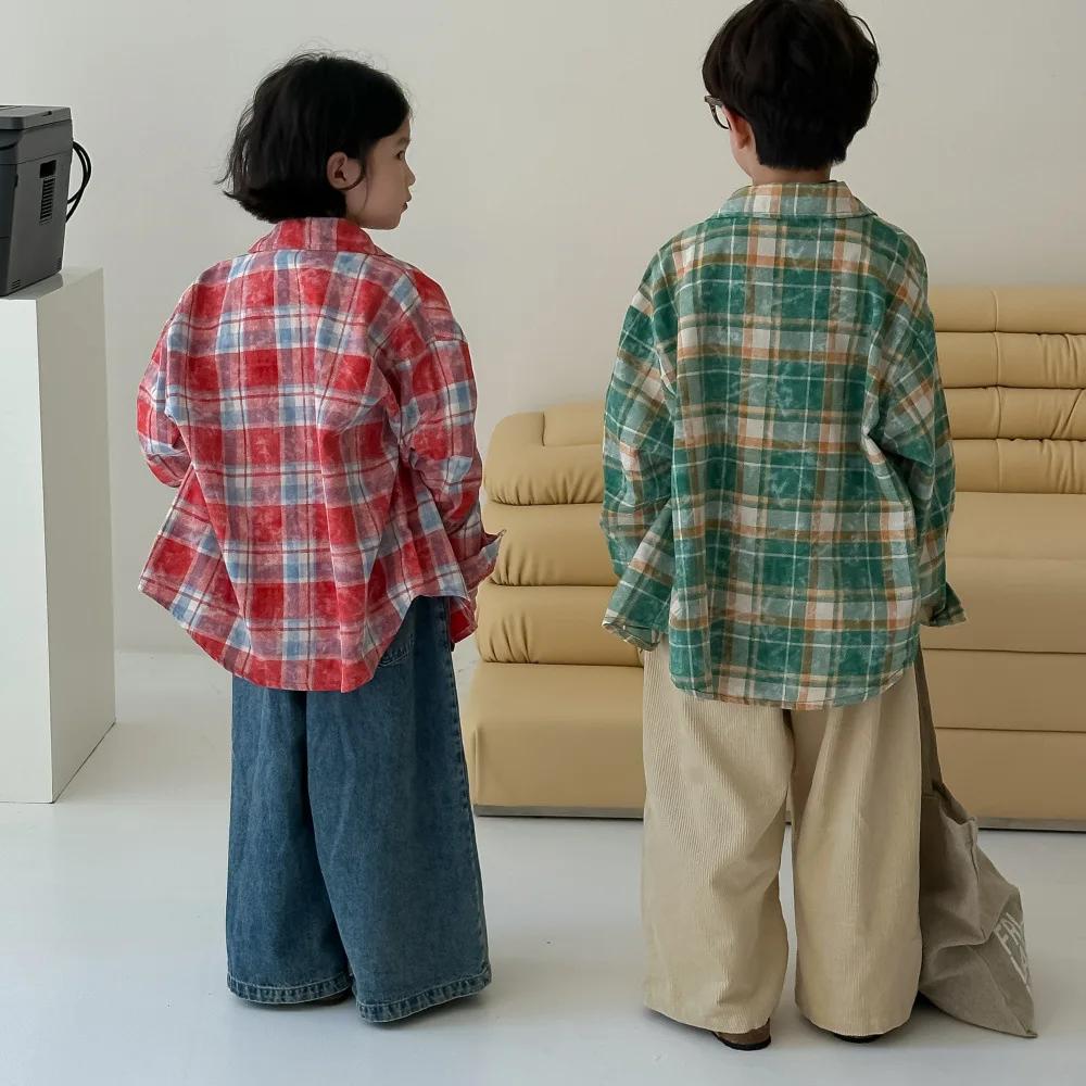 Kids' Checkered Long Sleeve Loose Shirt, 2 Colors [mh0007055]