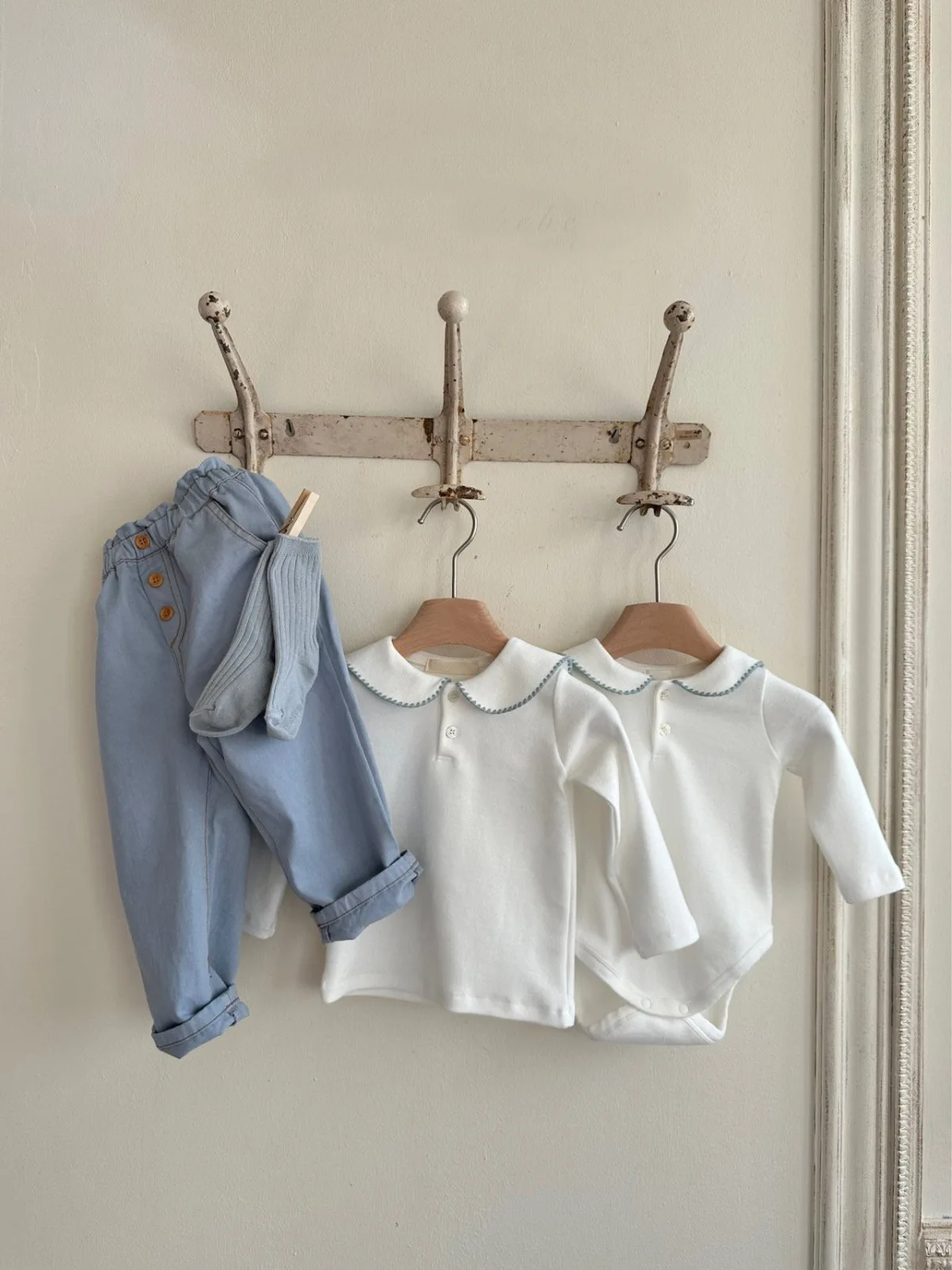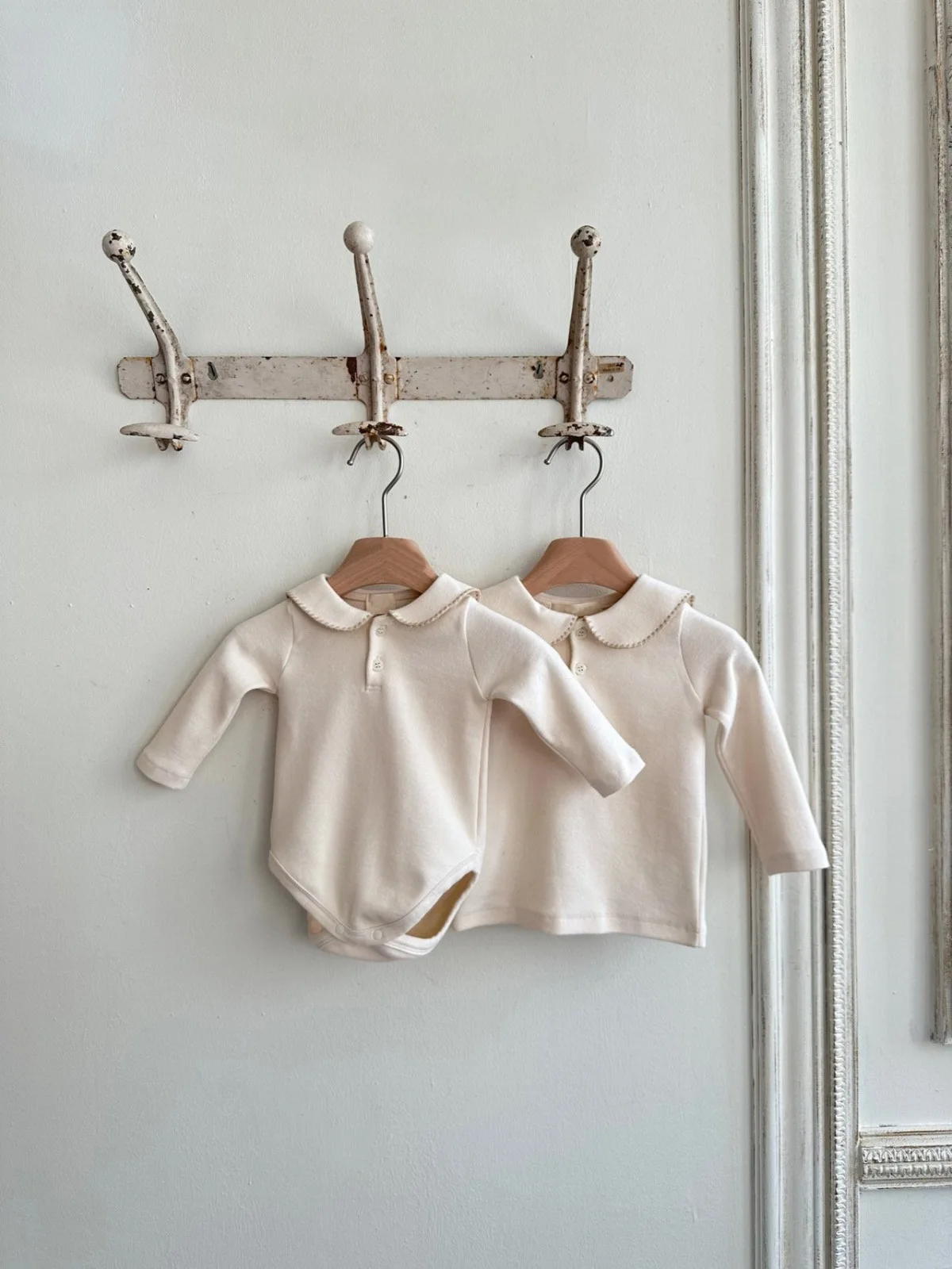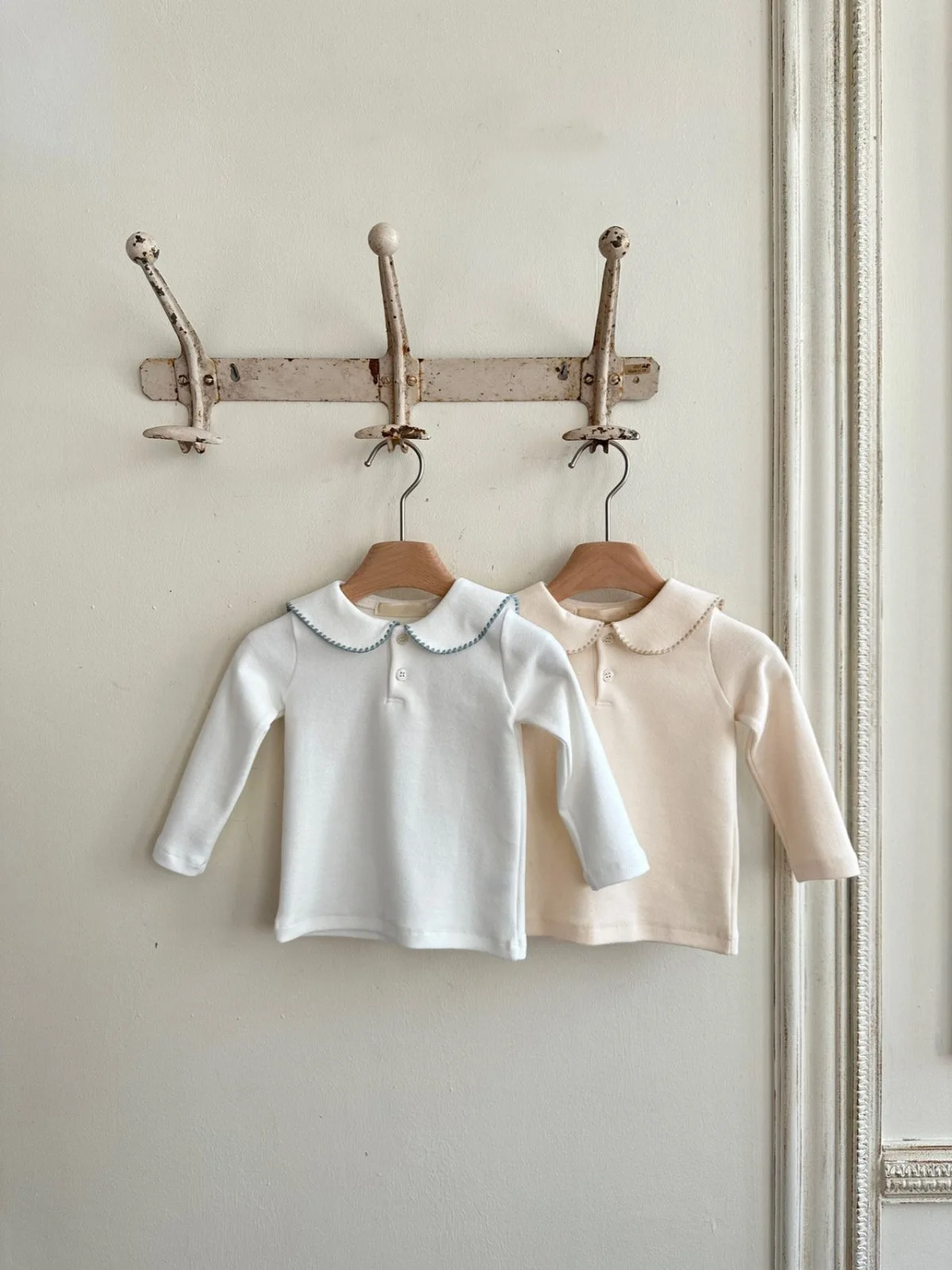 This baby top features a simple and stylish round collar with borders. The long sleeve design is suitable for chilly seasons, and the soft material provides a comfortable fit. Available in two colors, this T-shirt blouse can be easily matched with both casual and formal outfits, making it suitable for a wide range of occasions from everyday use to special occasions. It is a practical and stylish piece that you will want to add to your child's wardrobe.