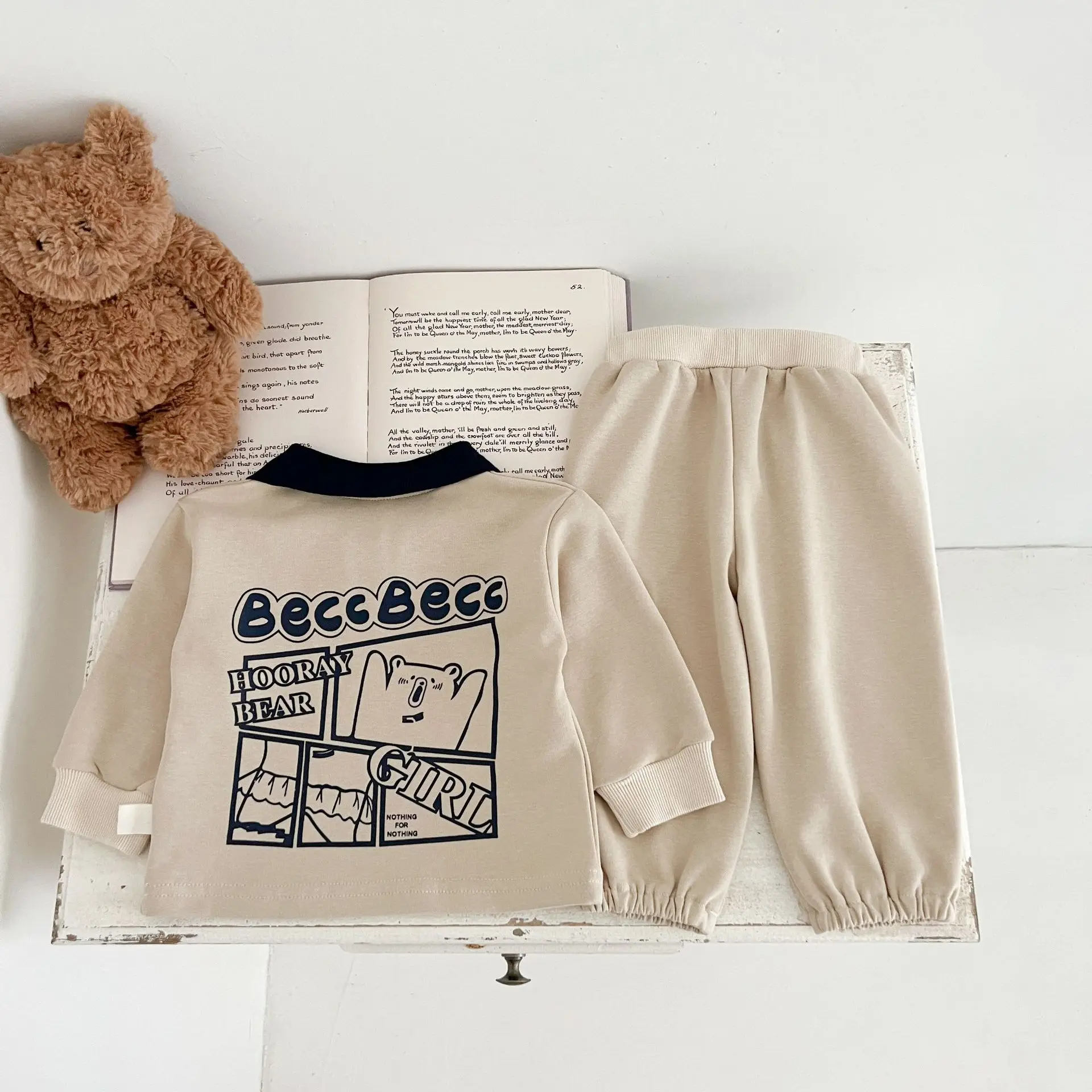 Baby and kids set up 2 piece set back print long sleeve polo shirt + long pants 2 colors Baby and kids set up 2 piece set back print long sleeve polo shirt + long pants 2 colors [mh0007225]