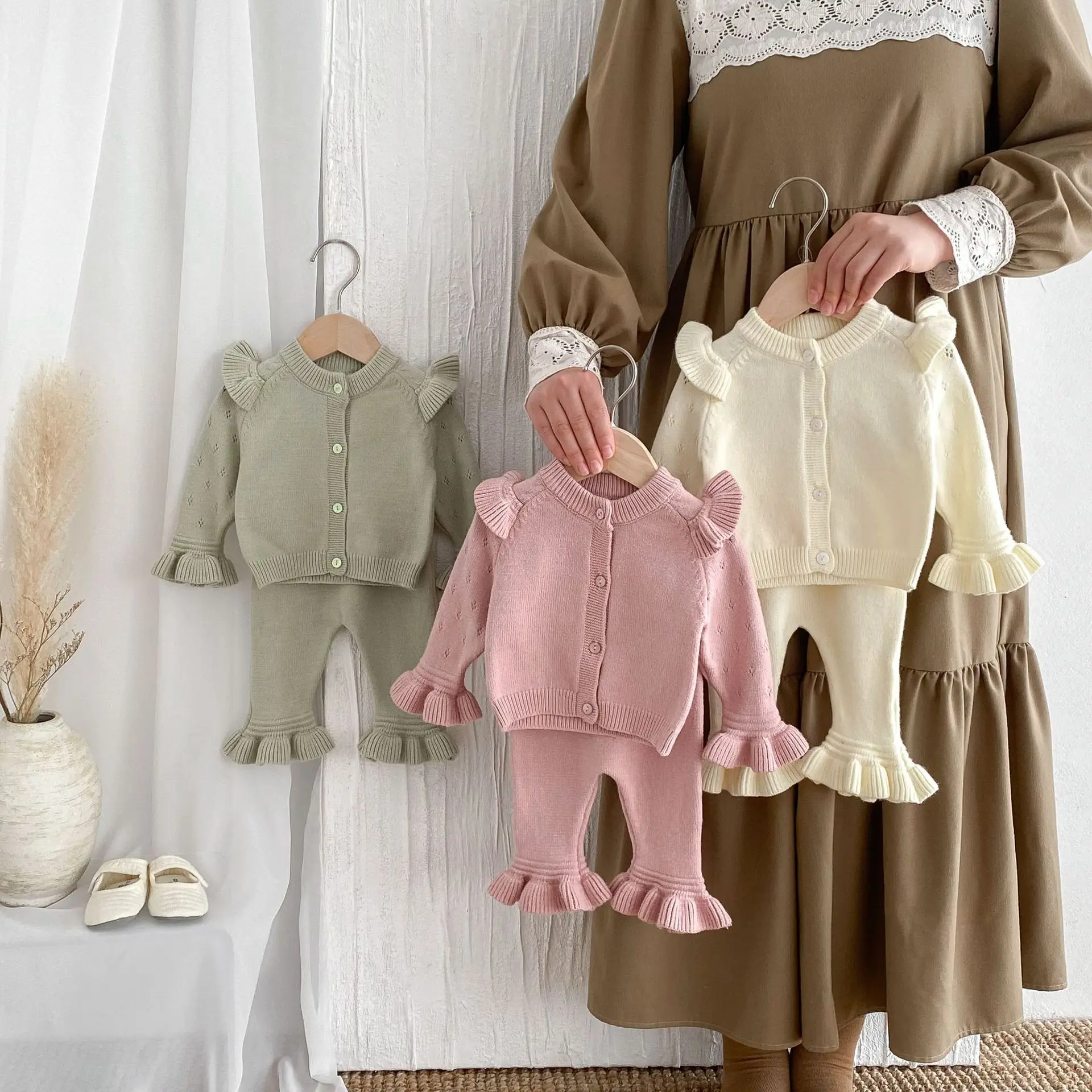 #baby outfit #ruffled cardigan #knitted pants #girls fashion #baby clothes #2-piece set #fashionable