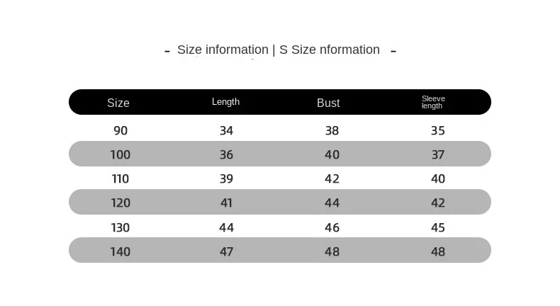 ■Label size (cm): 80, 90, 100, 110, 120, 130