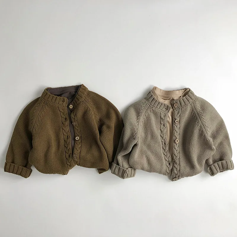 Kids' cardigan, simple basic knit jacket with twisted design, available in two colors [mh0007359]