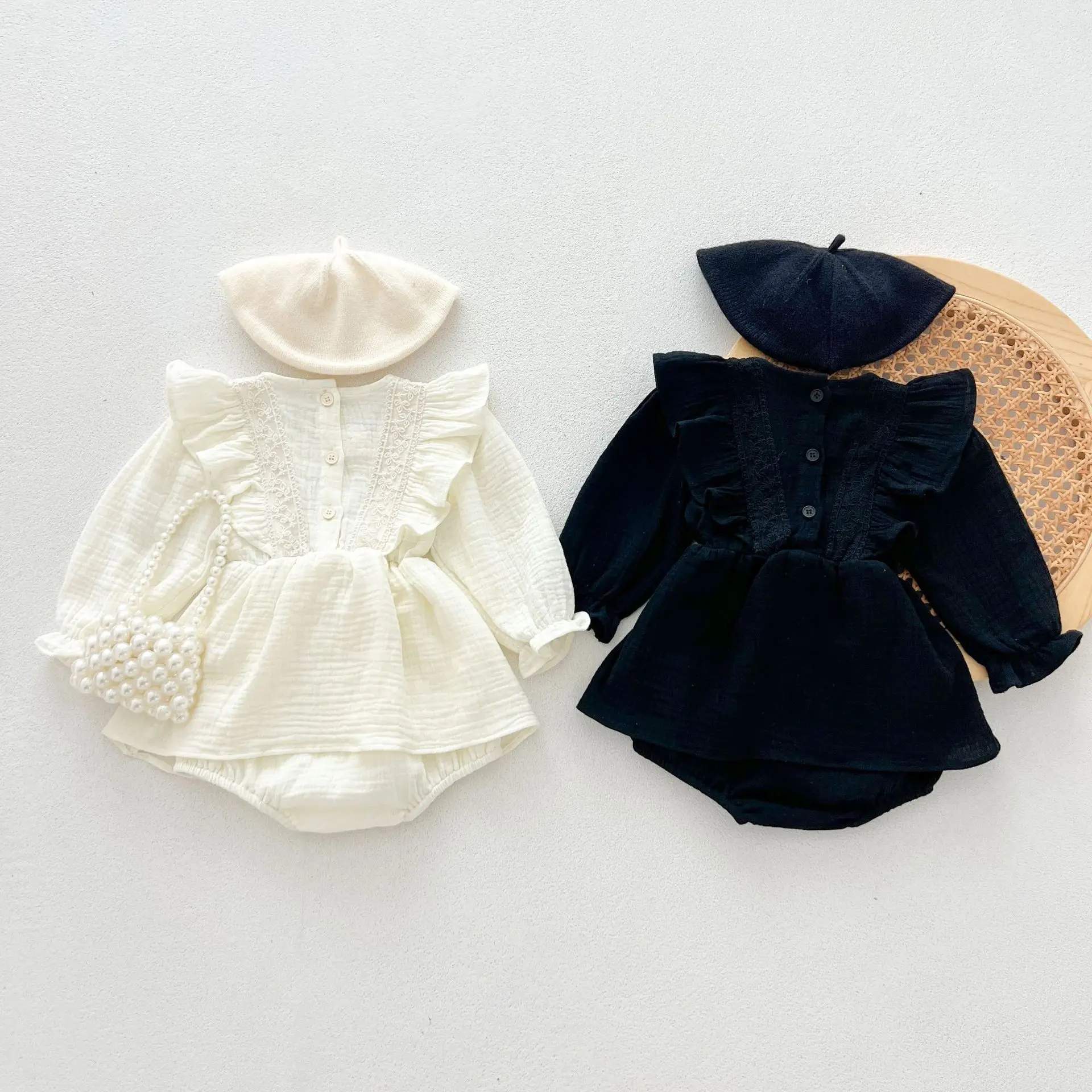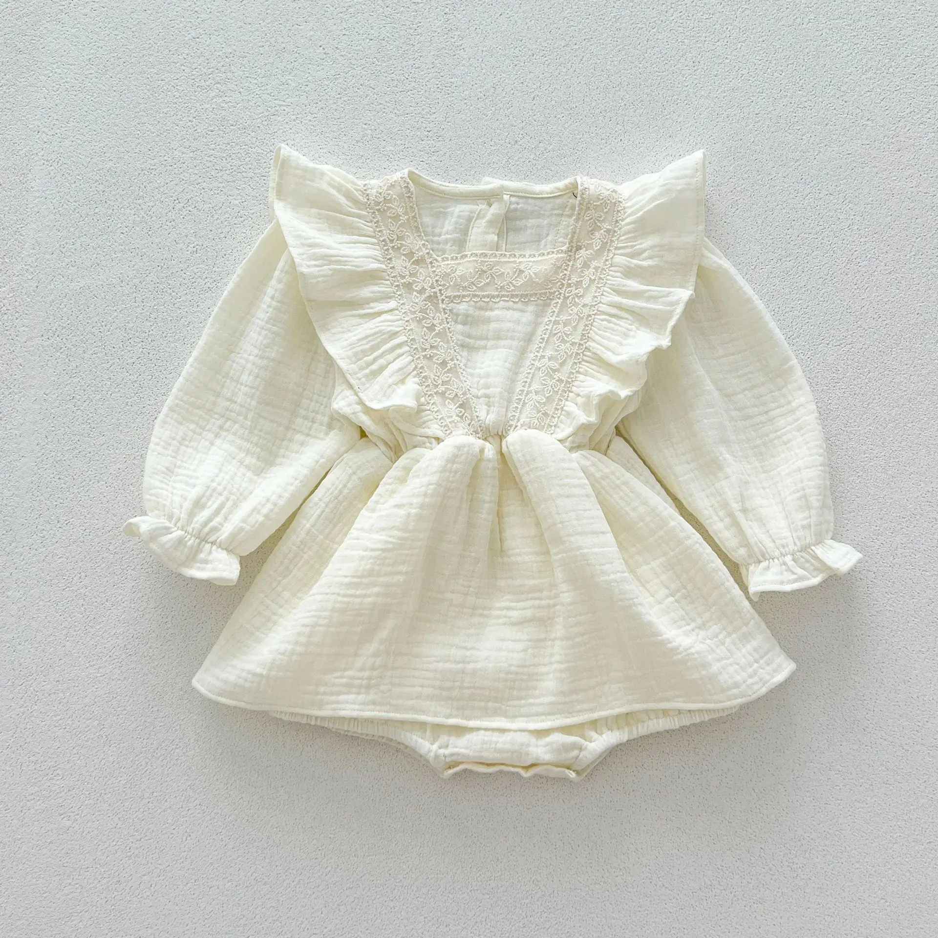 Baby romper with shoulder ruffle skirt and long sleeves, available in two colors [mh0007381]