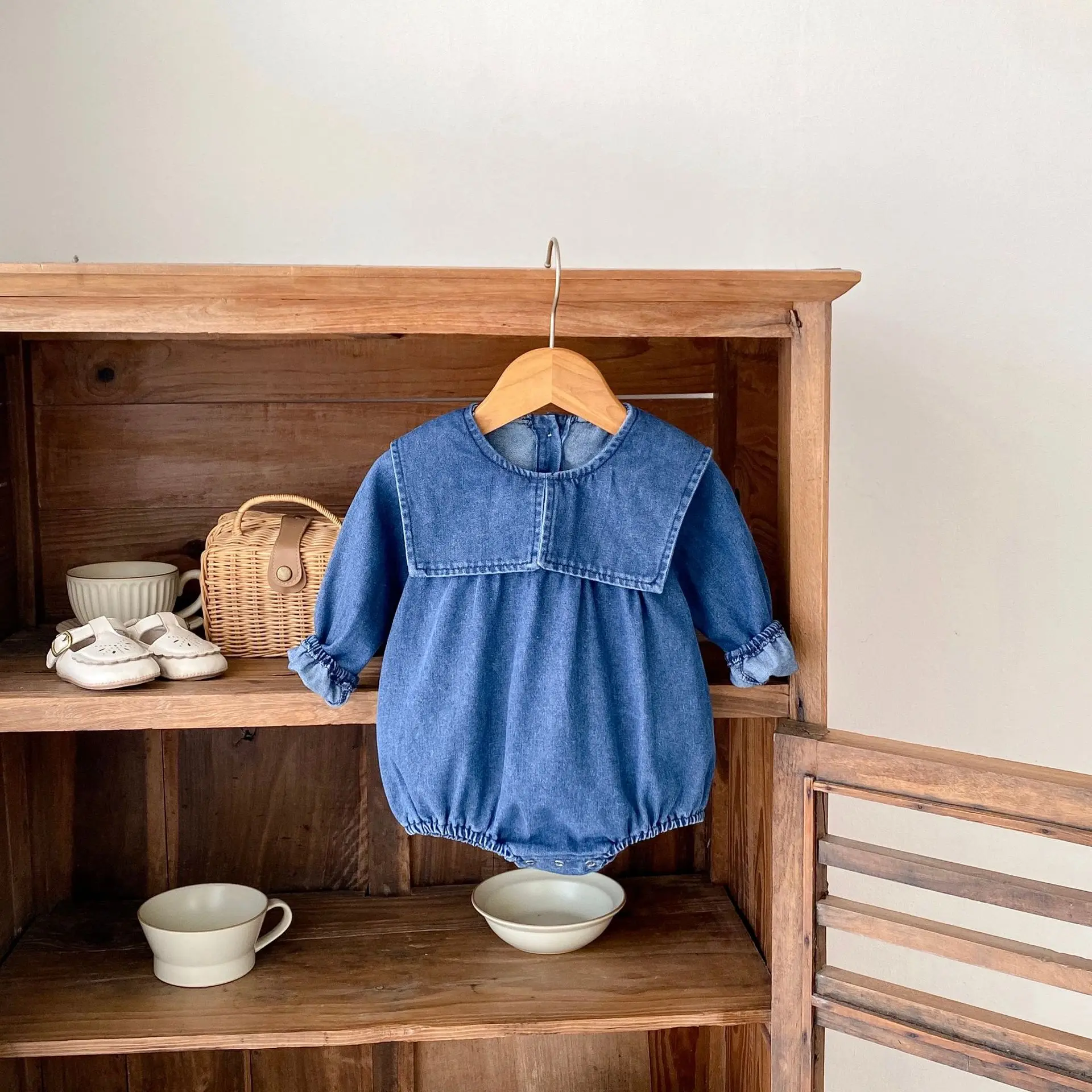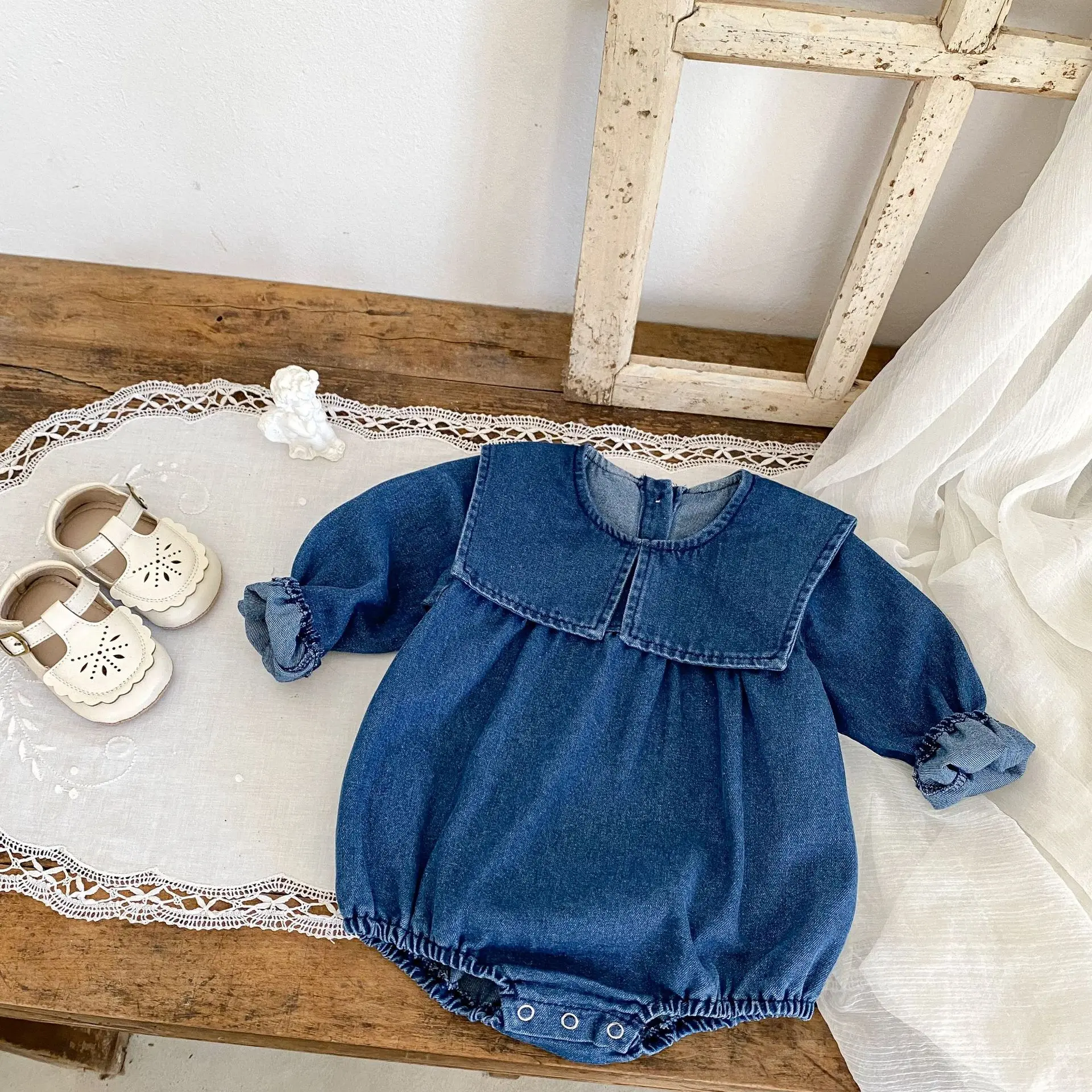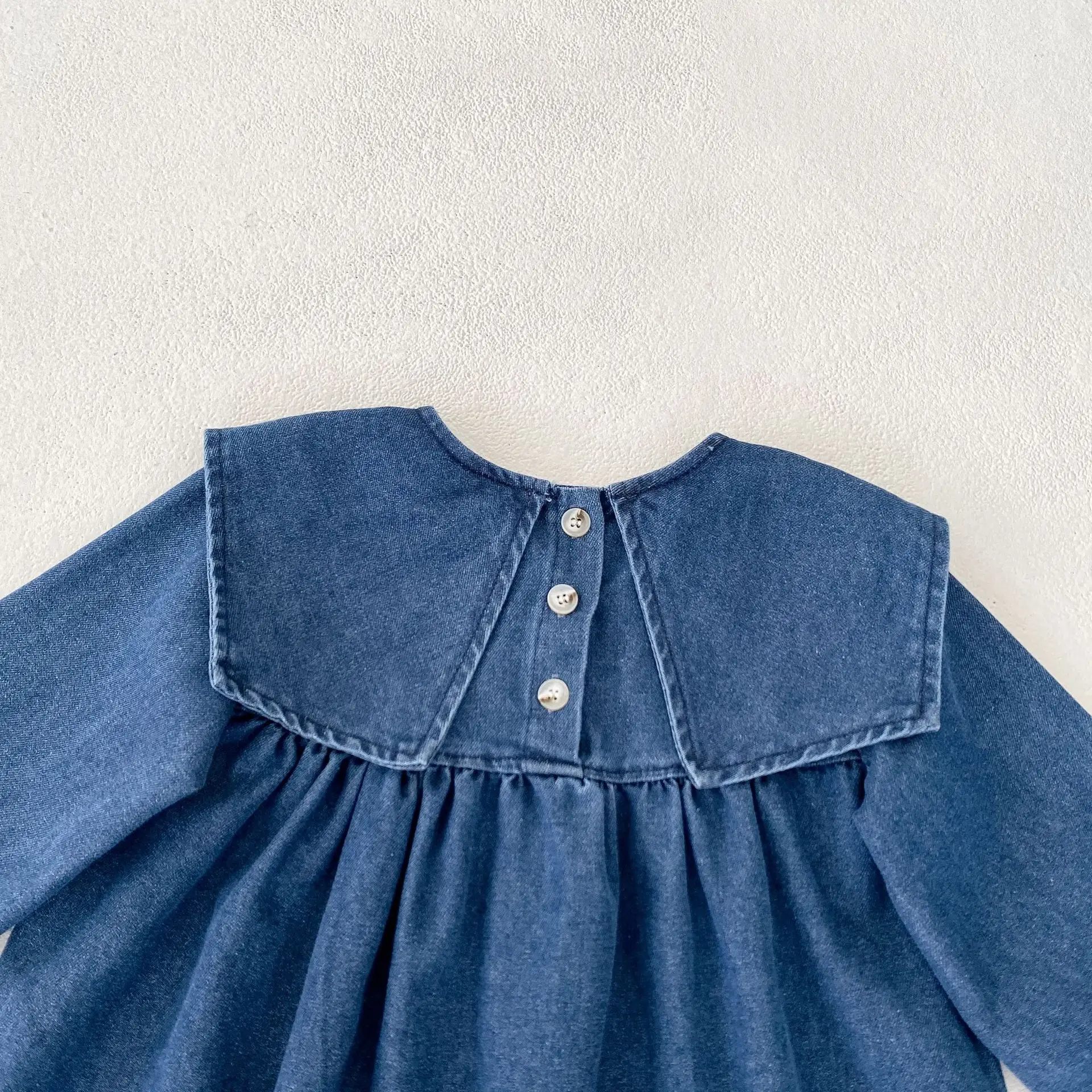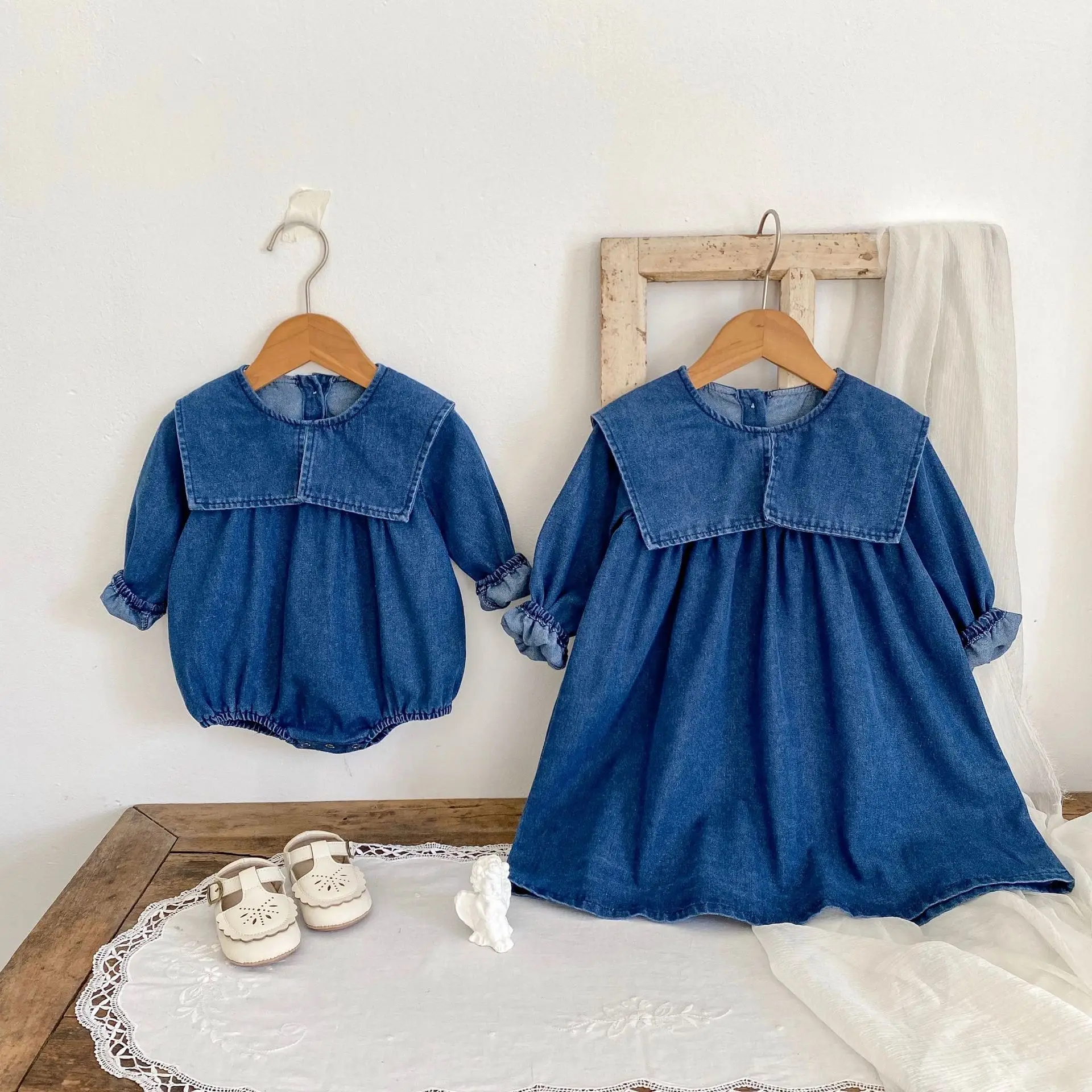 Baby Romper/Kids Dress, Big Lapel Collar Denim Long Sleeve Bodysuit/Dress, Matching Outfits for Sisters [mh0007424]