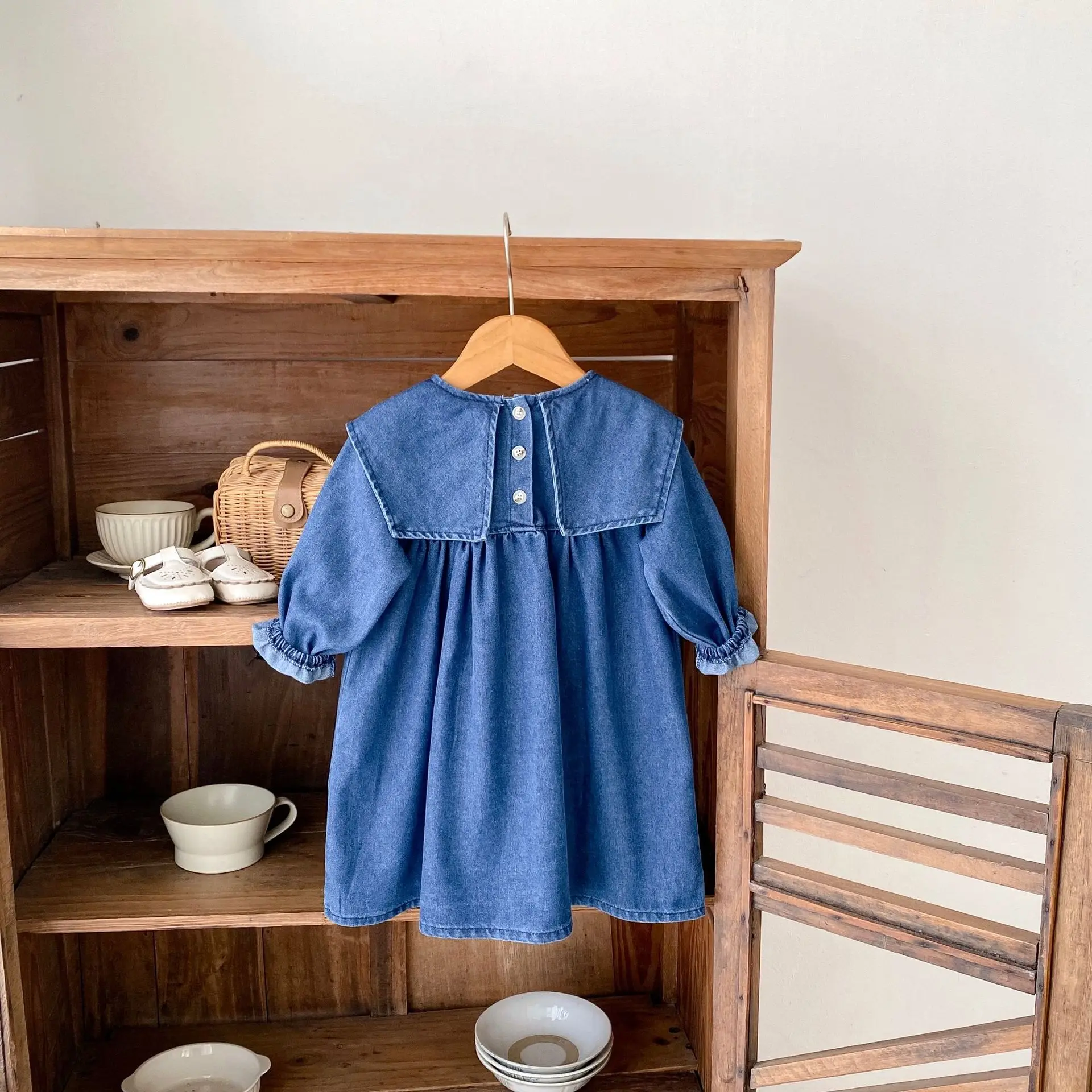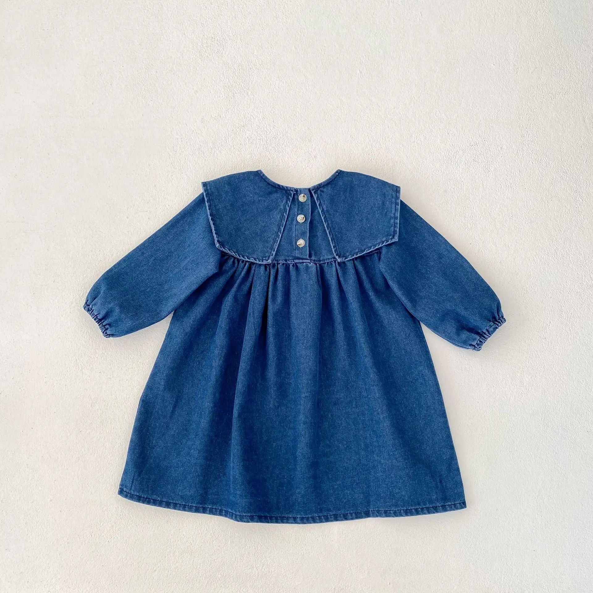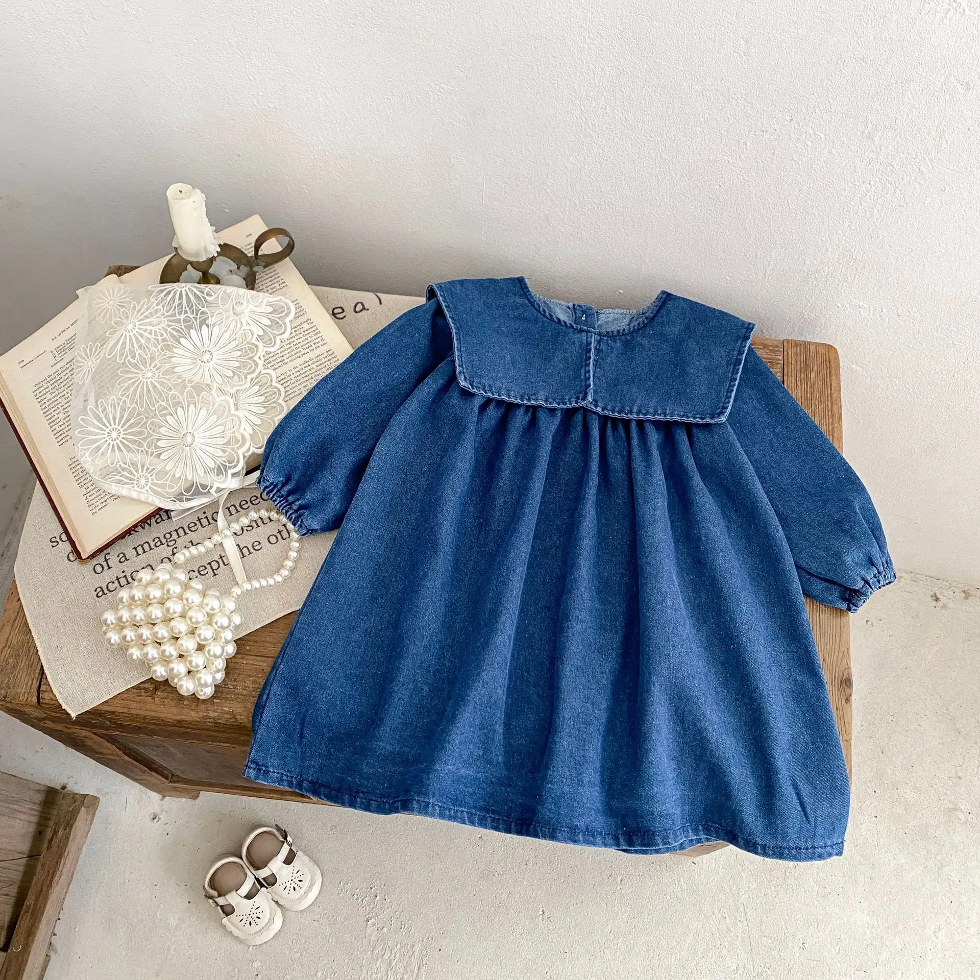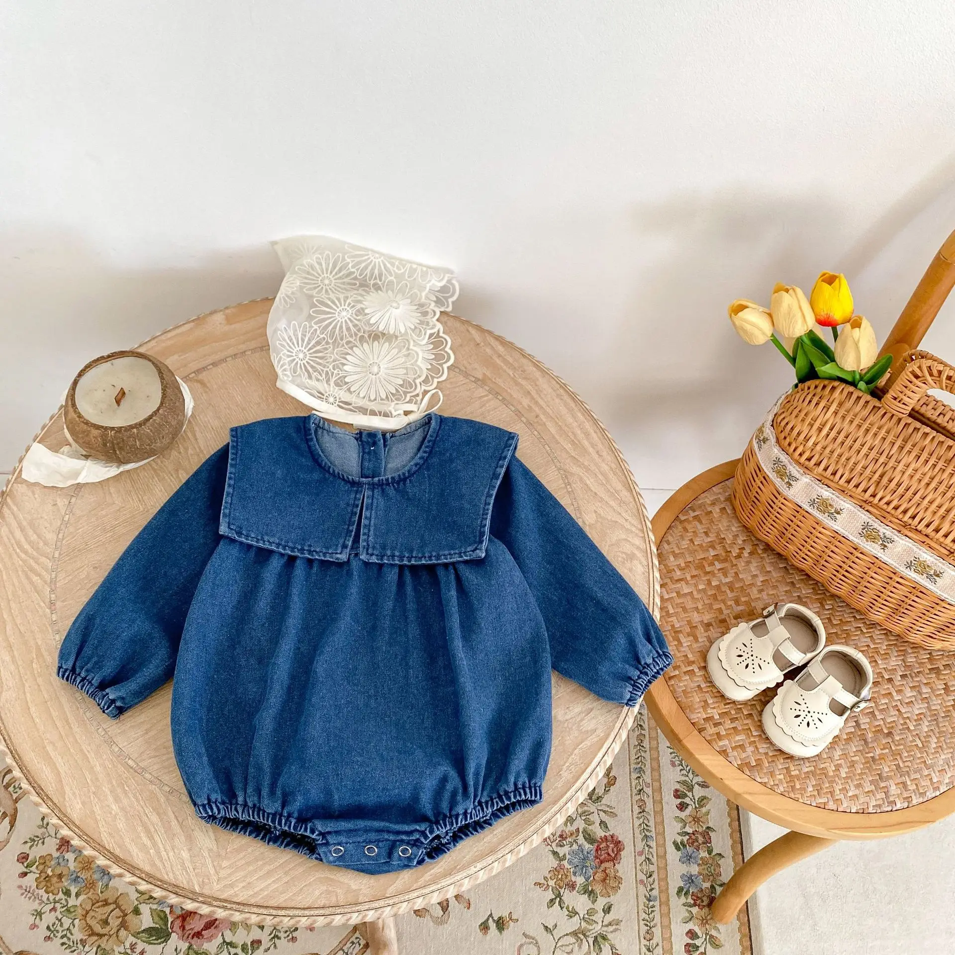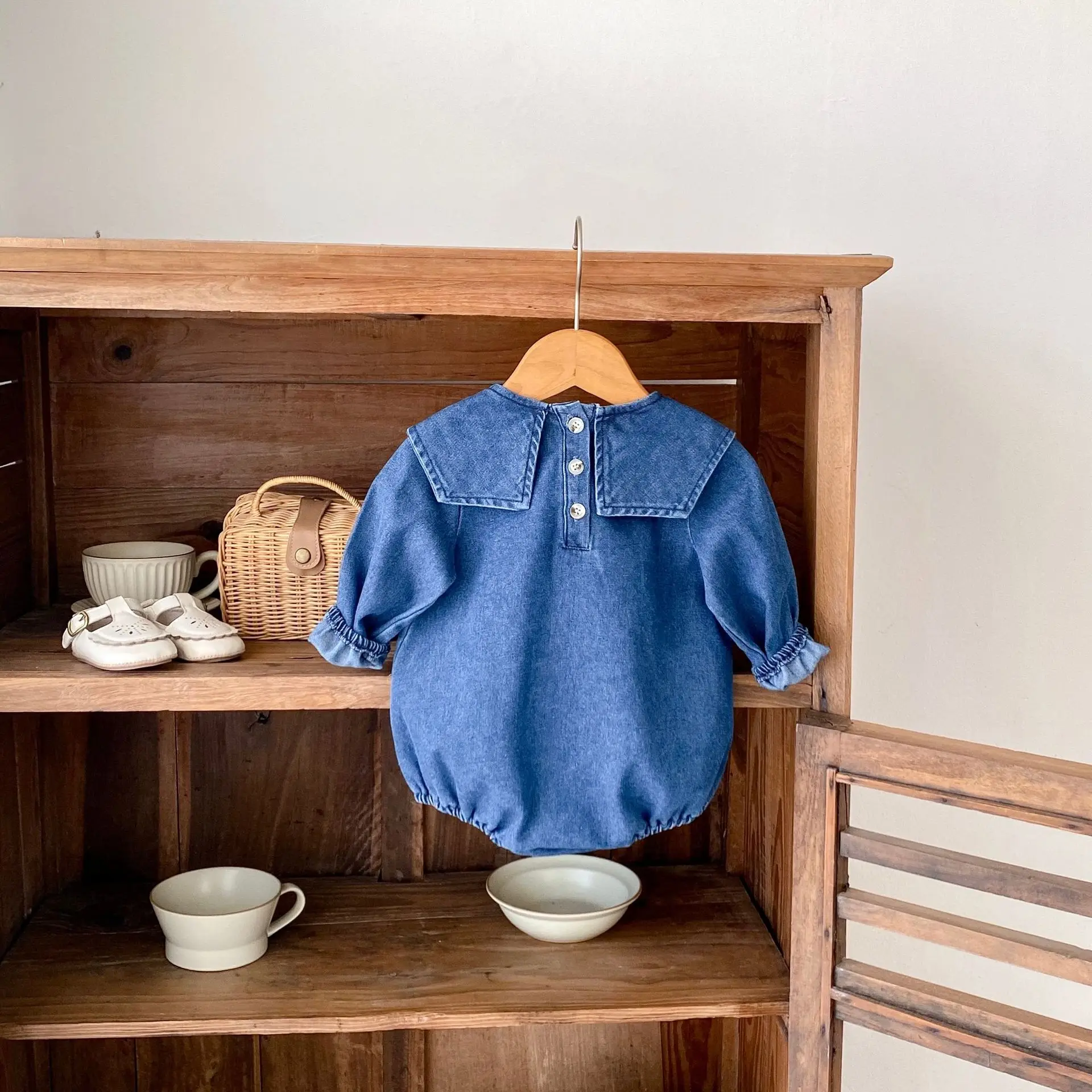 Baby Romper/Kids Dress, Big Lapel Collar Denim Long Sleeve Bodysuit/Dress, Matching Outfits for Sisters [mh0007424]