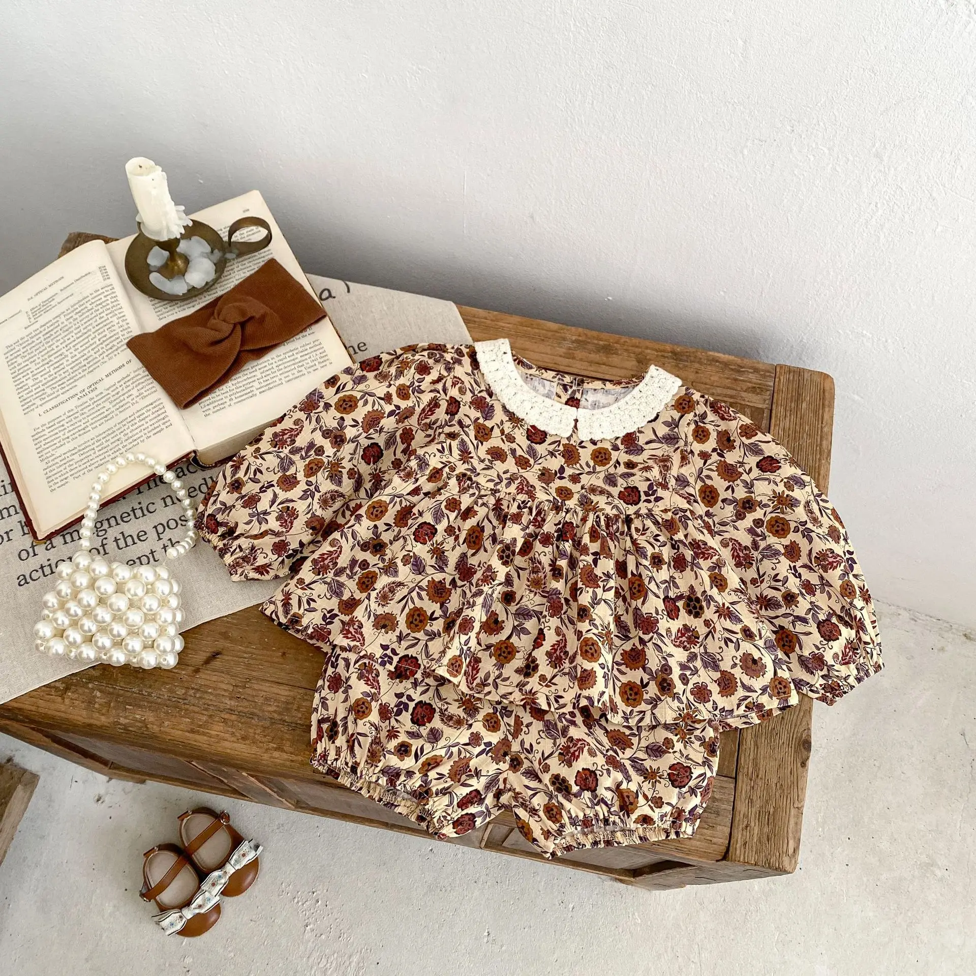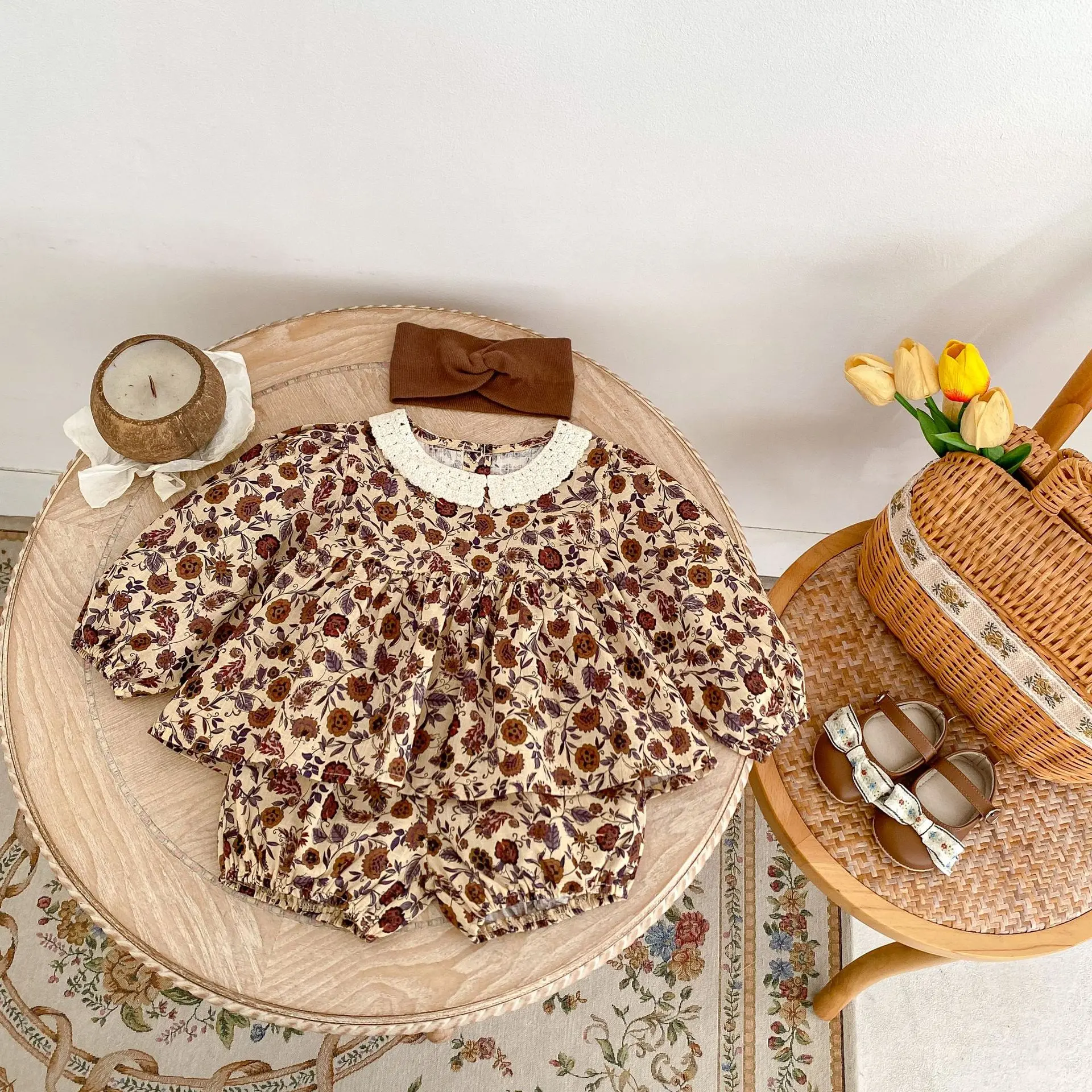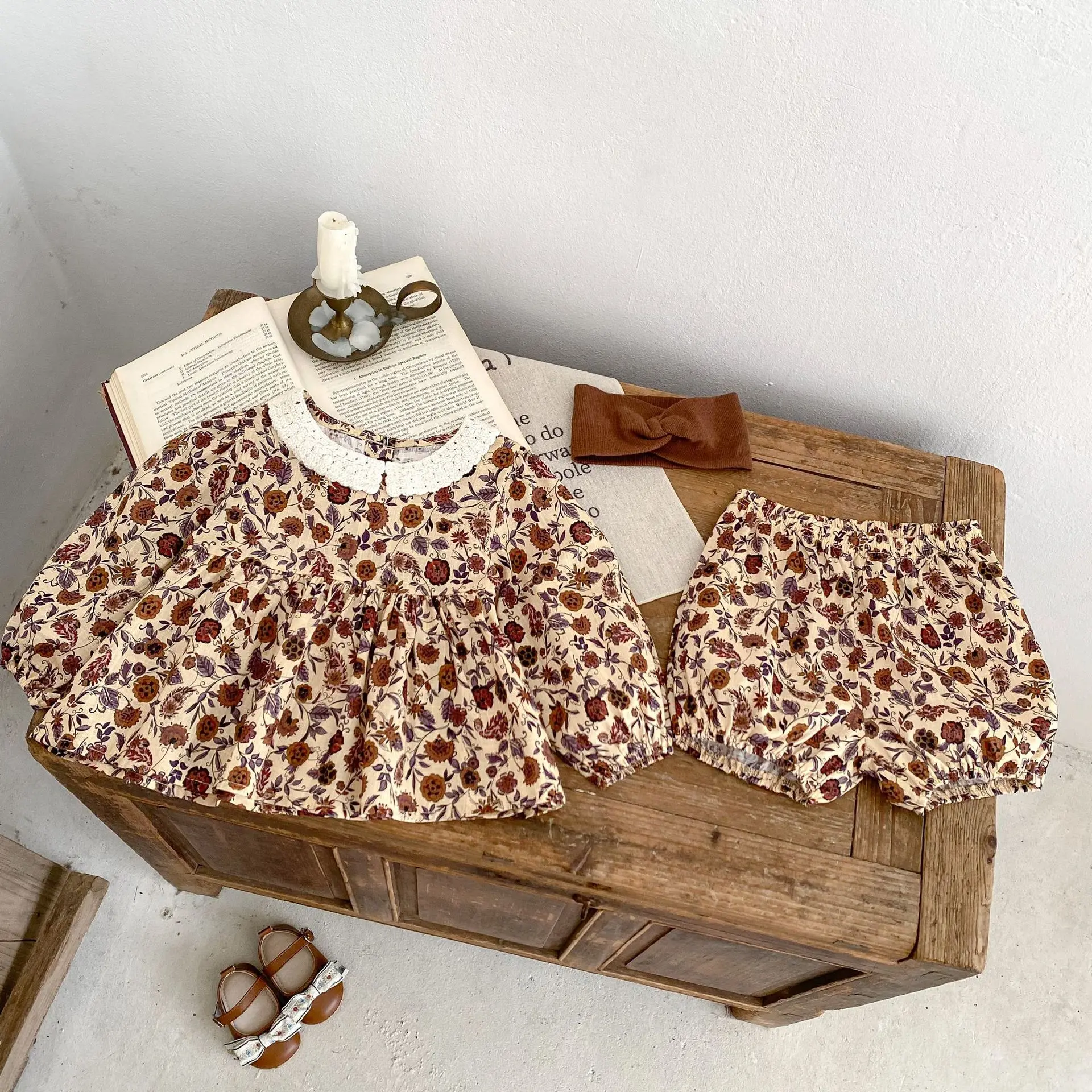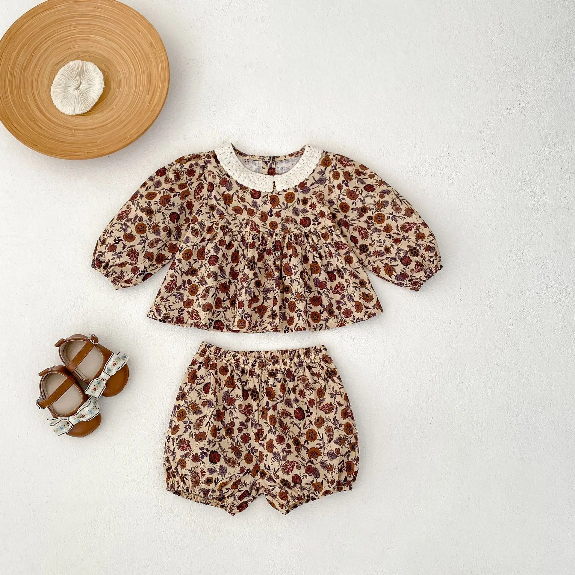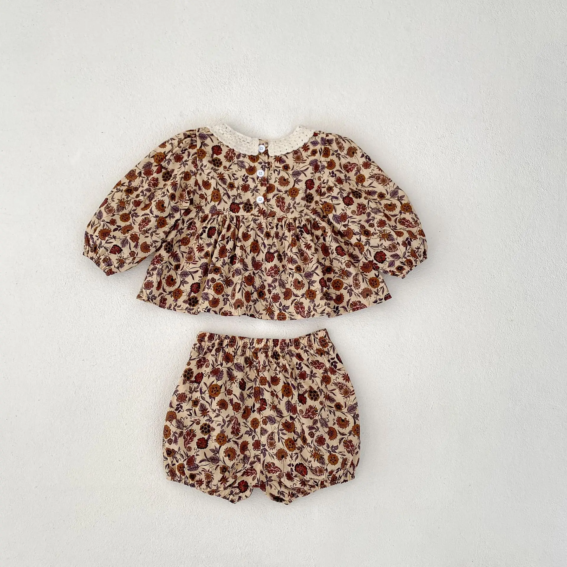 Baby/Kids 2-Piece Set: Lace Collar Chic Floral Print Long Sleeve Tunic Blouse + Balloon Shorts [mh0007435]