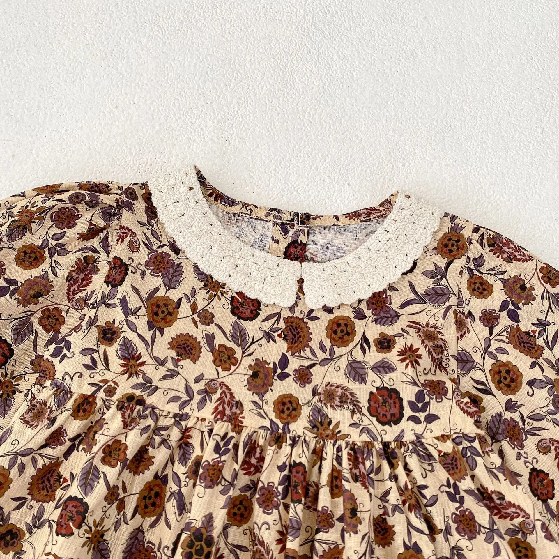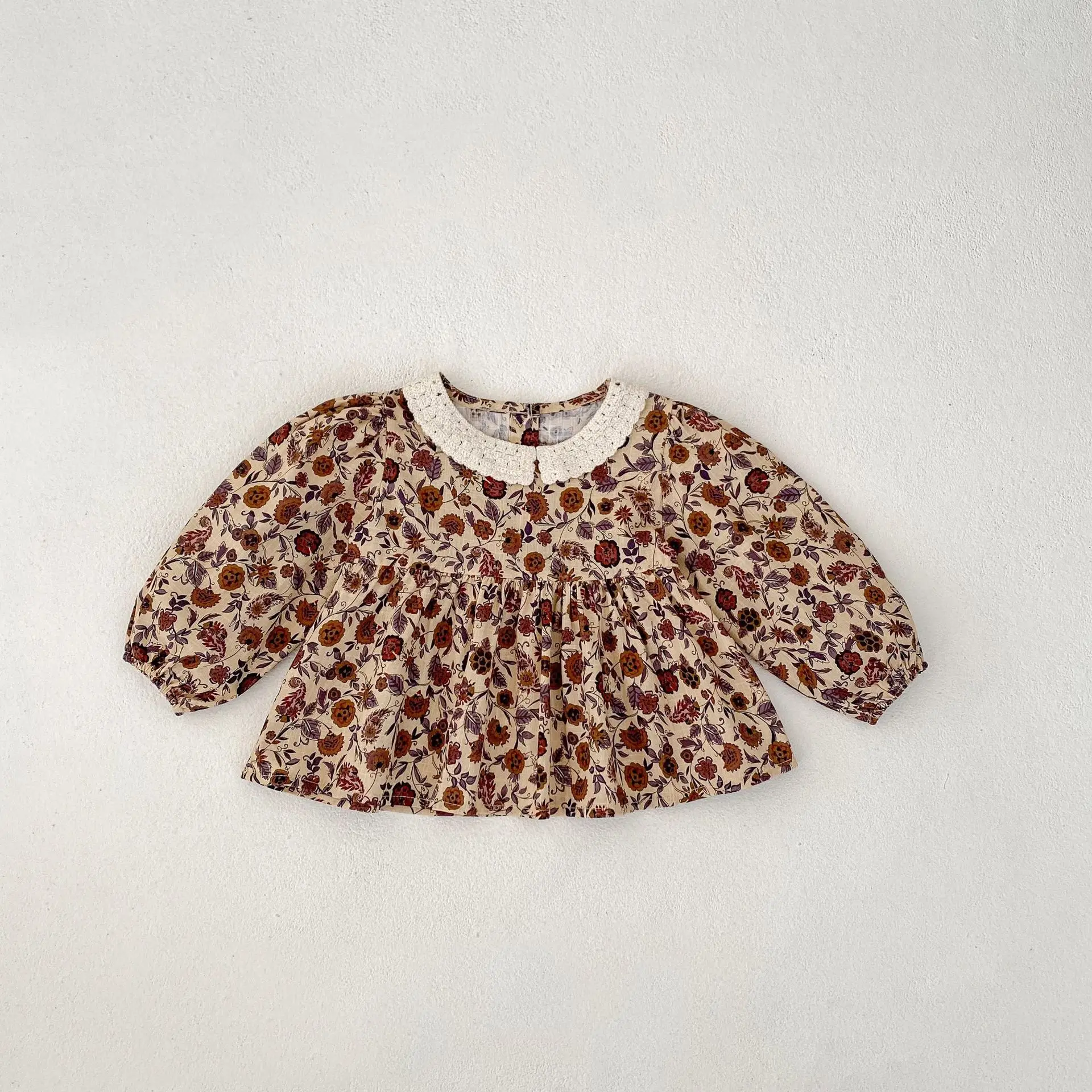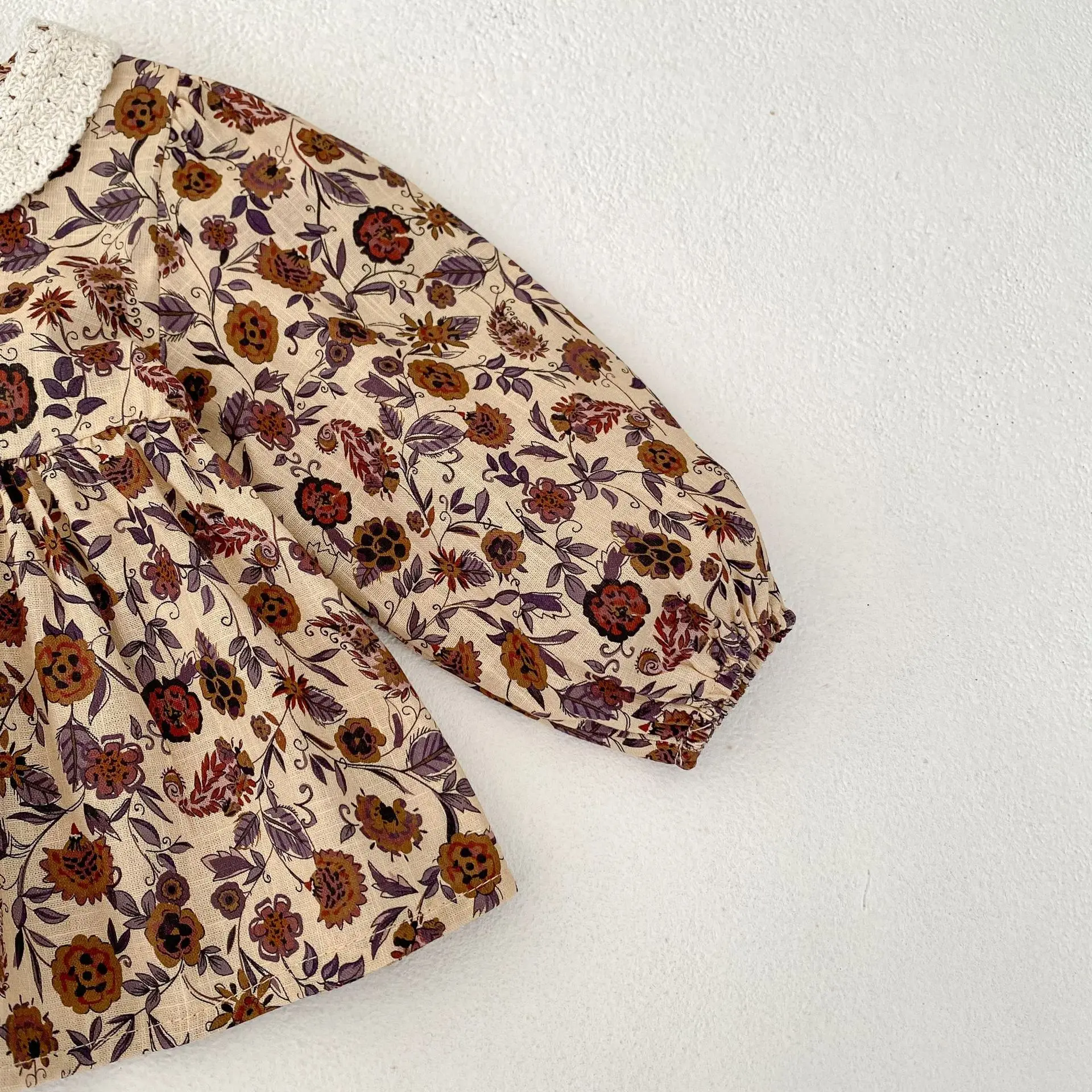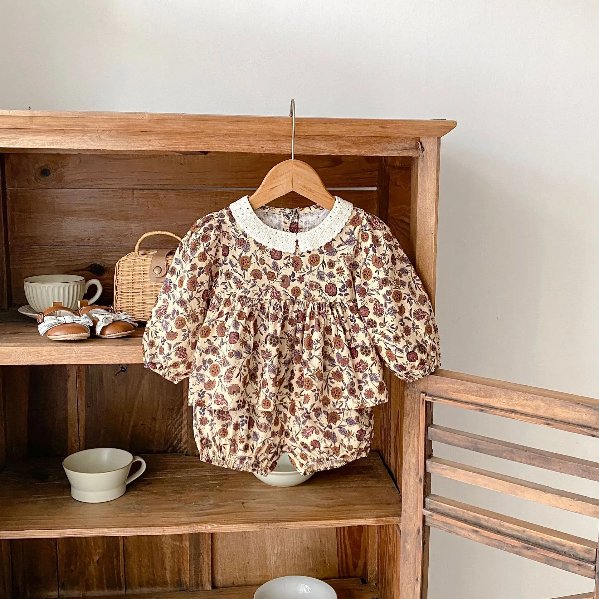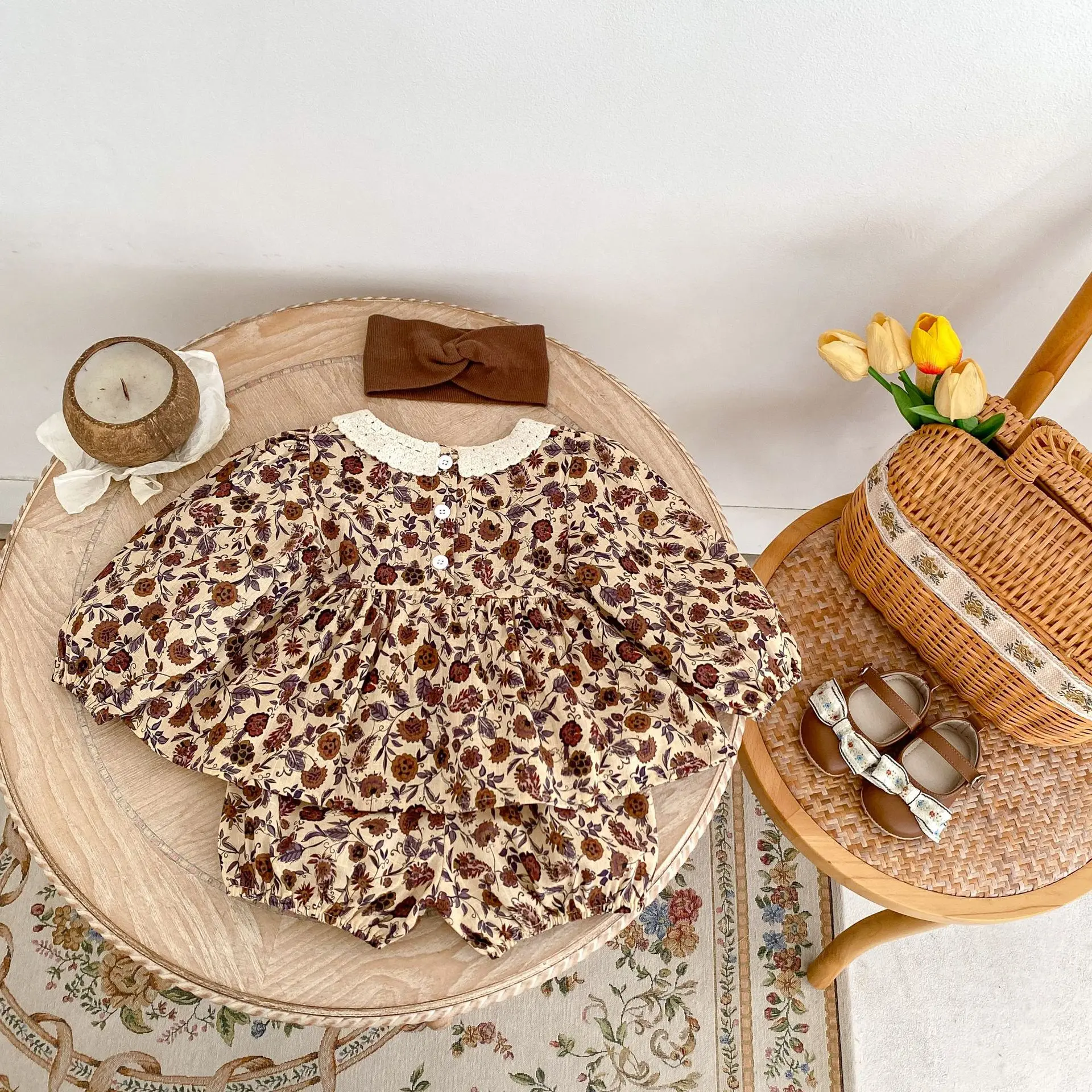 Baby/Kids 2-Piece Set: Lace Collar Chic Floral Print Long Sleeve Tunic Blouse + Balloon Shorts [mh0007435]